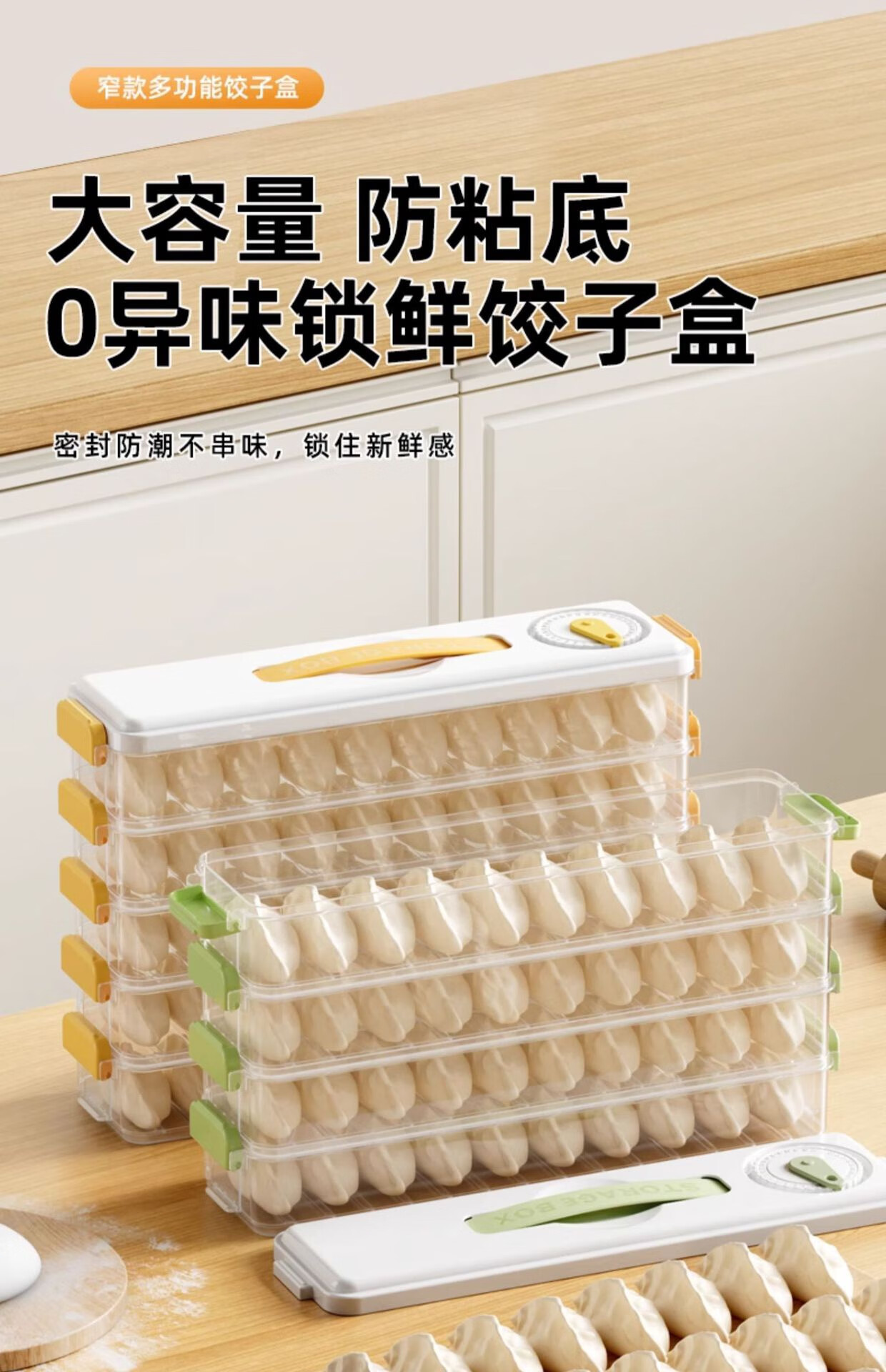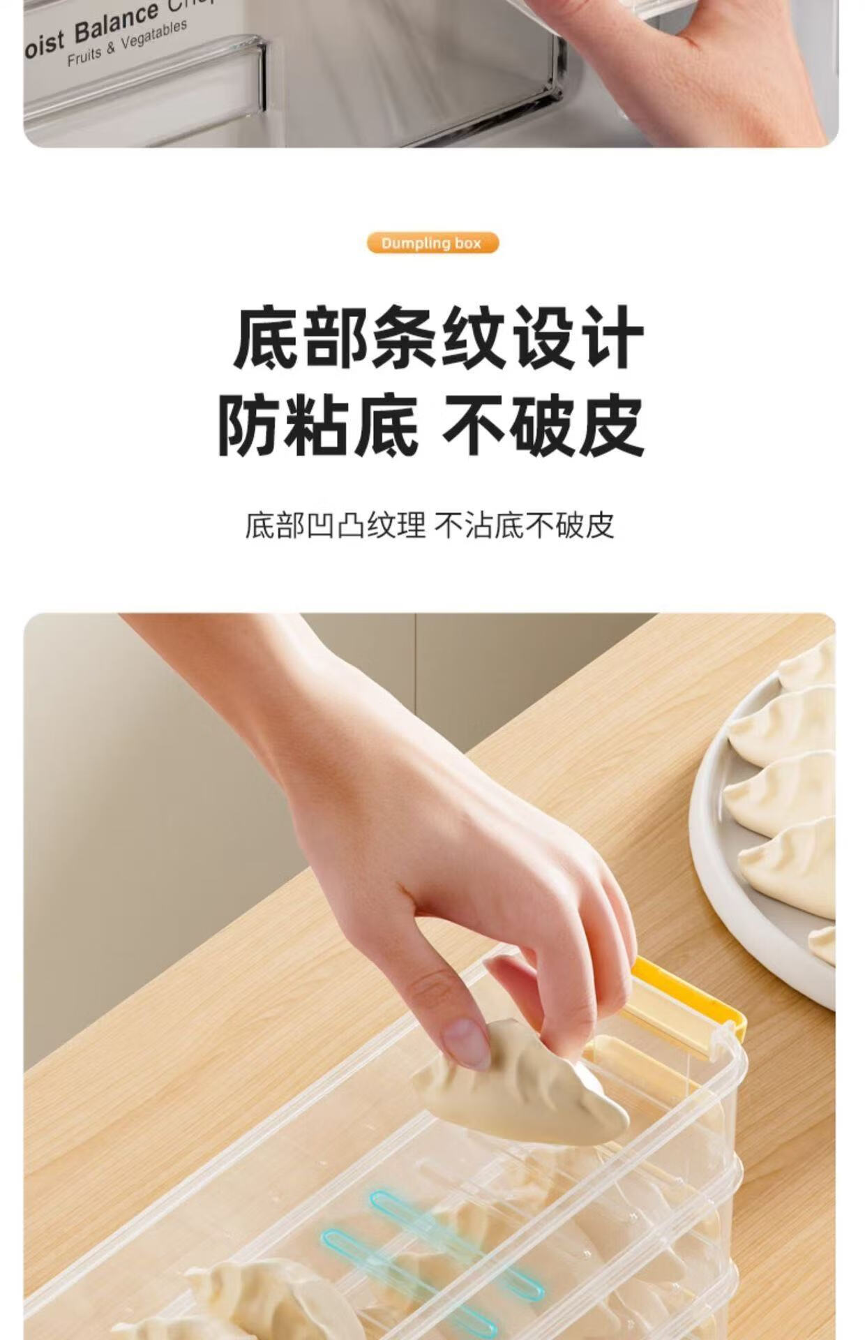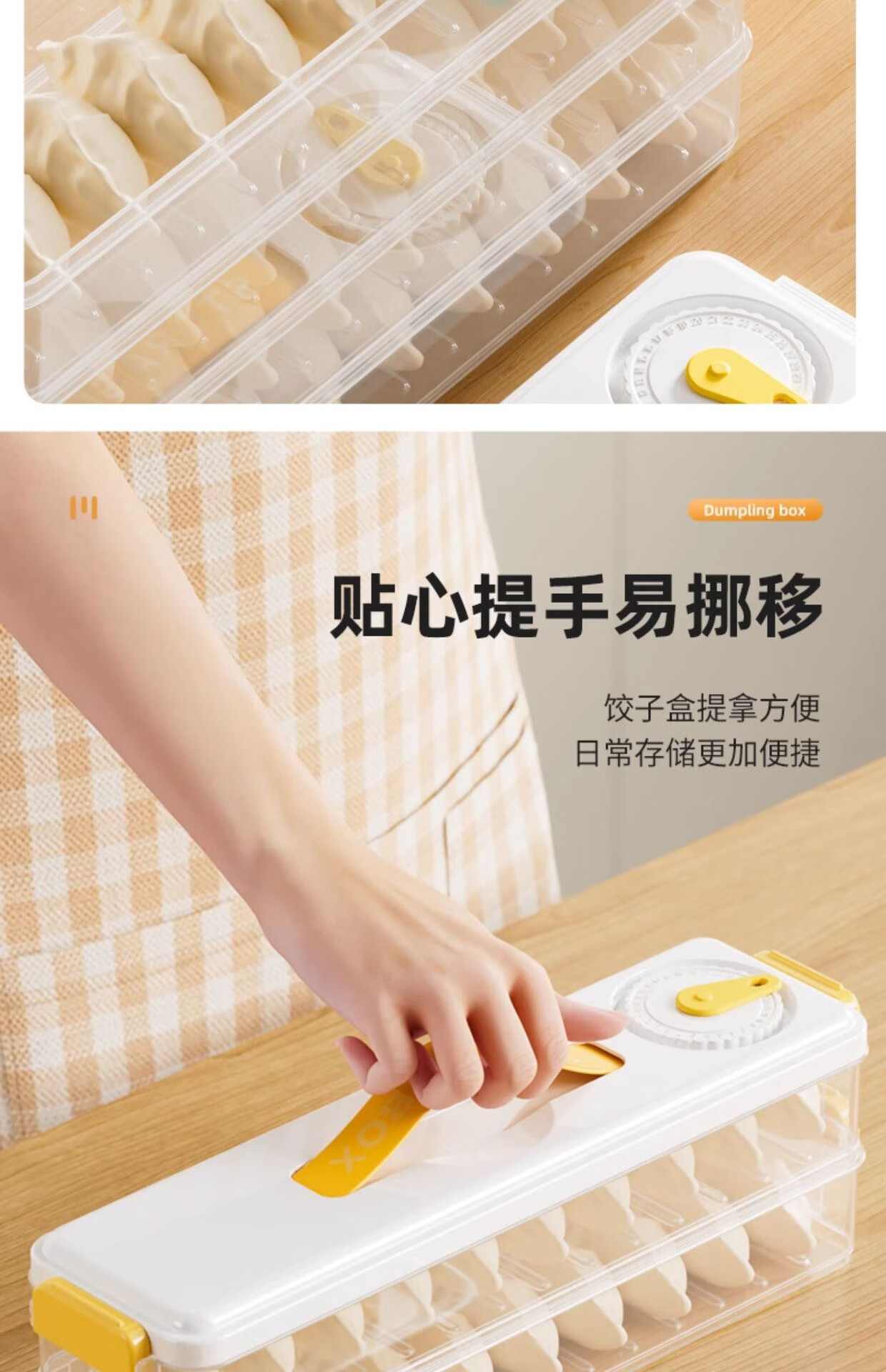 Seam dumpling freezer box refrigerator side door special crisper food-grade packing and organizing box space-saving dumpling box 5 layers 60 pieces yellow