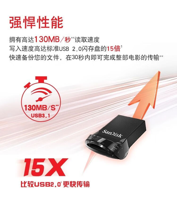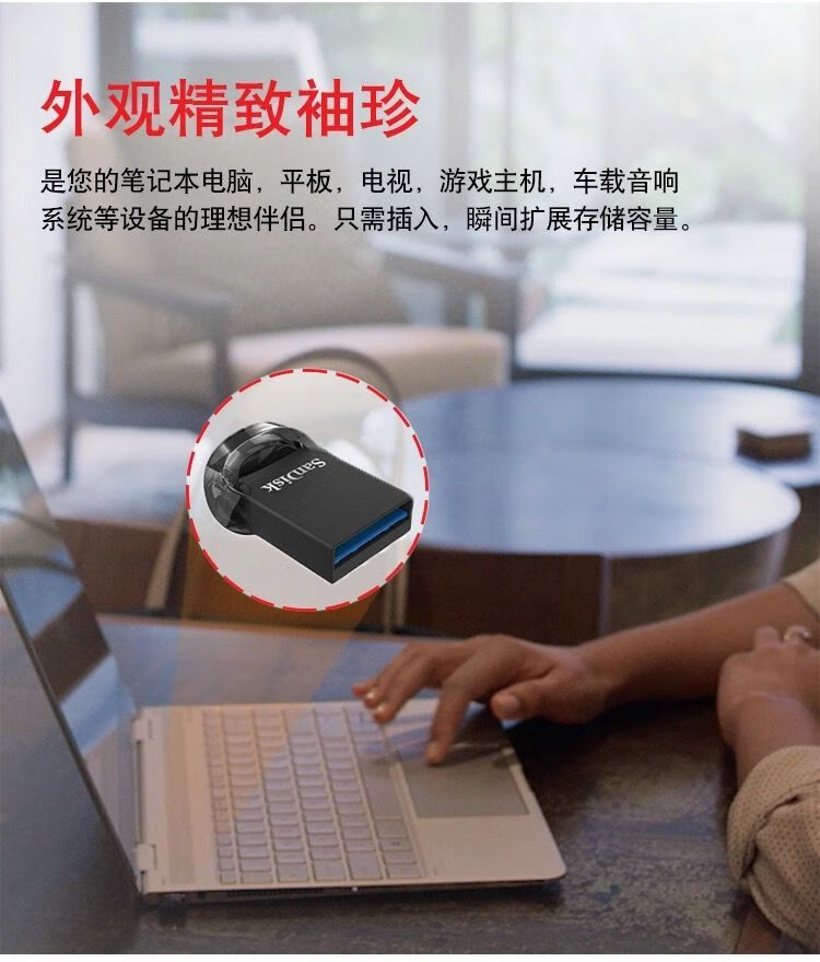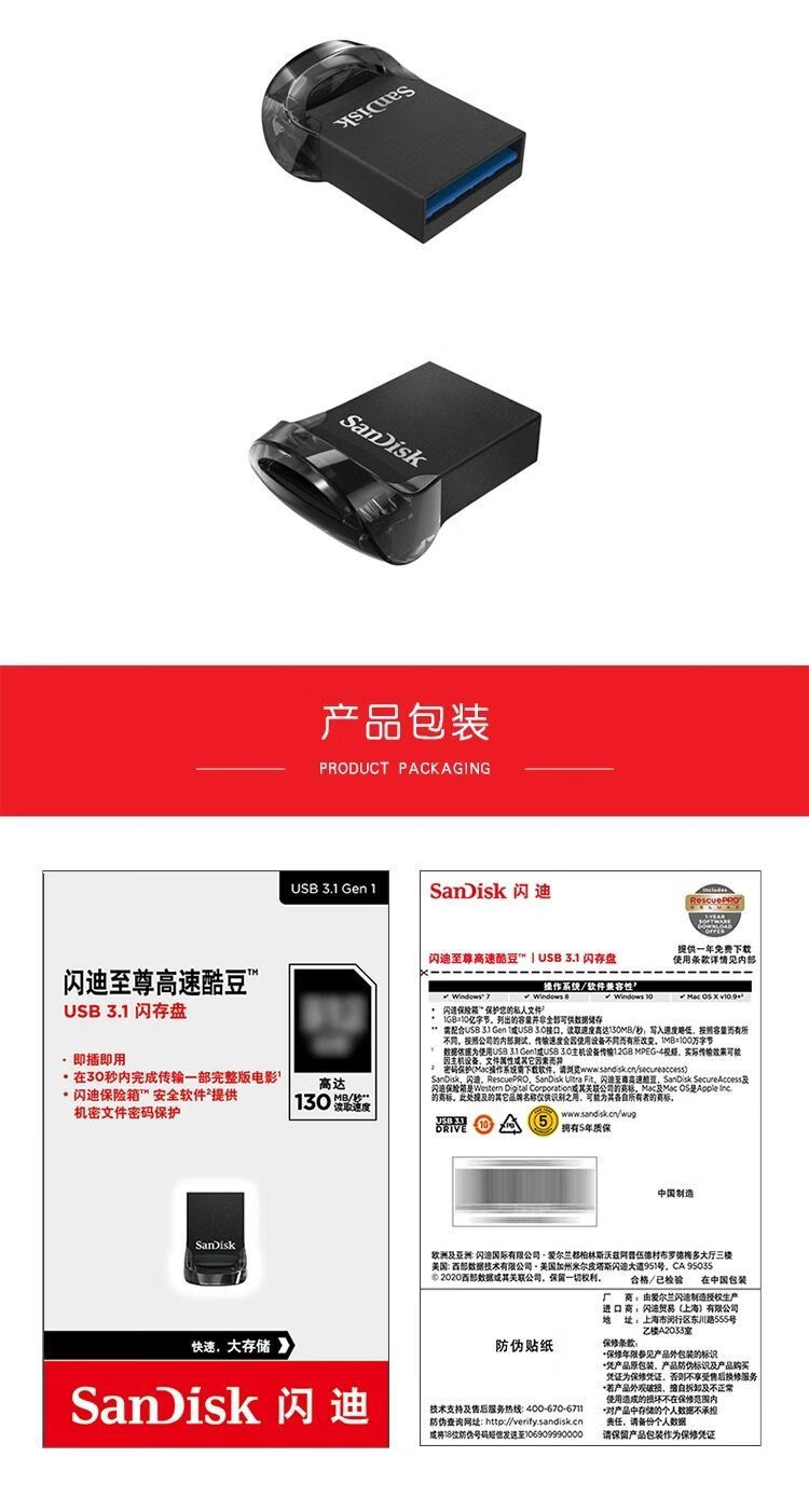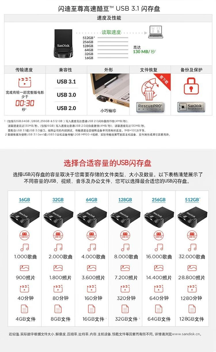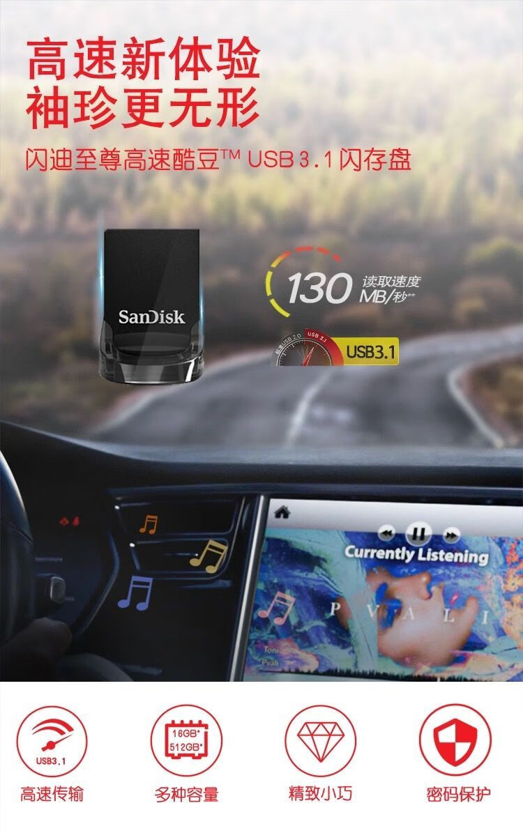 SanDisk 256G car cool bean U disk high speed USB3.1 CZ430 car USB mini computer U disk 128G standard
