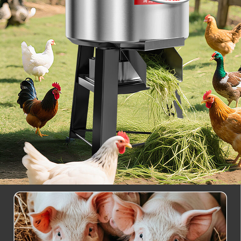 New vegetable shredder, grass cutter, chicken, duck, goose and poultry multifunctional vegetable cutter, household stainless steel grass cutter, 1800W-stainless steel barrel, four blades included
