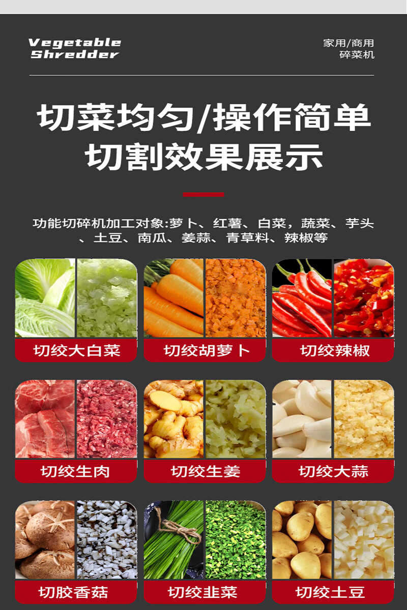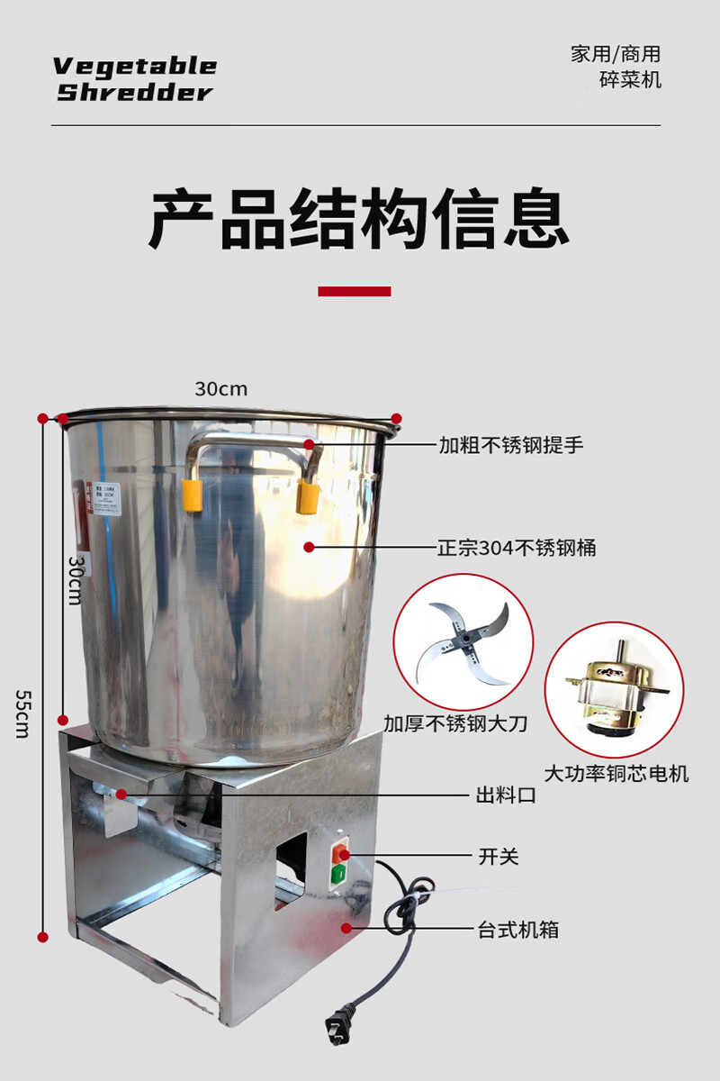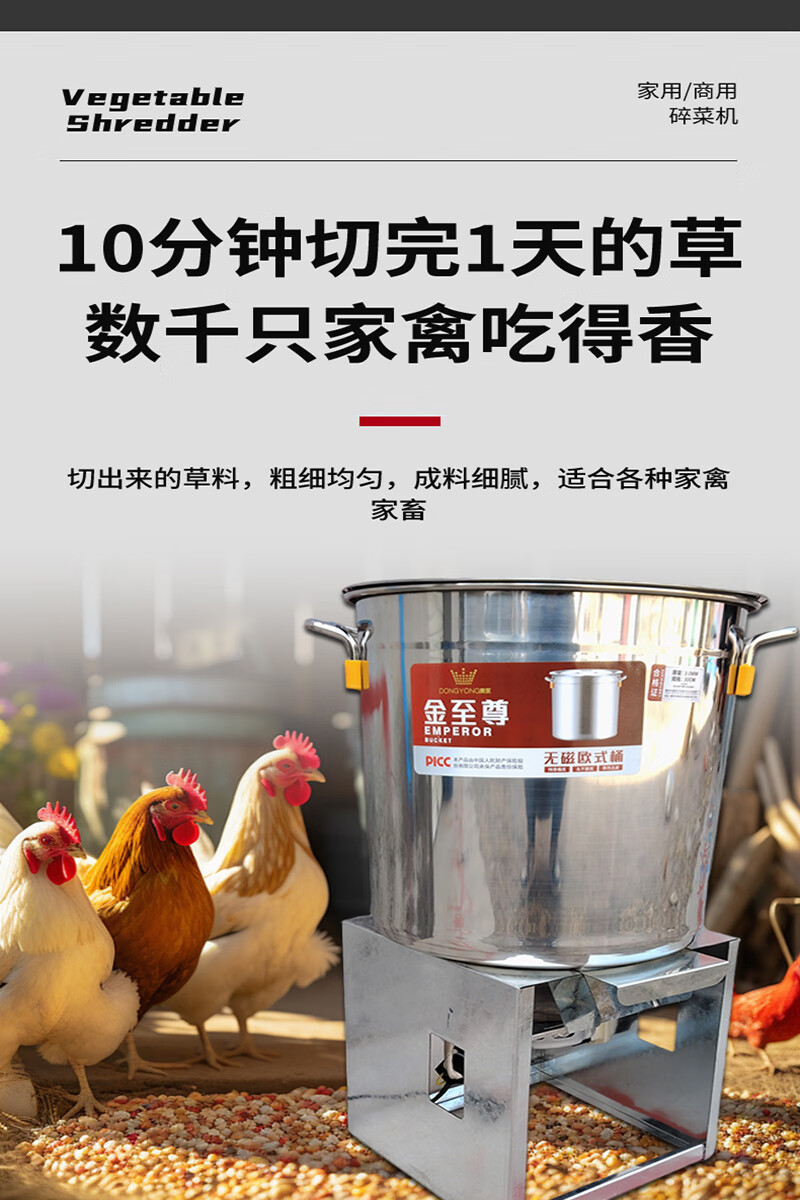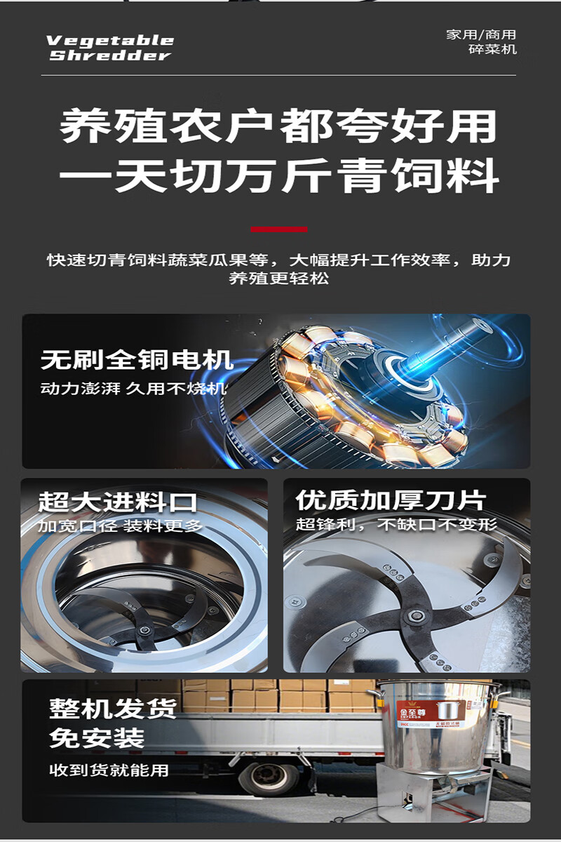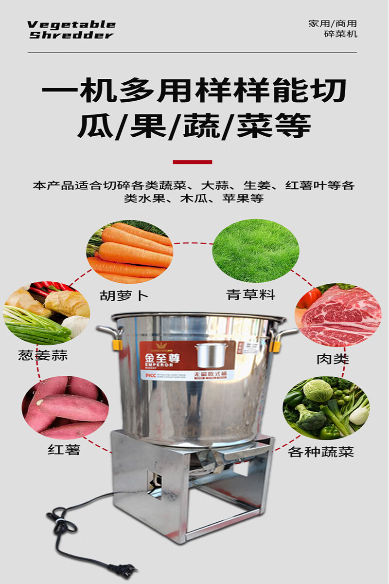 Stainless steel vegetable shredder, household breeding vegetable chopping machine, feeding chickens, ducks and geese, vegetable and fruit chopper, feed grinder, large version, 1800W copper core motor, thickened stainless steel + 8 knives