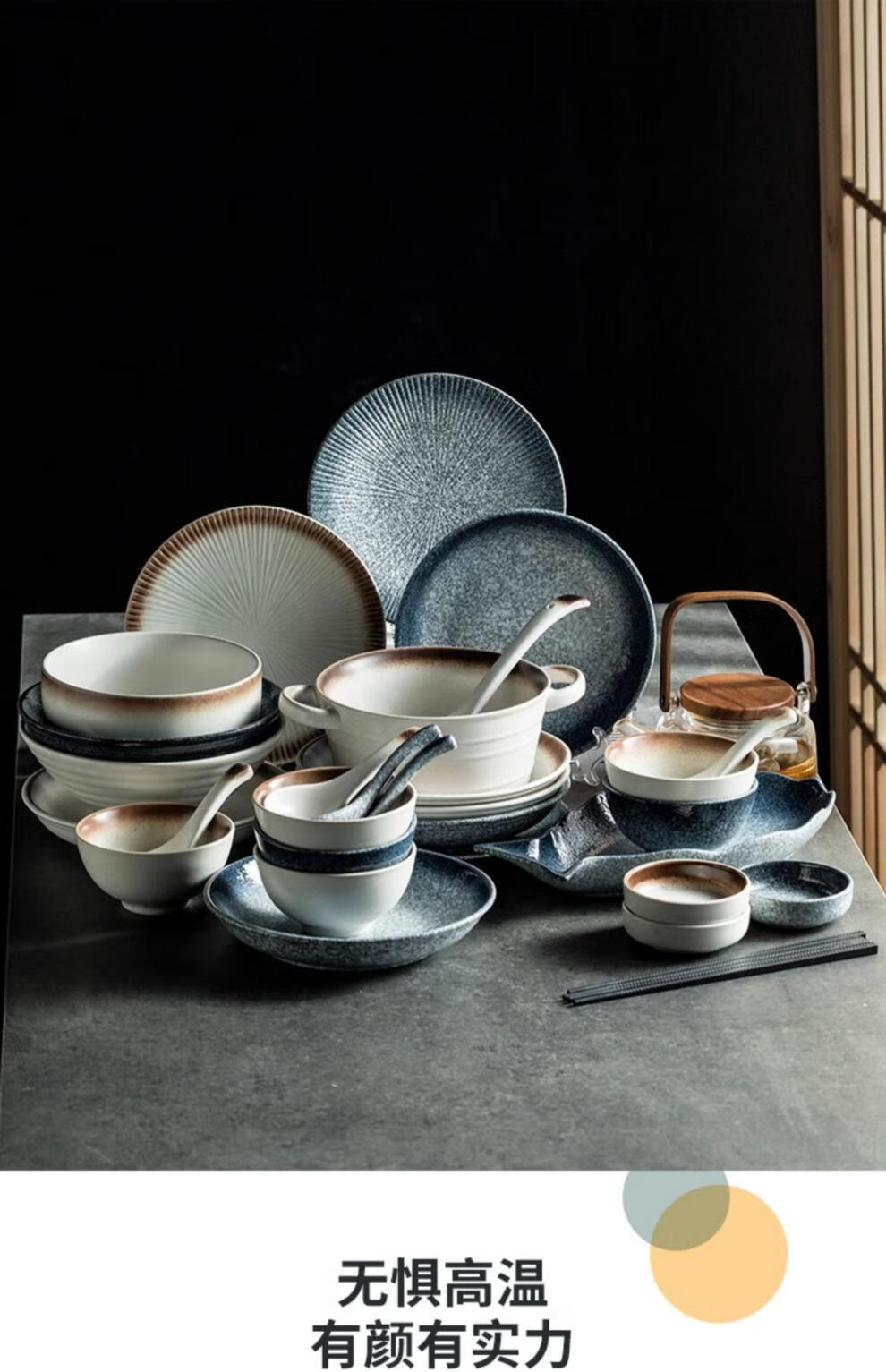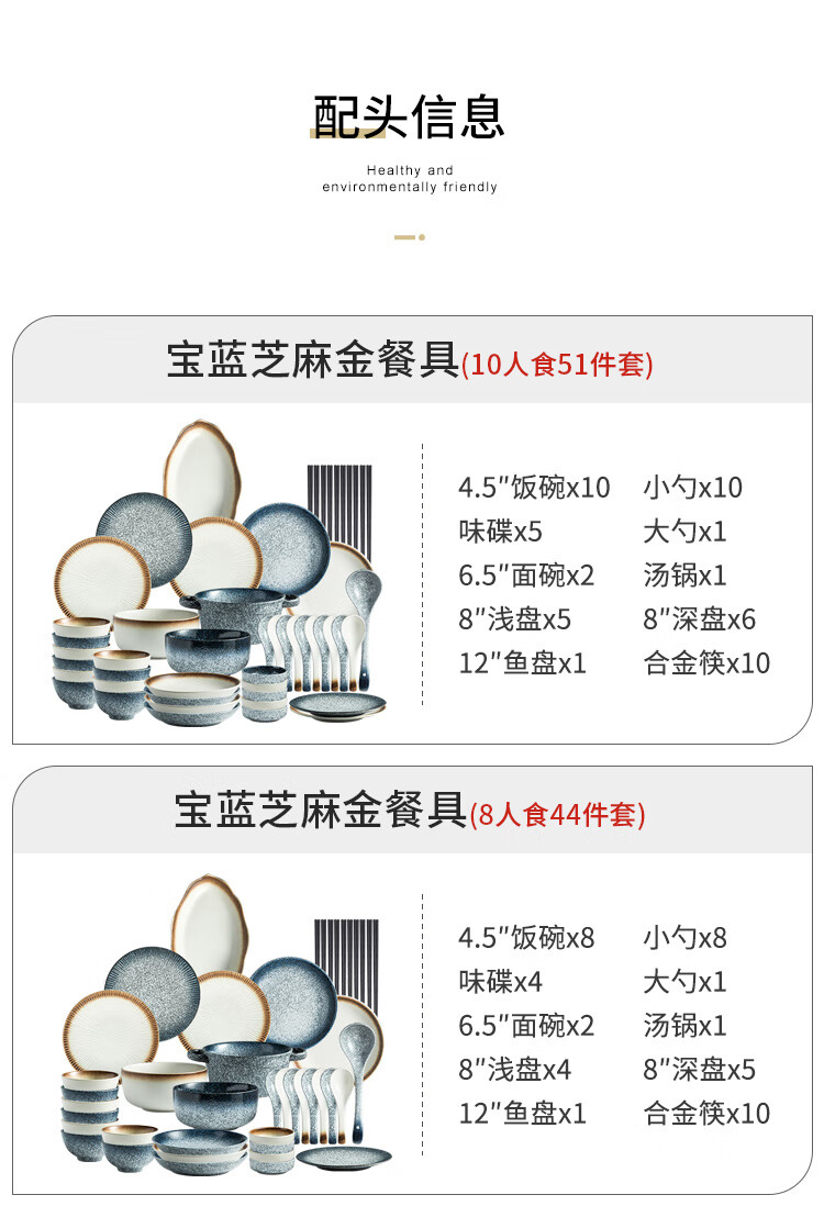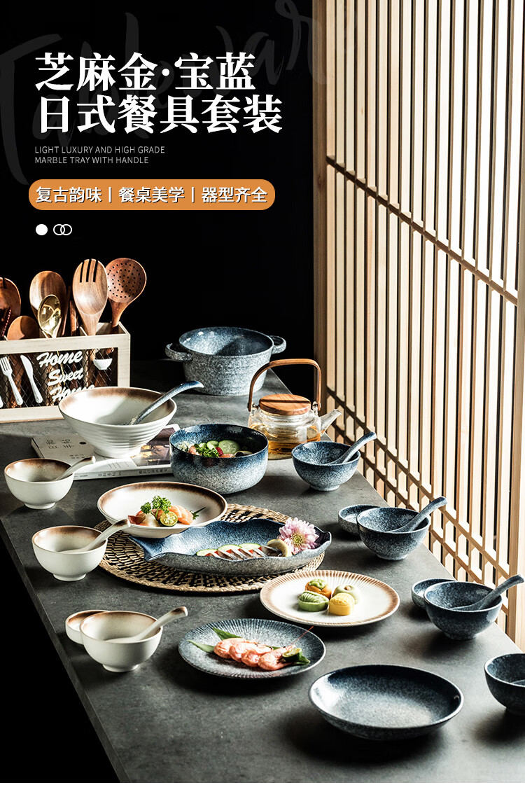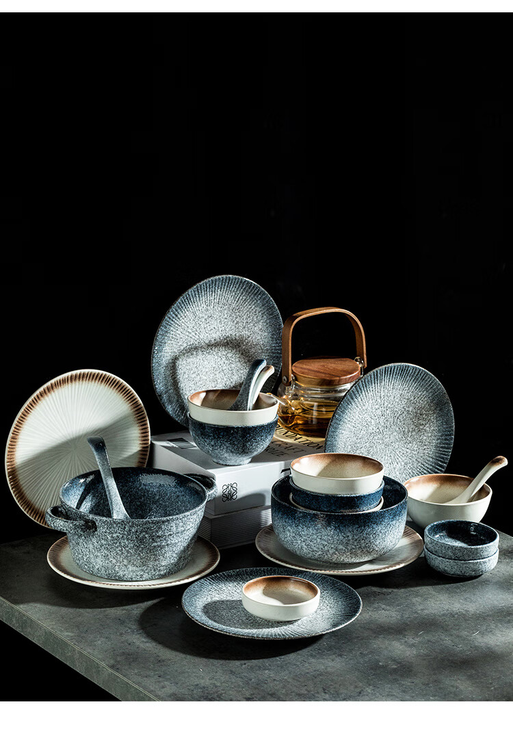 RWTW high-end Japanese tableware and dishes set light luxury high-end retro household ceramic dishes and chopsticks as a housewarming gift, two-color mix and match (soup pot version) eight-person food gift box, 44-piece set