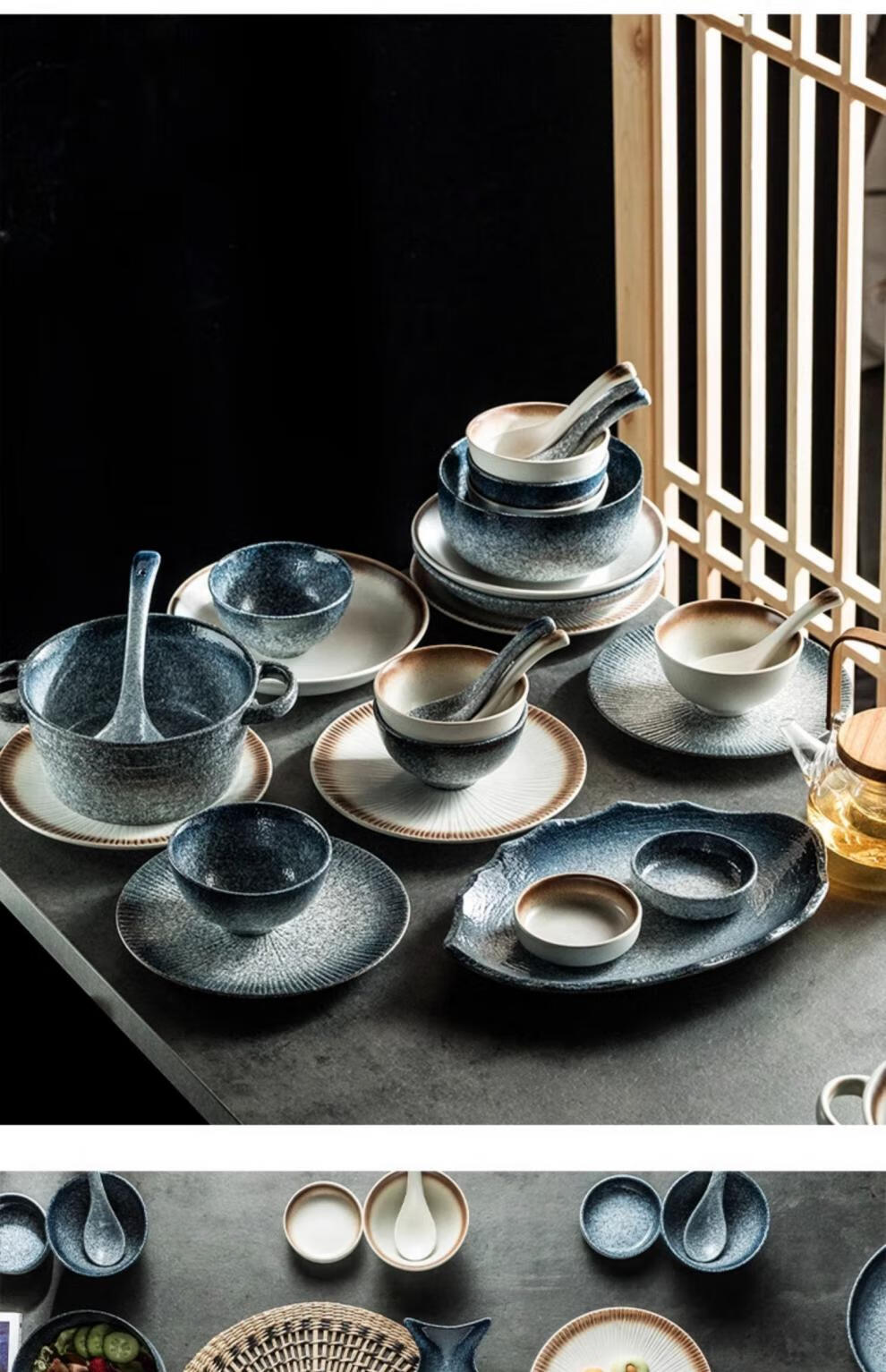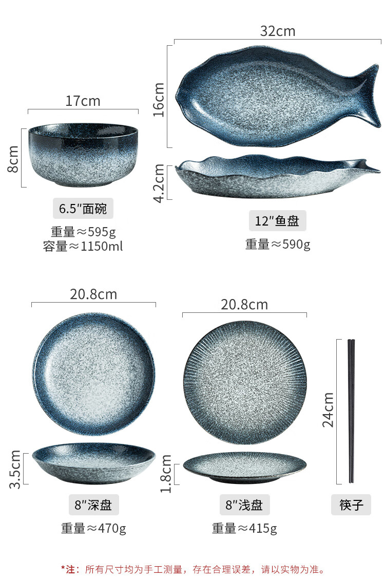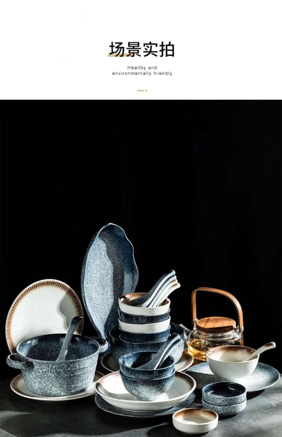 RWTW high-end Japanese tableware and dishes set light luxury high-end retro household ceramic dishes and chopsticks as a housewarming gift, two-color mix and match (soup pot version) eight-person food gift box, 44-piece set