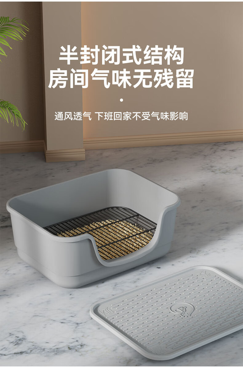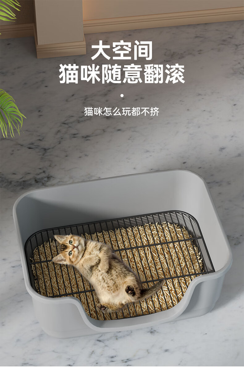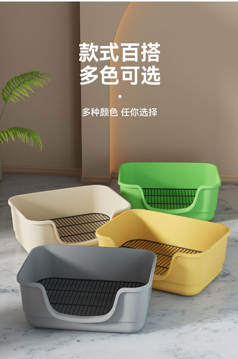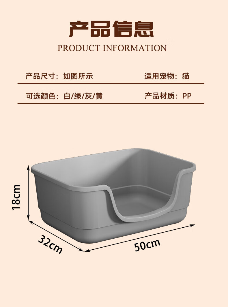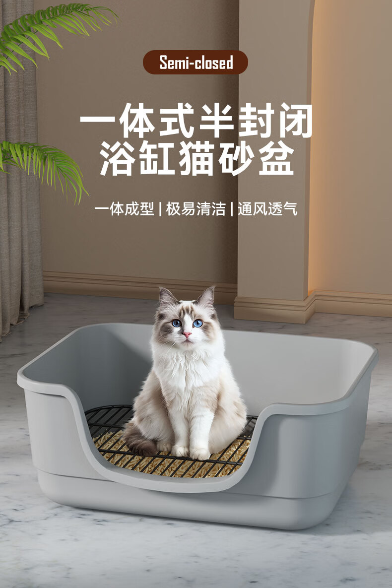 Large cat litter box with anti-splash heightening open semi-enclosed cat toilet huge toilet puppet supplies bathtub sand basin 50 bathtub - off-white PP
