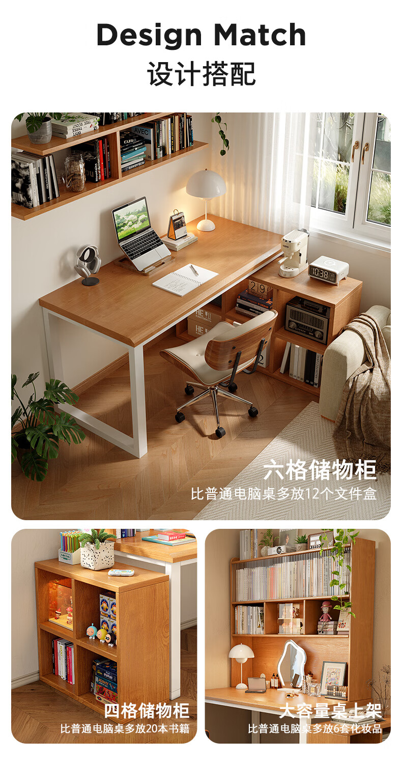 Gujia home desk study table home computer desk desktop desk workbench study corner desk bookshelf integrated table Gujia selection | thickened desktop wood color 120*60*75 brand guarantee | worry-free after-sales SF/Debon door-to-door delivery