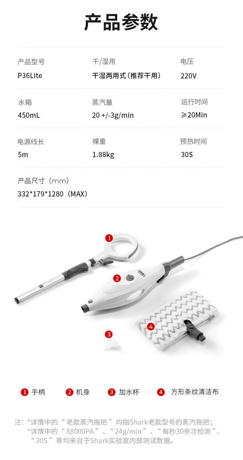 Sharker steam mop P36lite floor mopping high temperature sterilization electric cleaning machine m11/p4/d11 basic P36lite comes standard with 1 piece of cloth