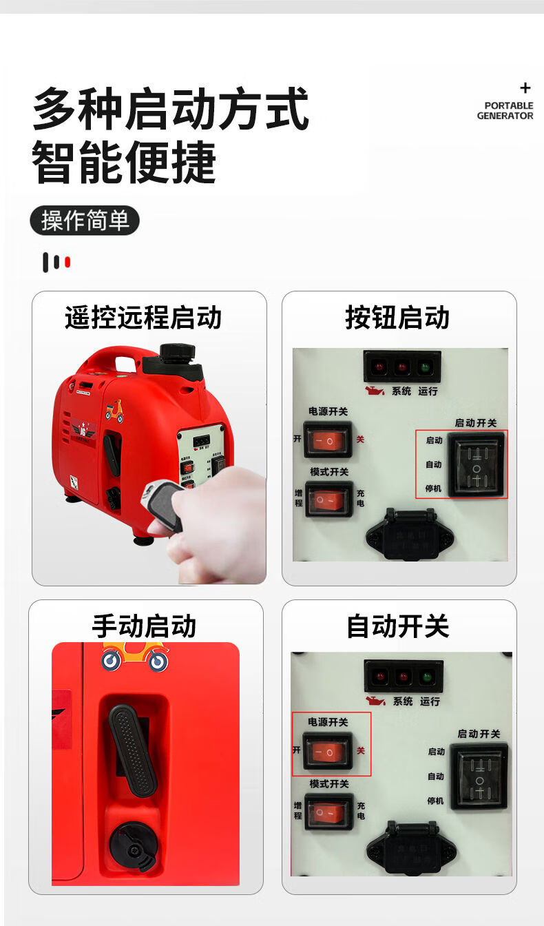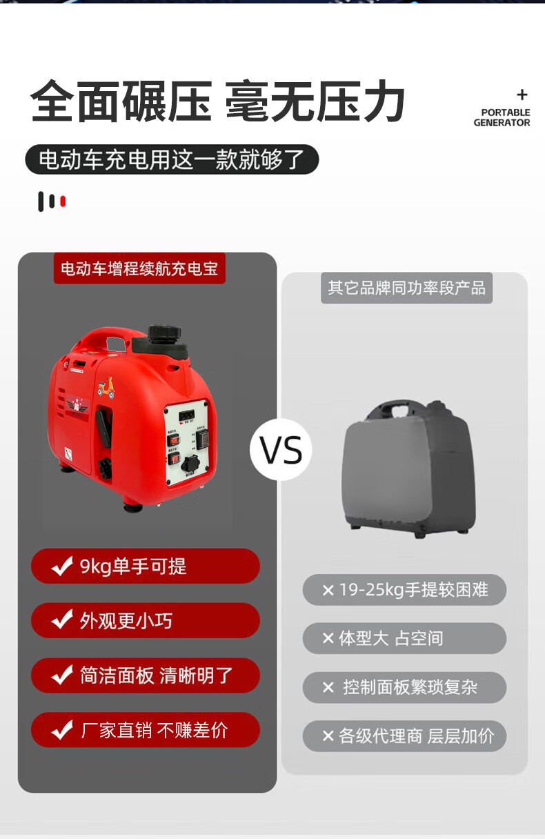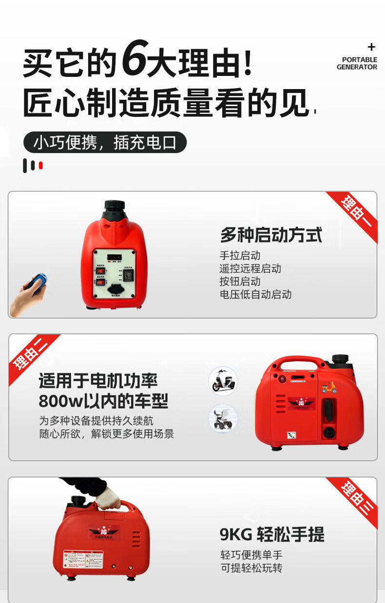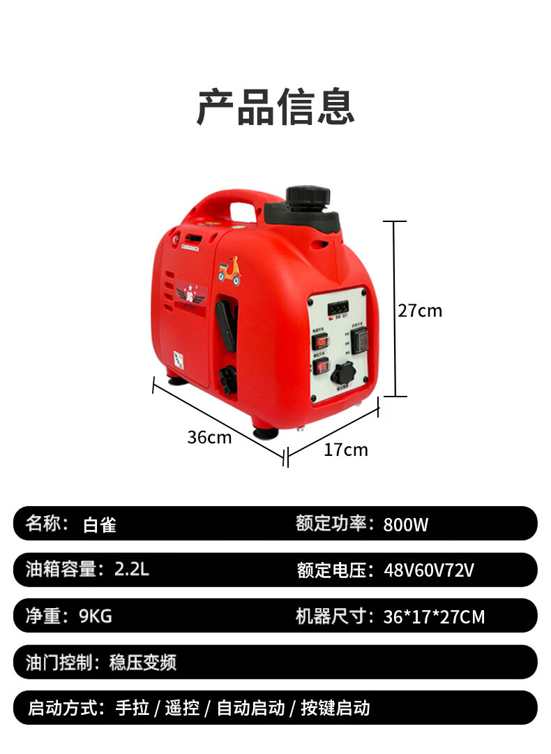 Chen Qinyi electric two-wheeled tricycle portable range extender power bank 48v60v72V gasoline generator new ultra-small mini 800 watt 48-72v universal model/all 1