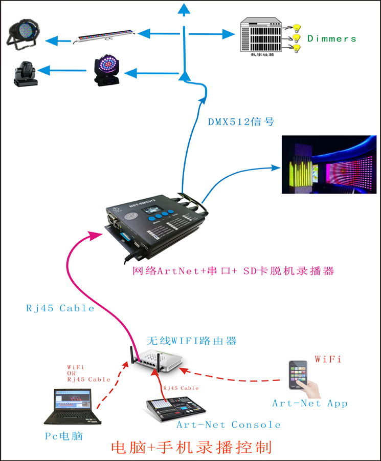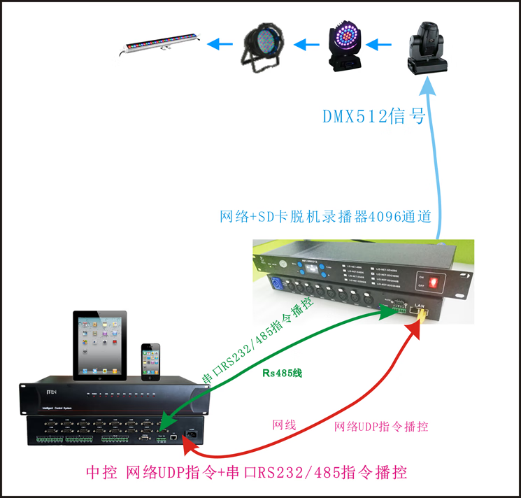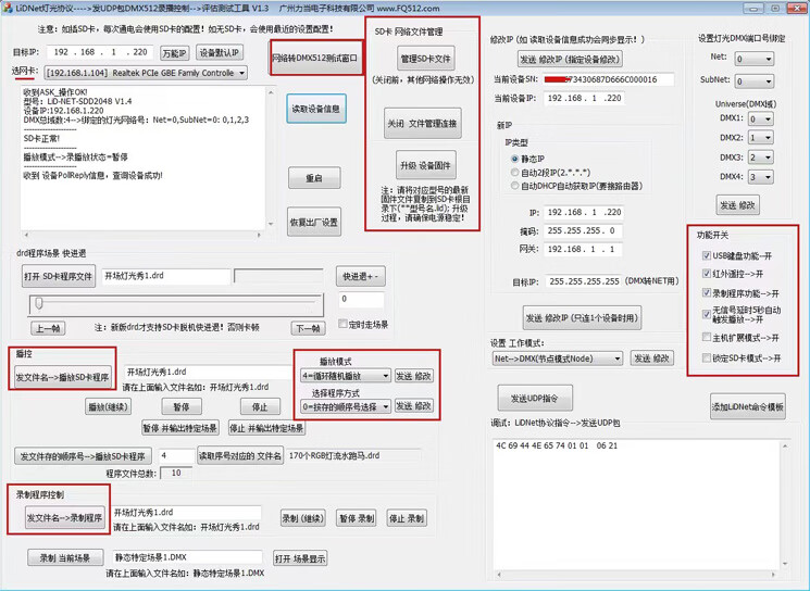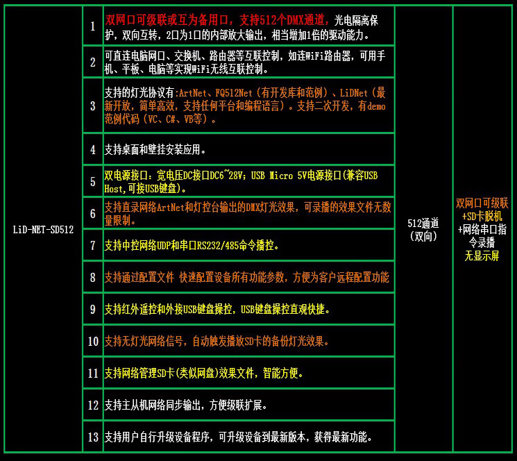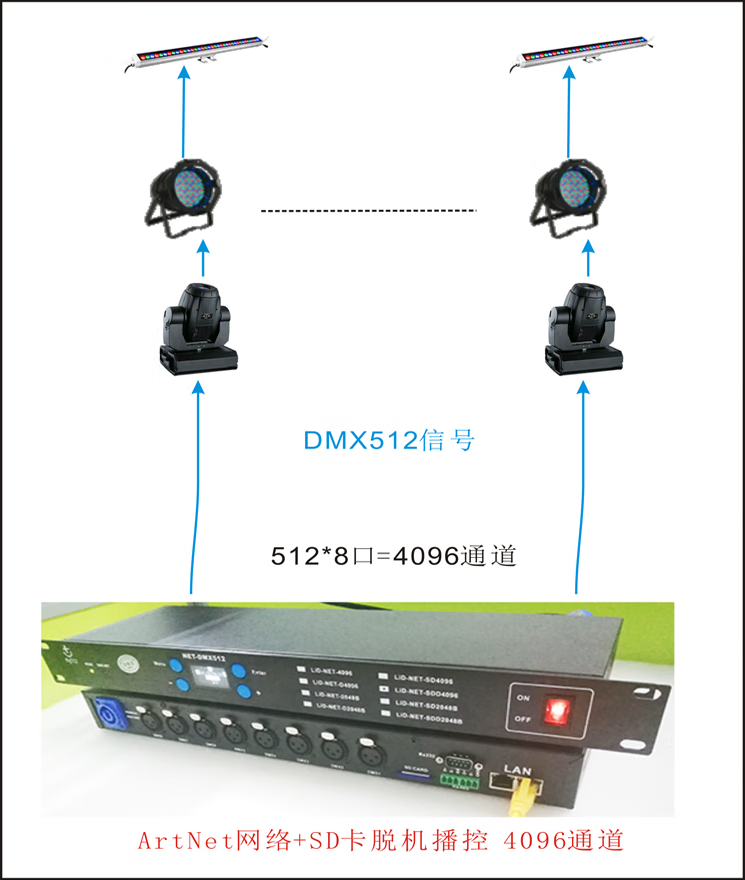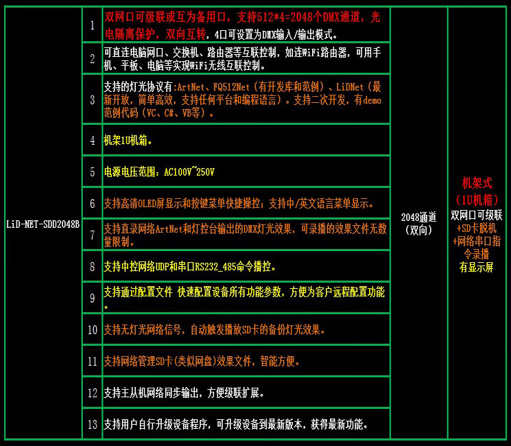 ArtNet SD card offline recorder 512 channels 1024TCP_UDP_IP interconnection RS232-485 broadcast control LID-NET-SDD4096 rack-mounted 232+485