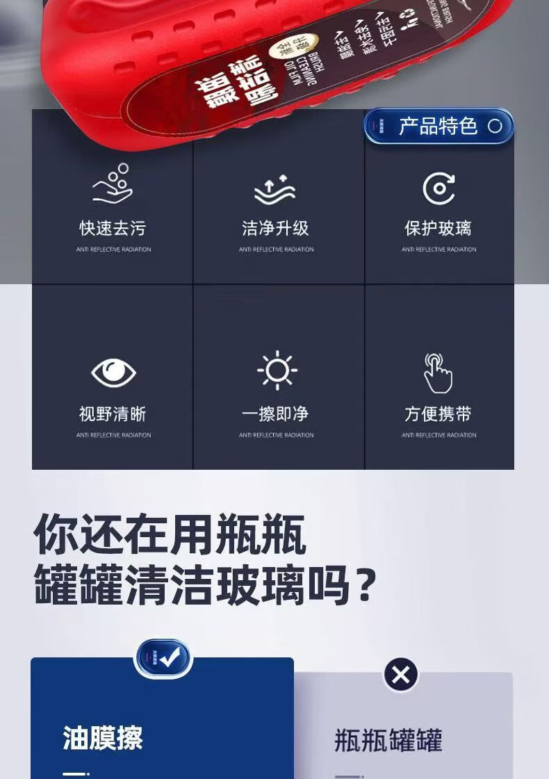 New car glass oil film cleaning wipe multi-functional cleaning brush universal removal powerful front windshield and side window removal brush 1 oil film wipe 120ML + 2 bottles of replenishing liquid 100ML = 220ml 2 bottles set