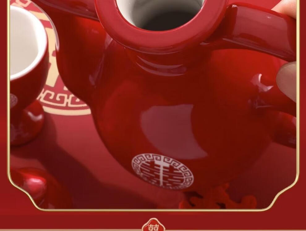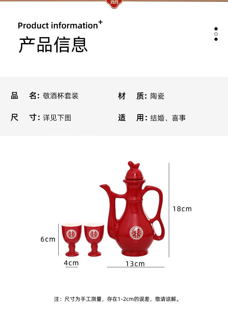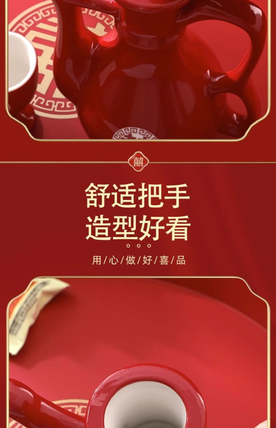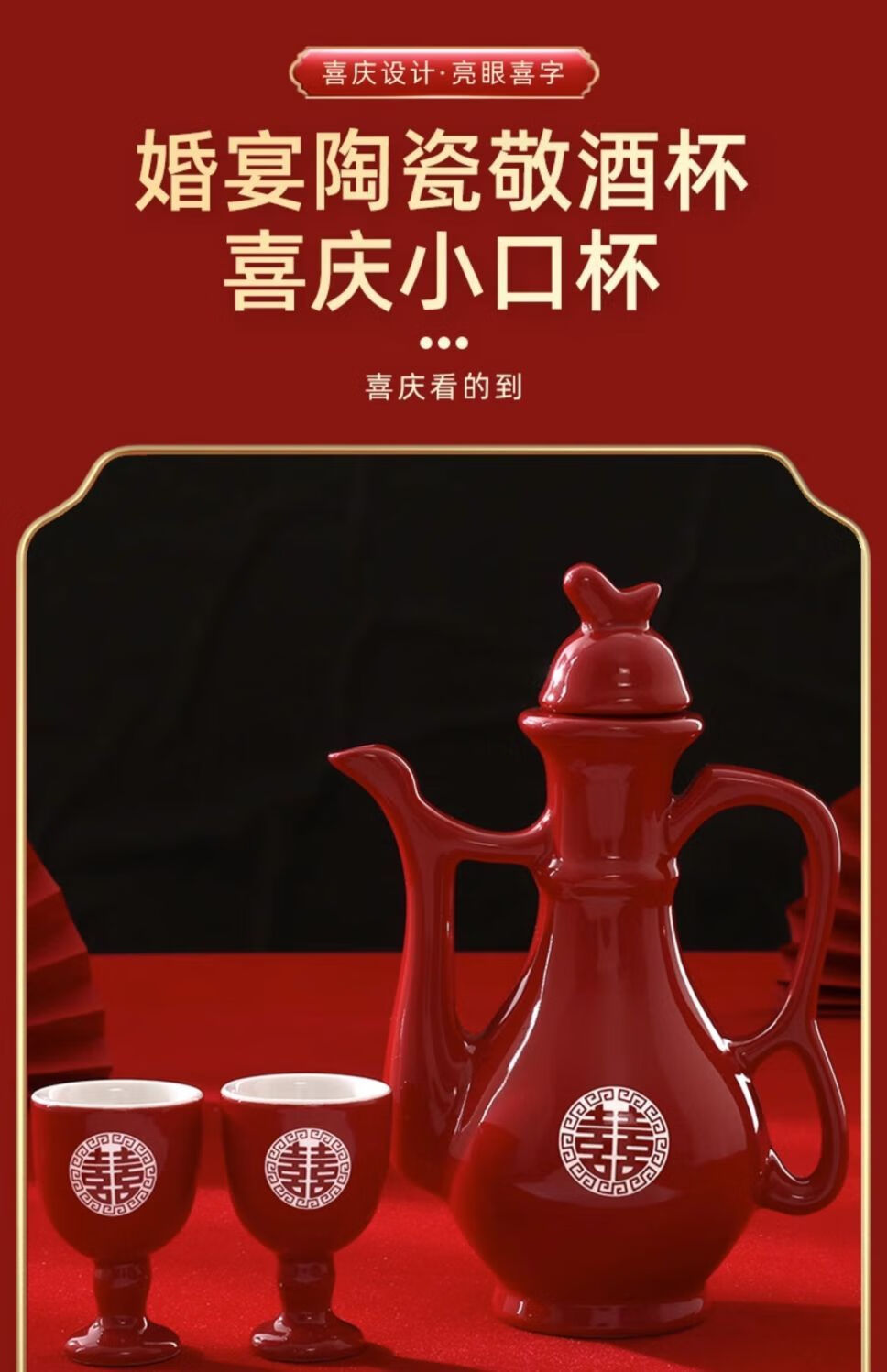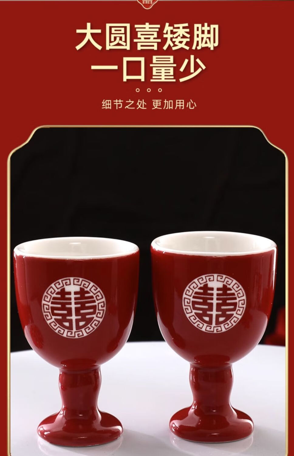 Wedding toast cup, wedding banquet, ceramic wine pot, Chinese wedding toasting cup, wine divider, festive set, red wine set, gold bottom wedding 1 pot + 2 cups