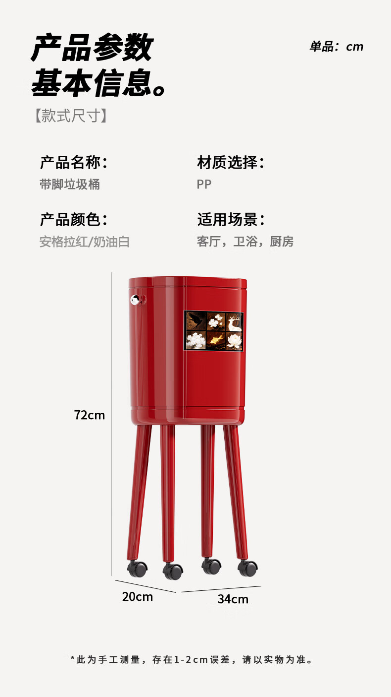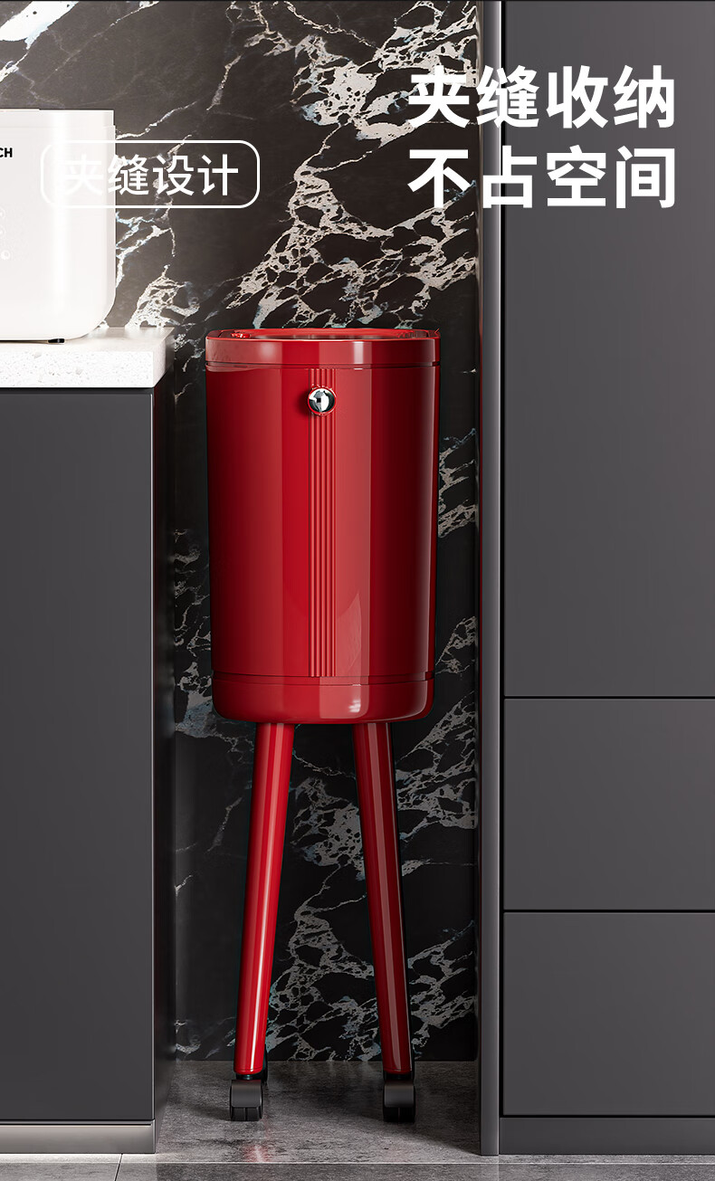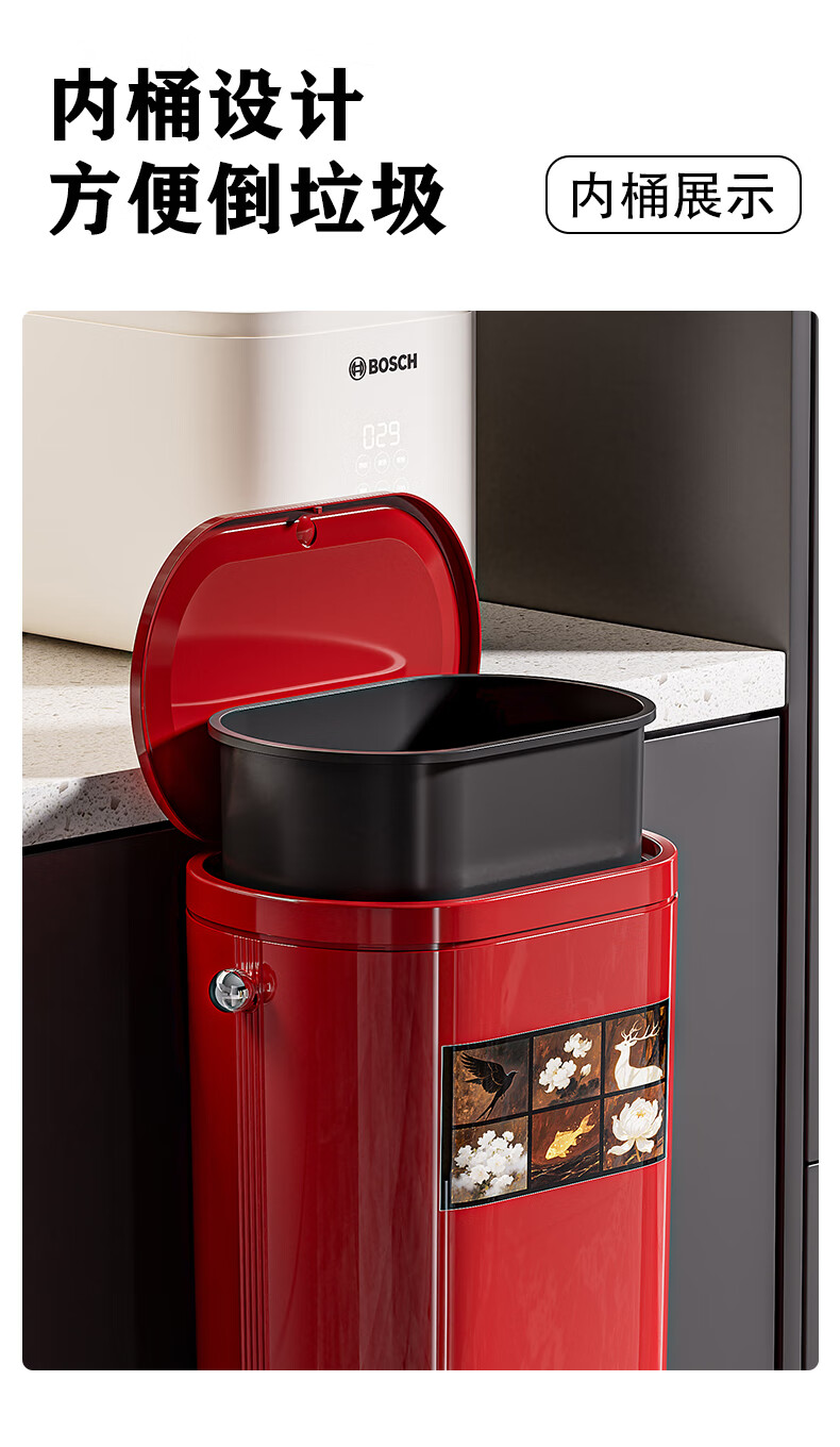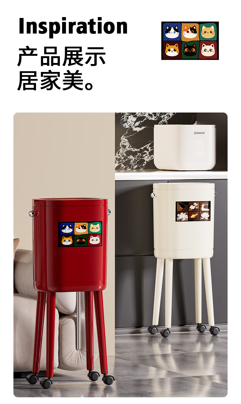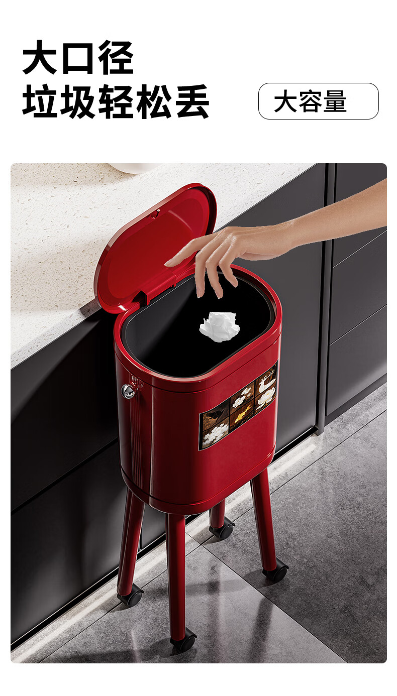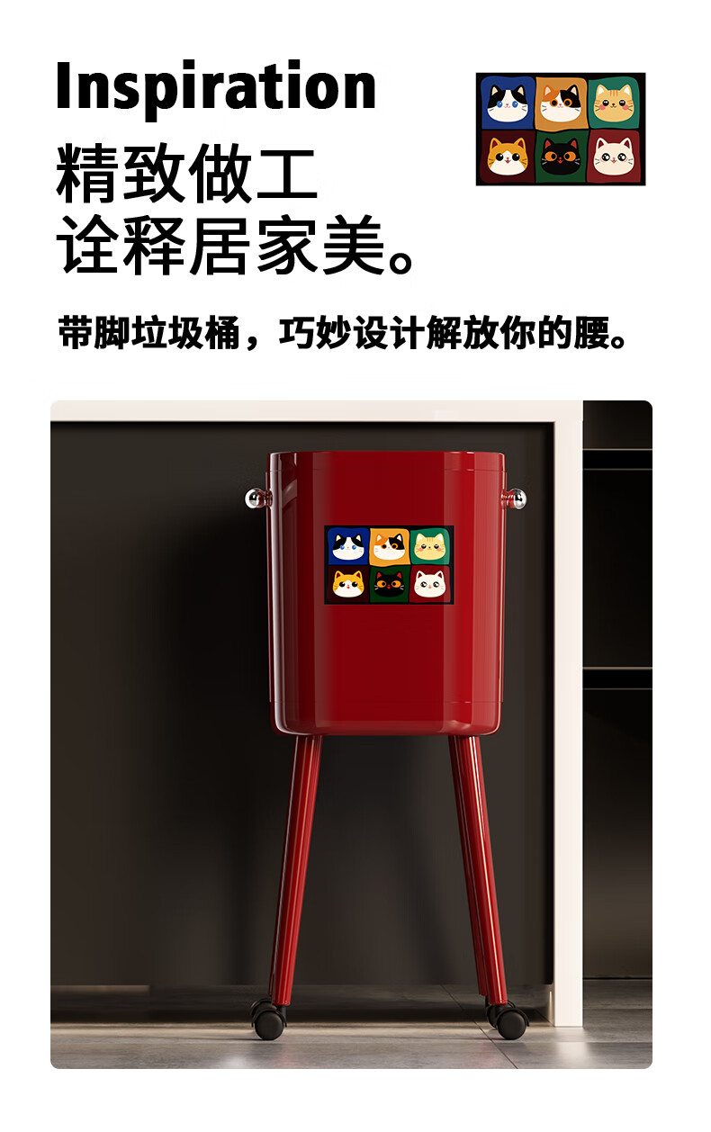 ASCOR household trash can 2025 new model without bending, high appearance, high-foot kitchen push-type large capacity with wheels, removable, cream white 16L, cat style, double buckets inside and outside | with universal wheels