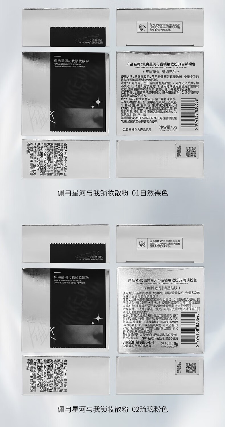 Two boxes of PIARA loose powder, oil-controlling, waterproof, sweat-proof, long-lasting, not easy to remove makeup, gift for girlfriend, 2 boxes, 01 natural nude color