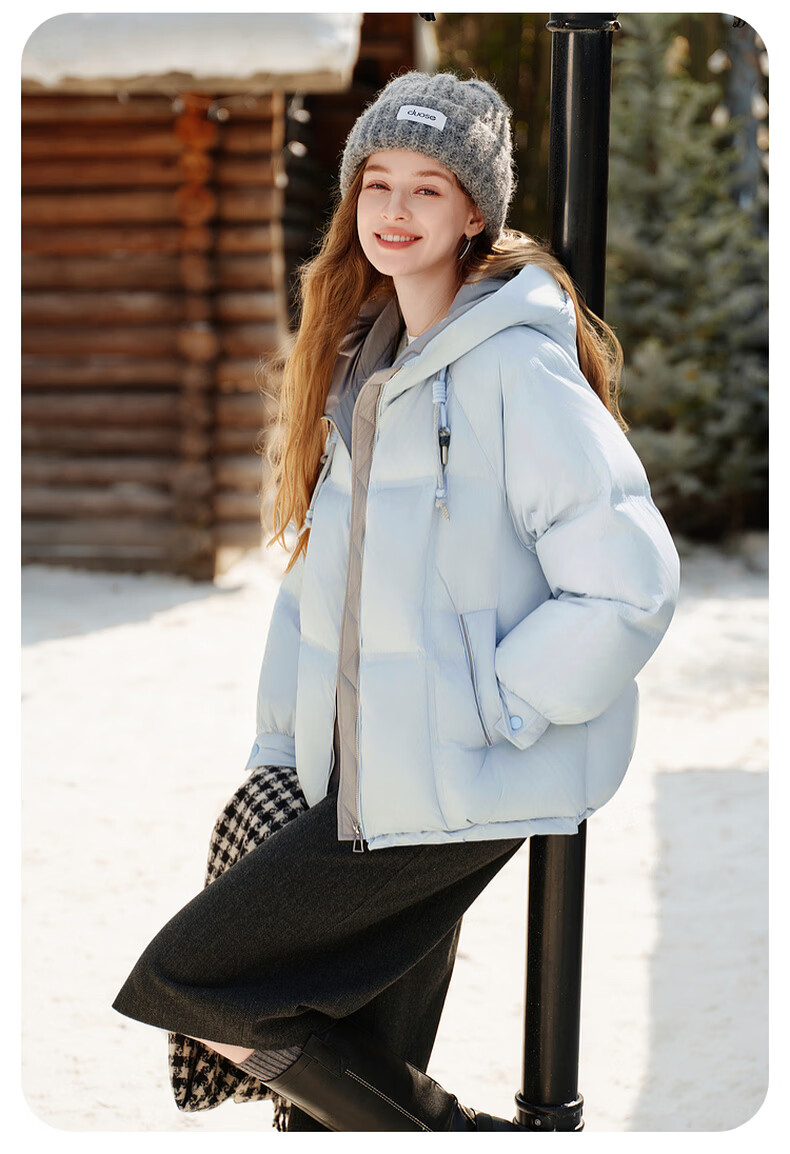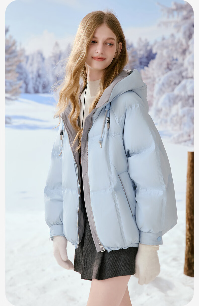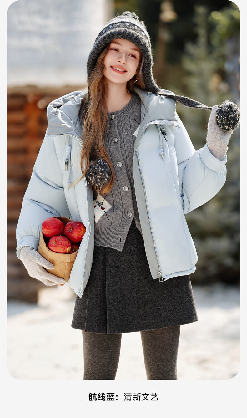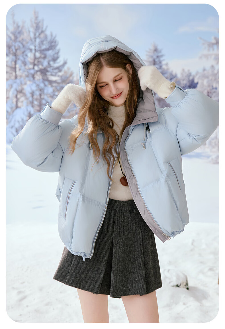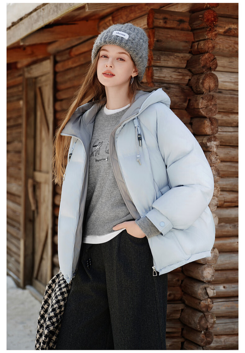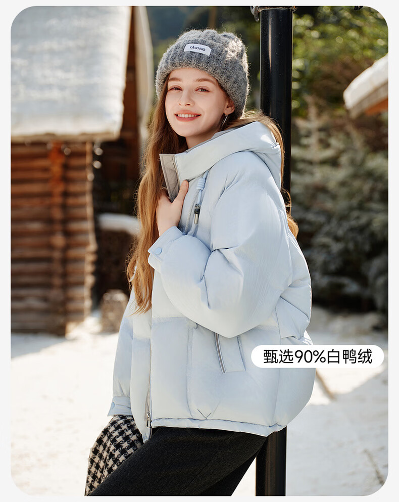 Xiangying Blue Puff Down Jacket Women's Short 2025 Winter New 90 White Duck Down Stitched Hooded Warm Jacket Route Blue S 155/80A/85-95 Jin