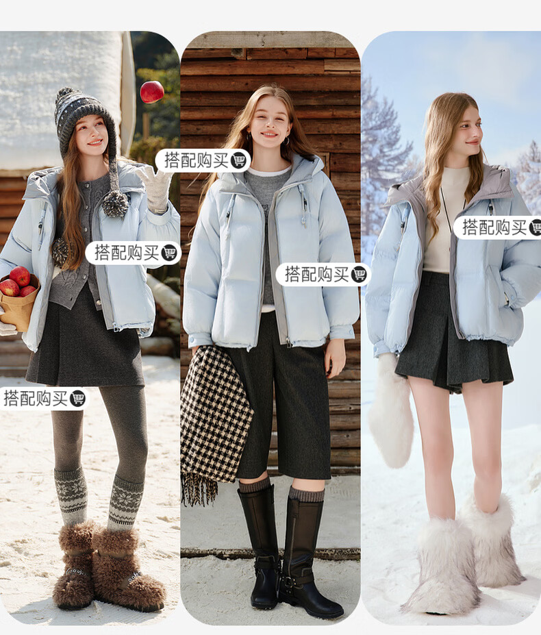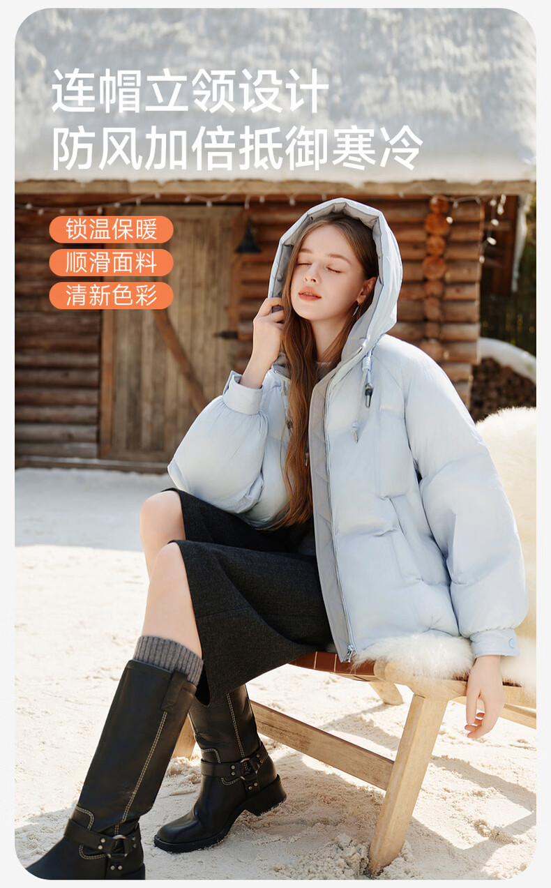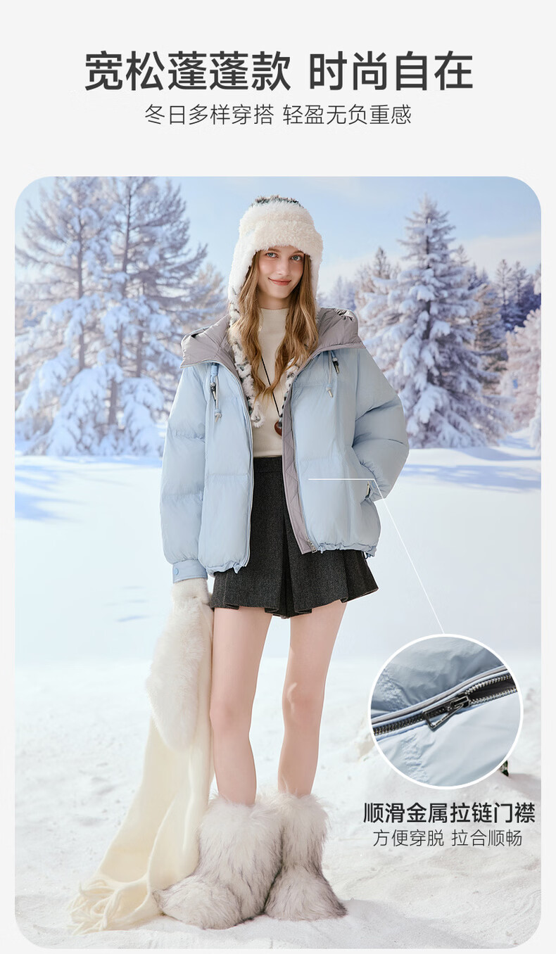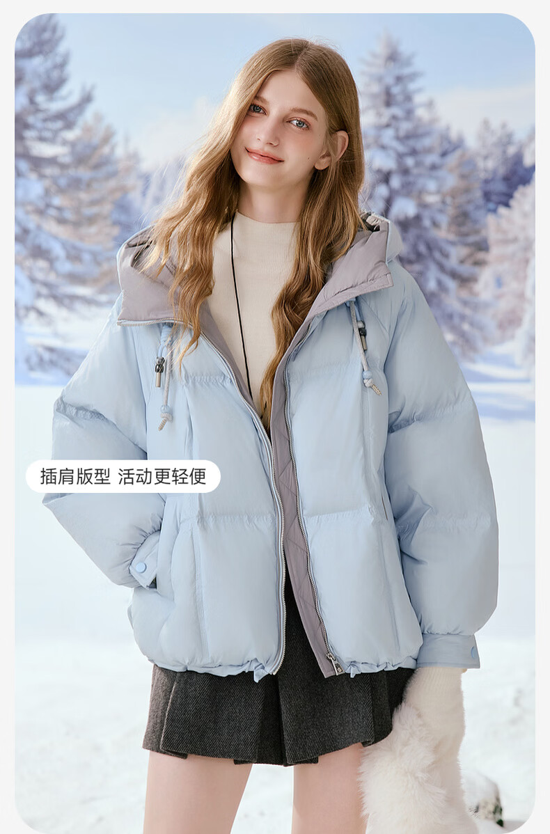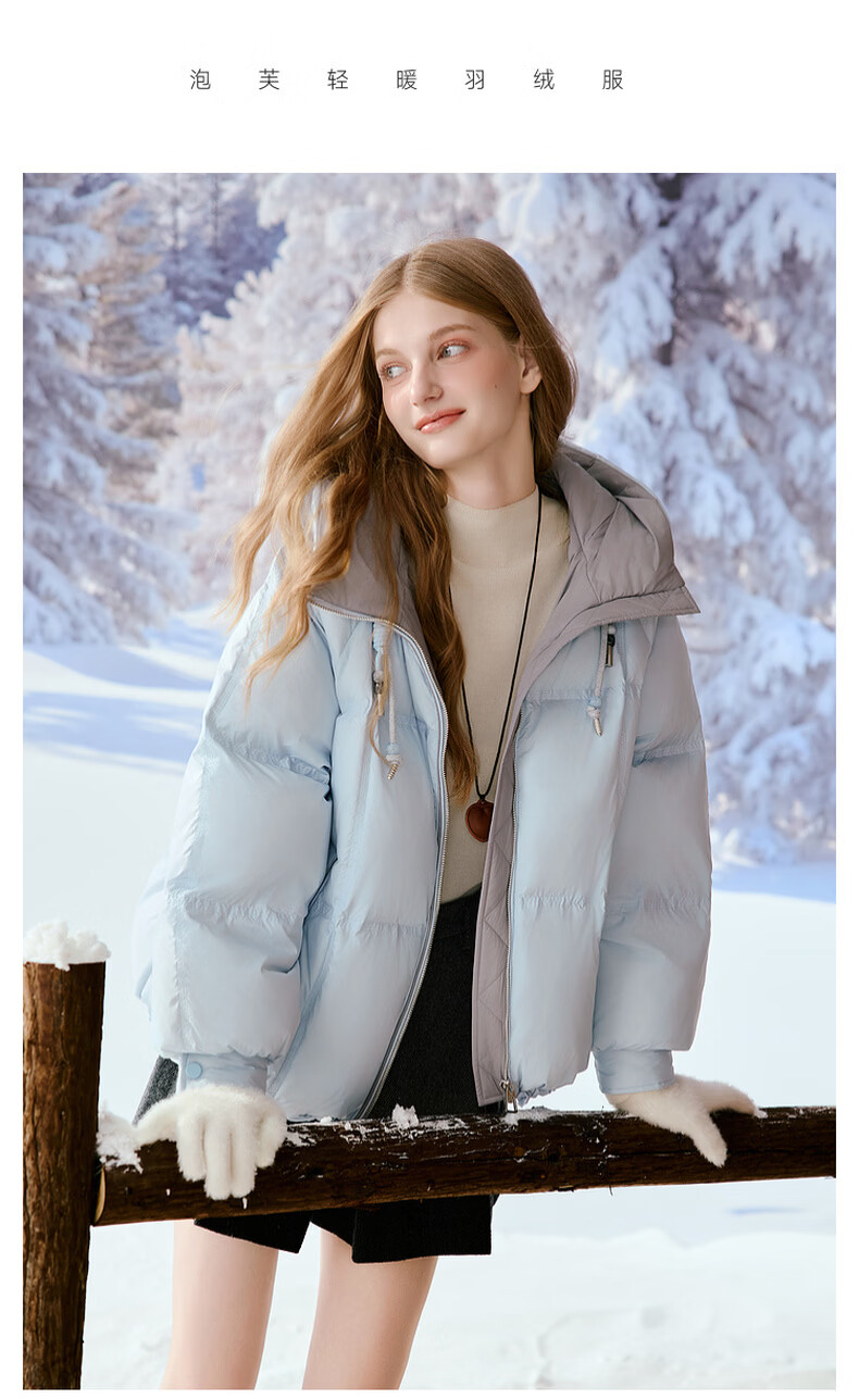 Xiangying Blue Puff Down Jacket Women's Short 2025 Winter New 90 White Duck Down Stitched Hooded Warm Jacket Route Blue S 155/80A/85-95 Jin