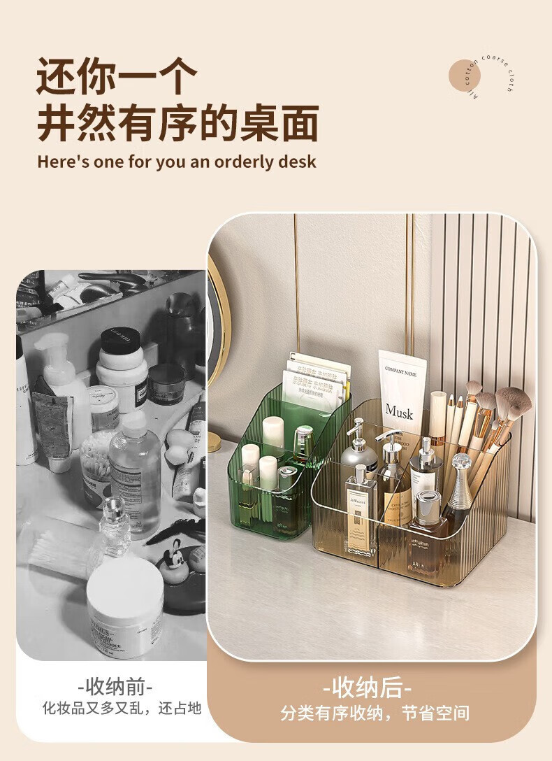Jingsheng Jinshi Desktop Light Luxury Storage Box Home Cosmetics Plastic Stationery Skin Care Product Organizing Rack Multi-grid Large Size Random Color