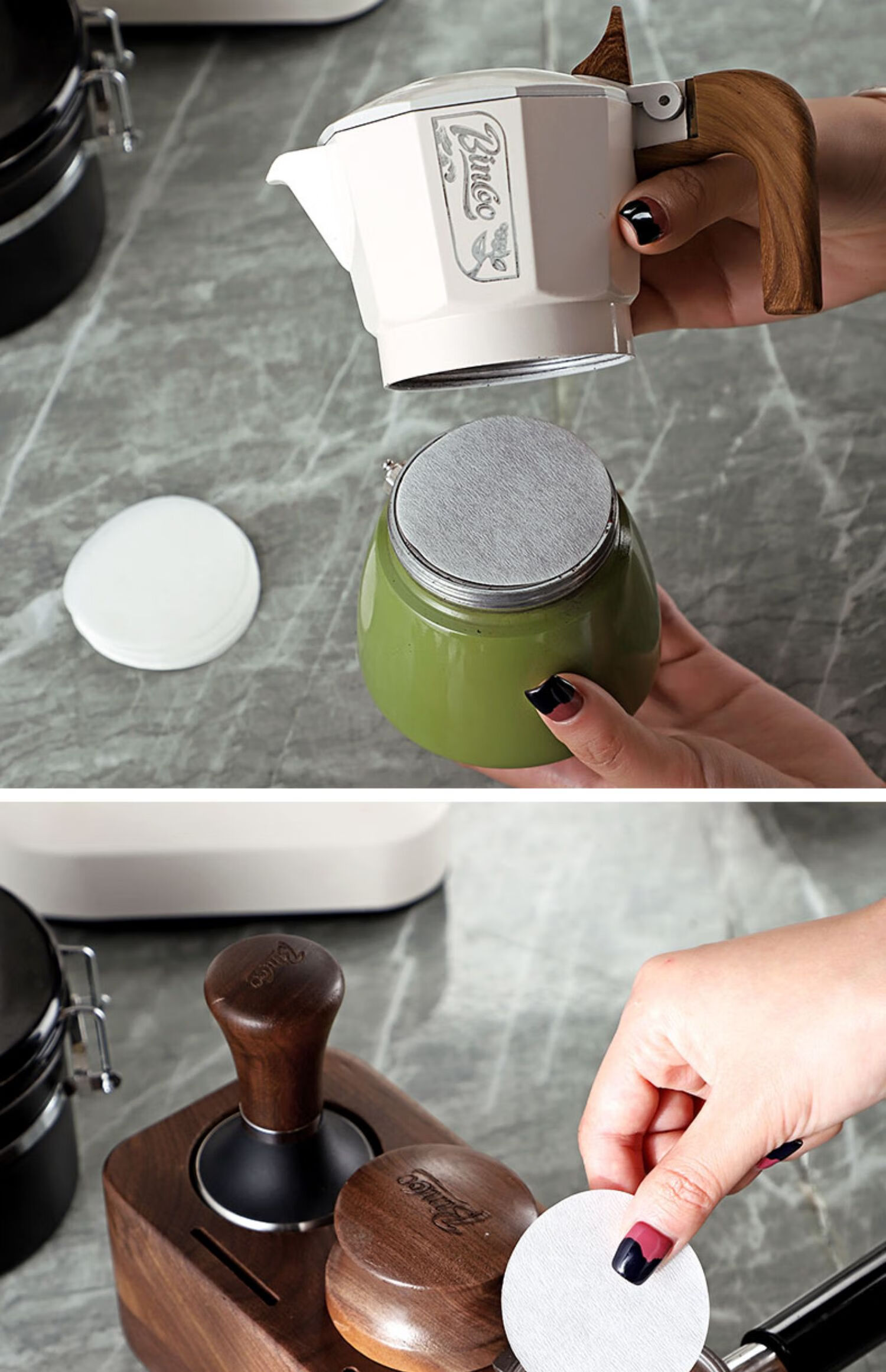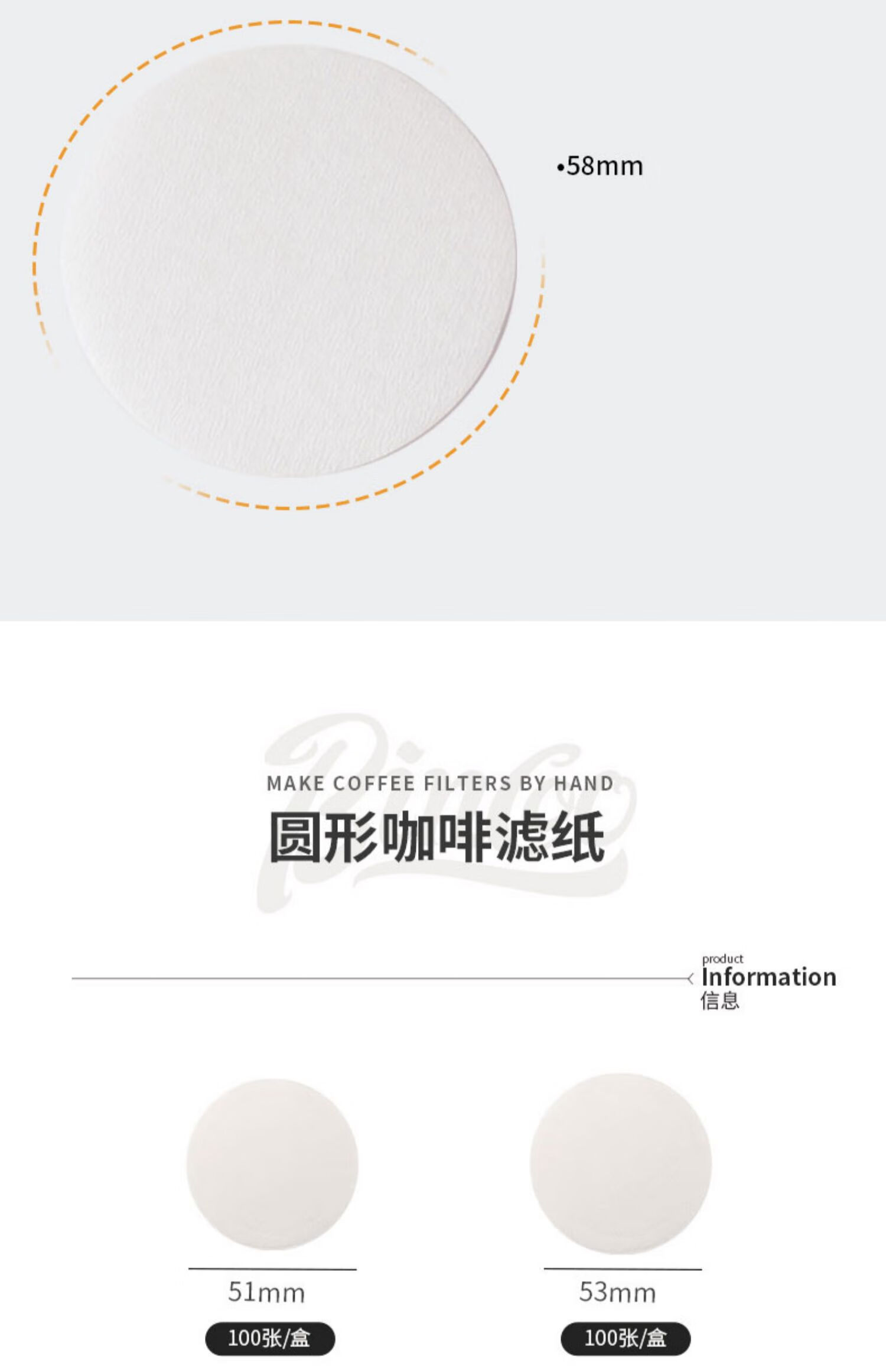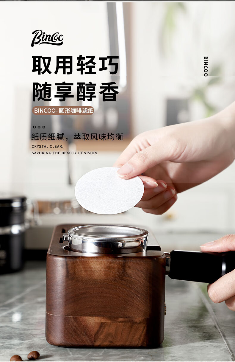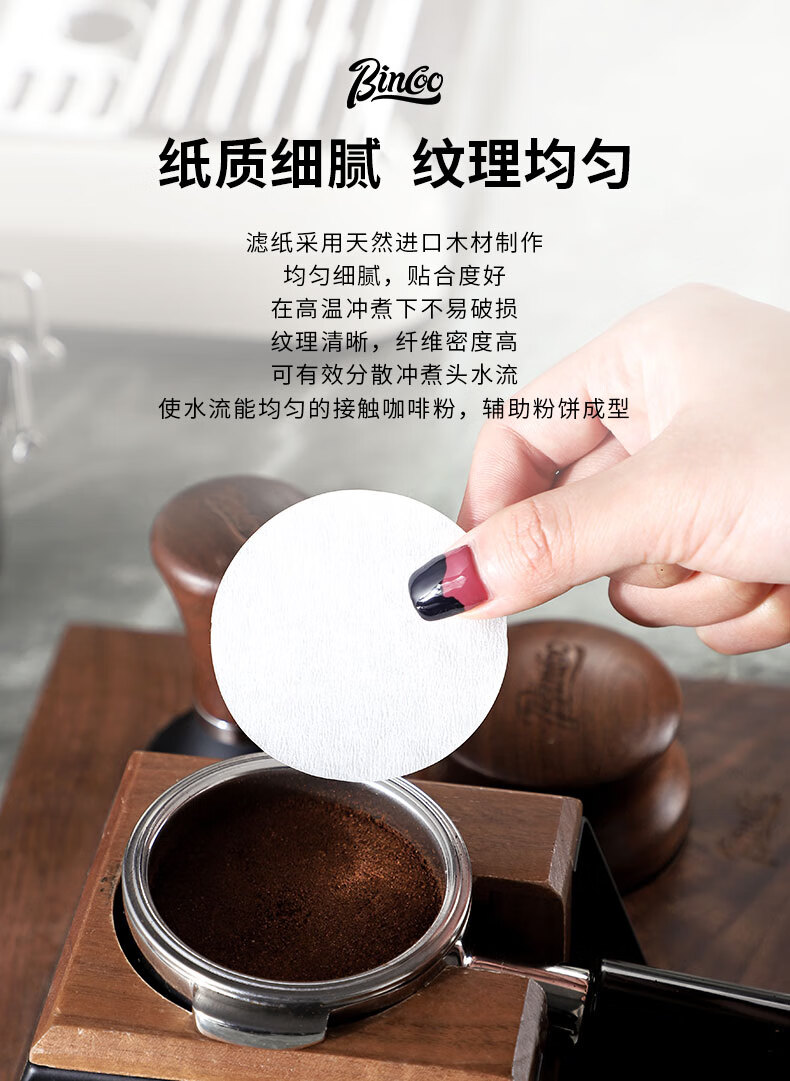 Bincoo Italian coffee machine handle round powder bowl special filter paper Moka pot 51/53/58mm universal 100 pieces filter powder bowl filter paper-51MM 100 pieces