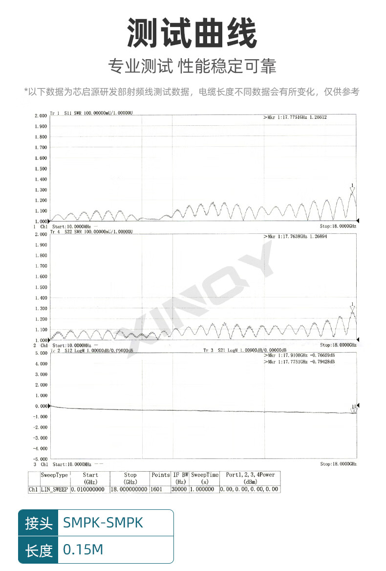 XINQY Xinqiyuan SS405 RF coaxial cable 0-12GHz SMA/GPO (SMP) signal test interconversion extension cable flexible low loss SMA female-SMP female 0.1m