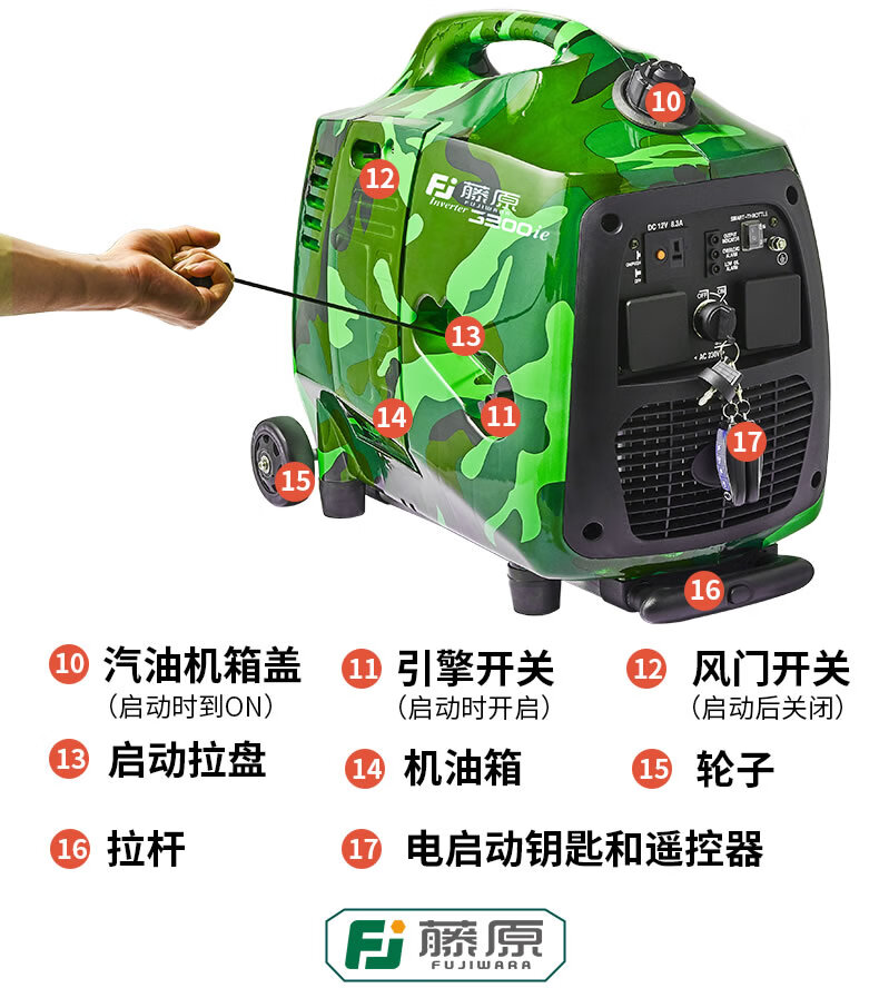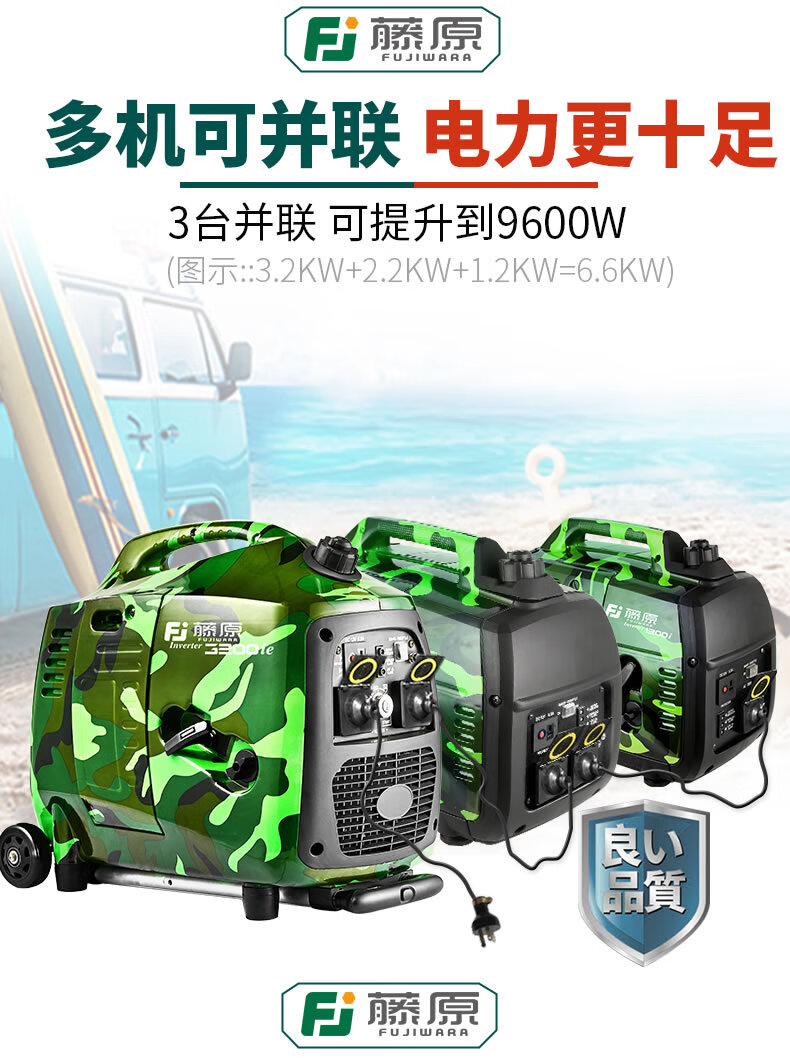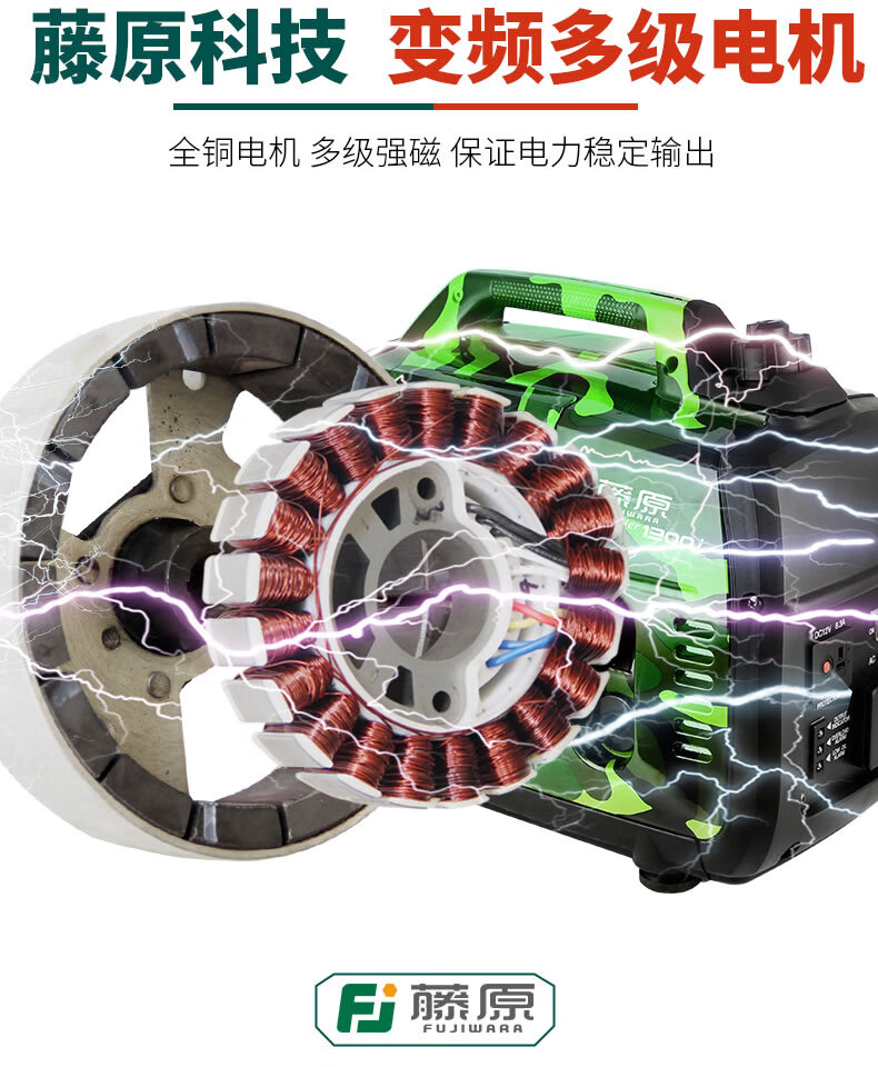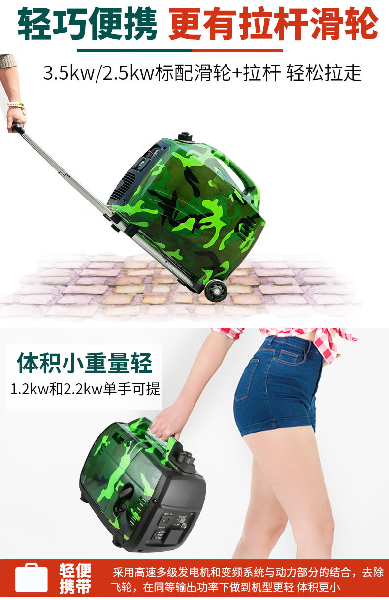 Fujiwara micro gasoline generator 220v household small silent variable frequency backup emergency outdoor camping portable 1.2Kw camouflage variable frequency generator