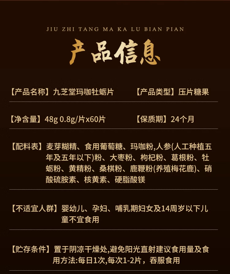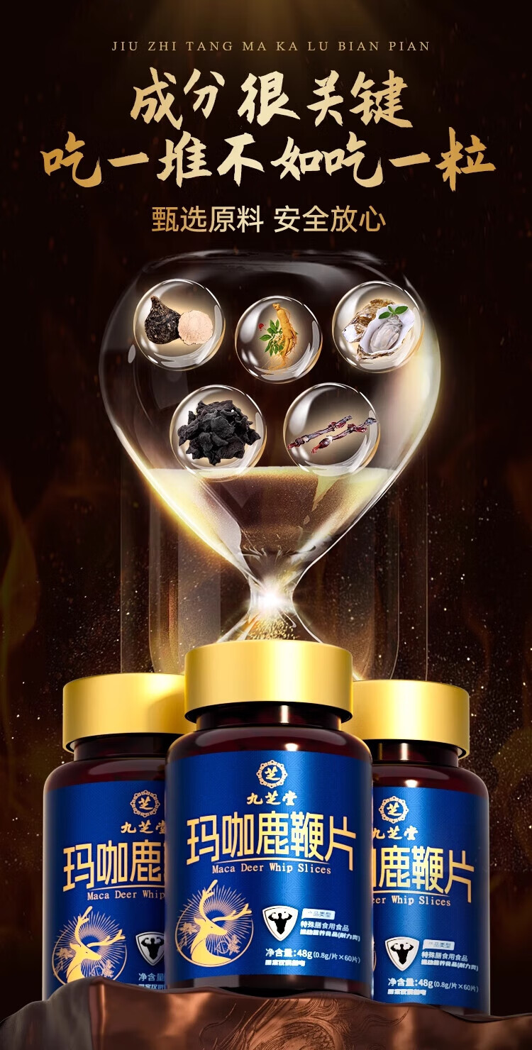 Jiuzhitang Macaka Deer Whip Tablets, Oyster Peptide, Ginseng and Polygonatum, Nourish and Strengthen Essence, Strengthen Kidney and Yang, Improve Essence, Adult Men's Products to Explode Boyfriend Power, Maca Deer Whip Tablets*1 bottle