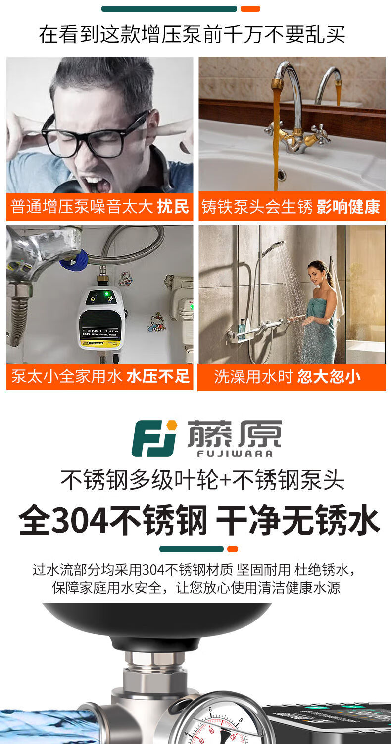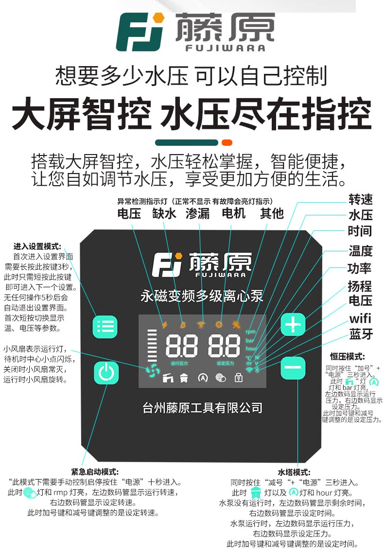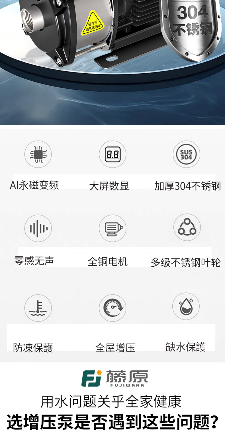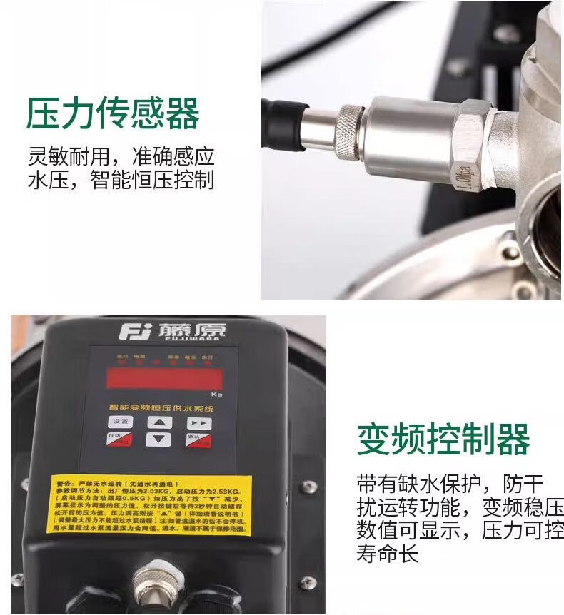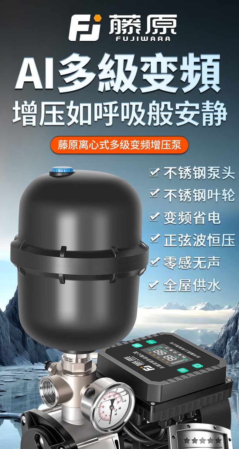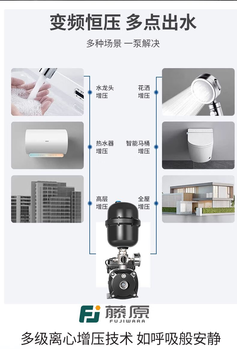 Fujiwara 304 stainless steel variable frequency booster pump villa hotel commercial fully automatic home 220V silent constant pressure water pump large flow multi-stage variable frequency pump SWLF4-5