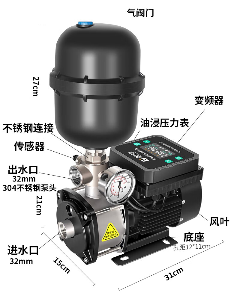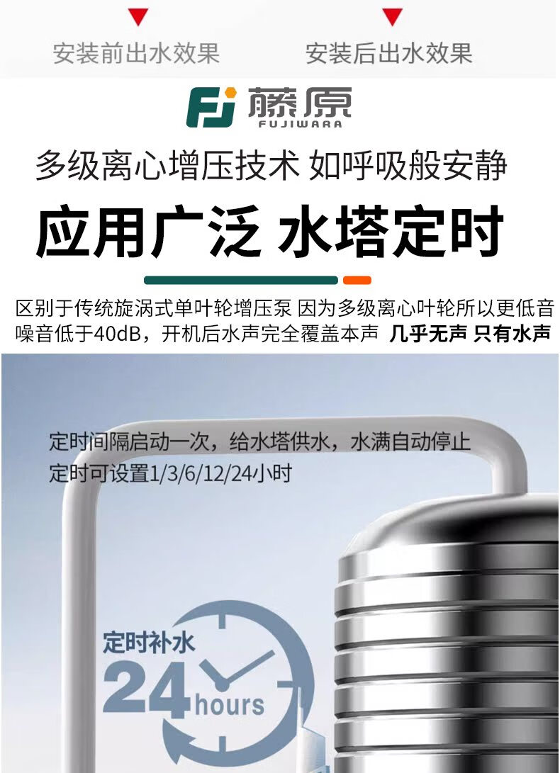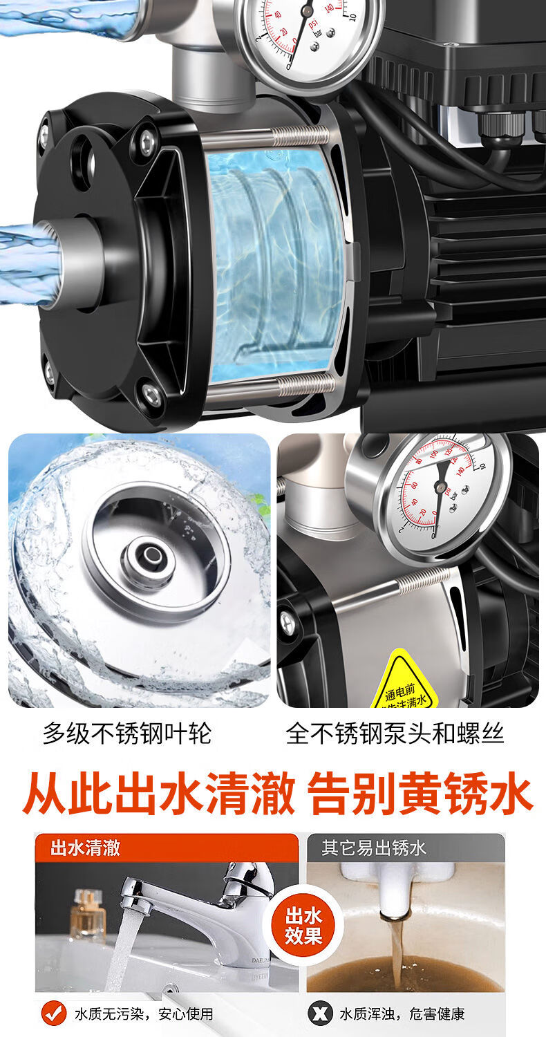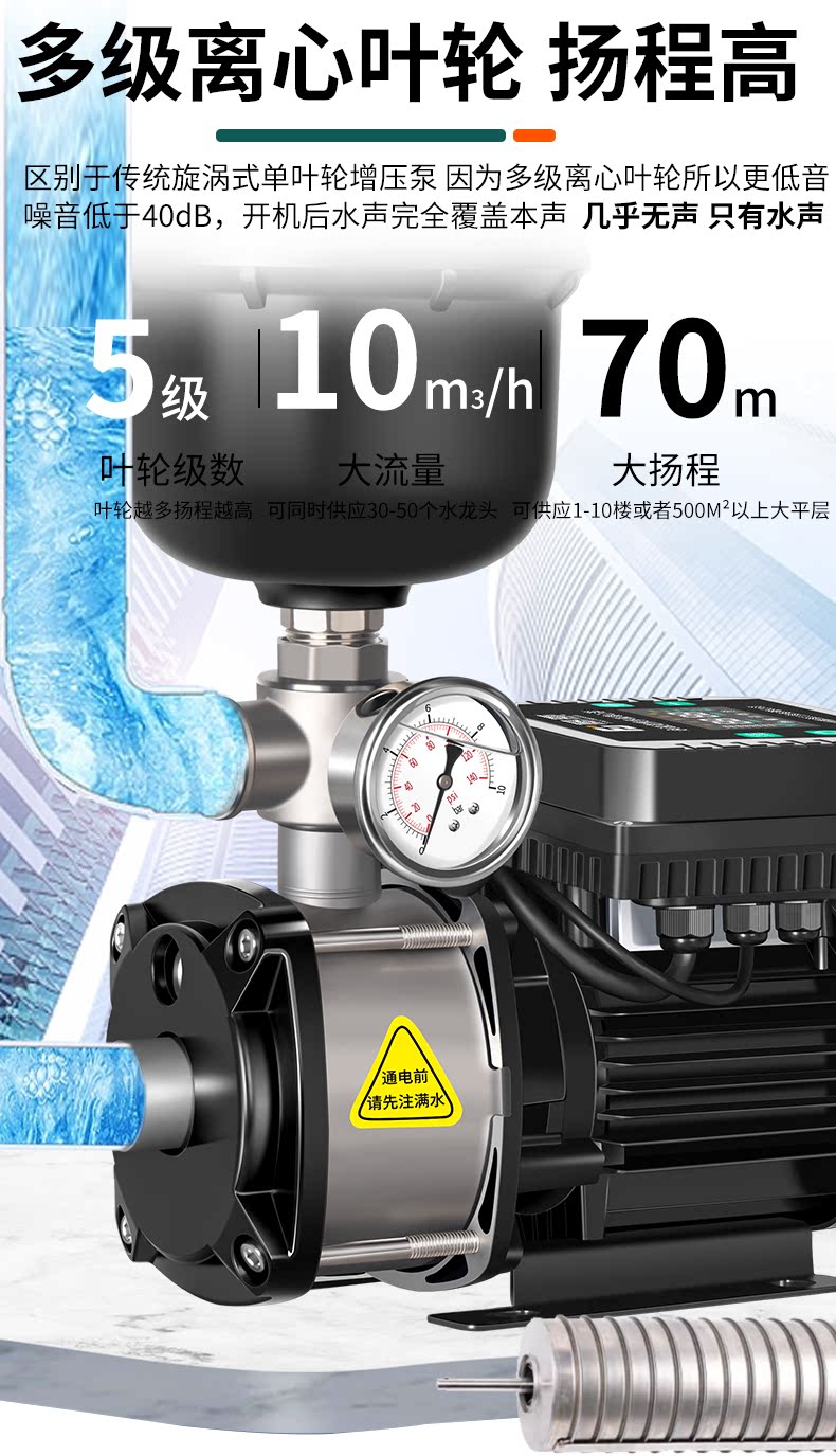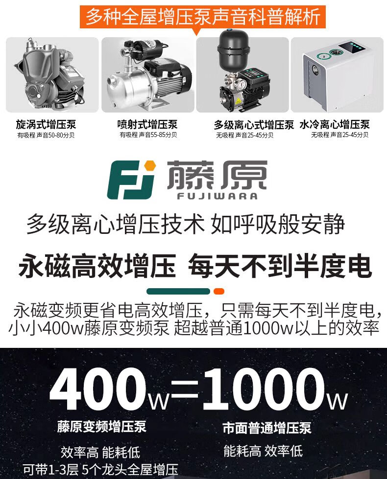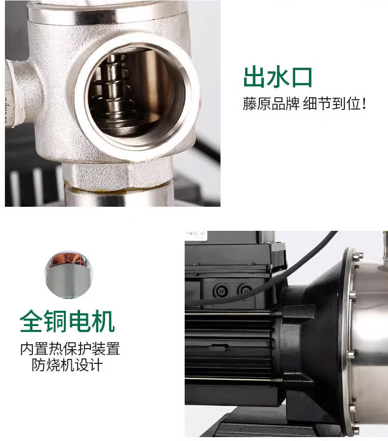 Fujiwara 304 stainless steel variable frequency booster pump villa hotel commercial fully automatic home 220V silent constant pressure water pump large flow multi-stage variable frequency pump SWLF4-5