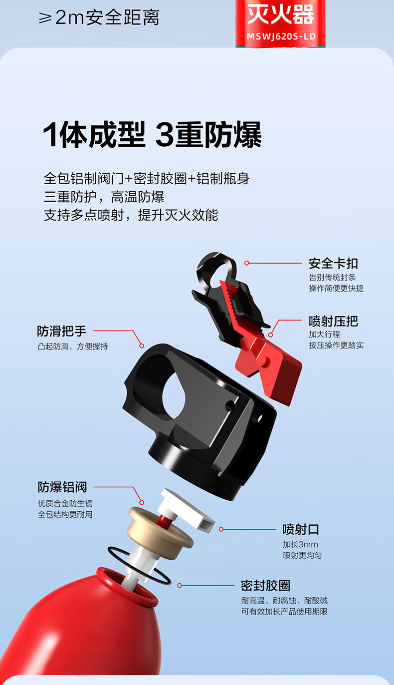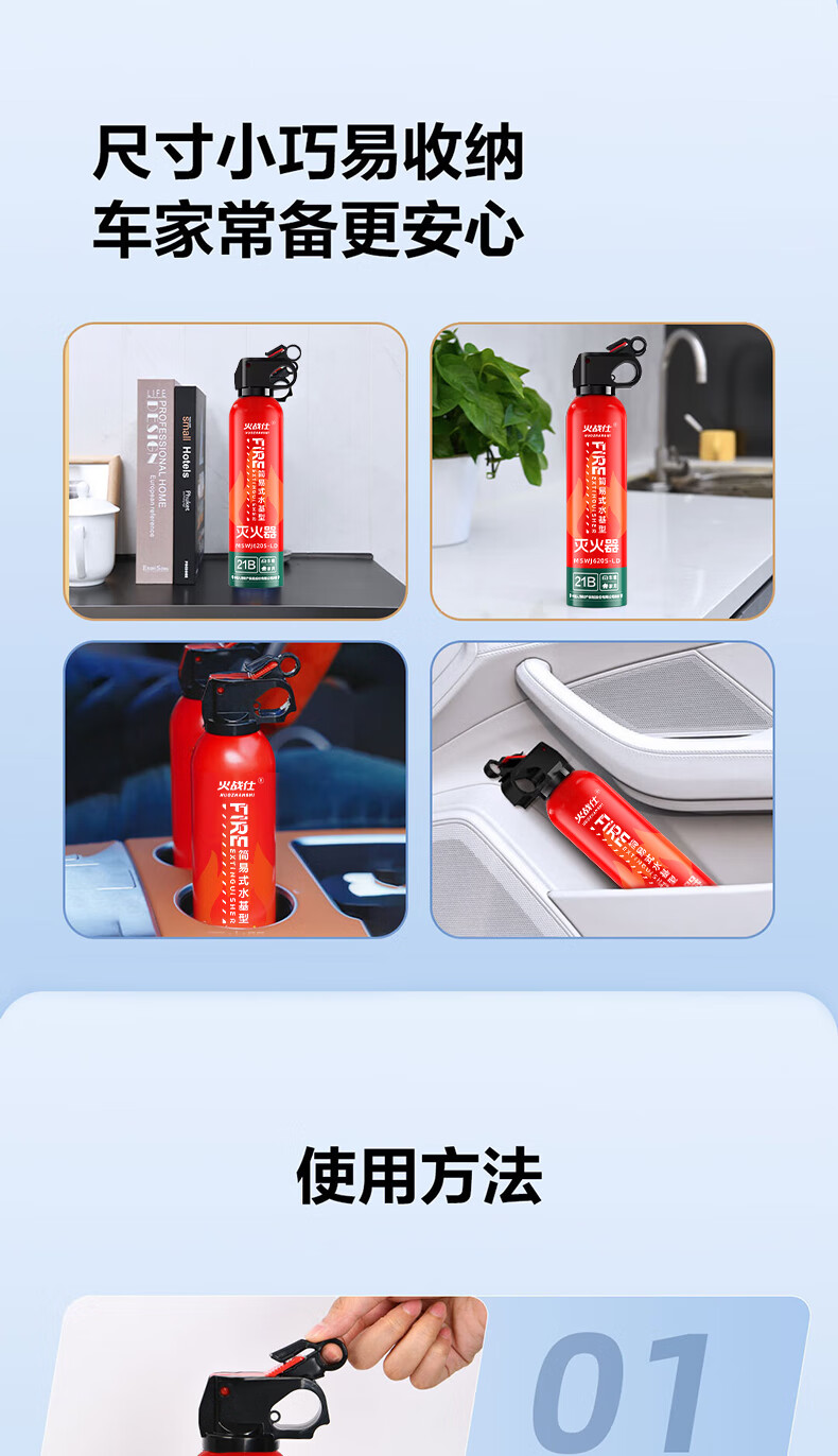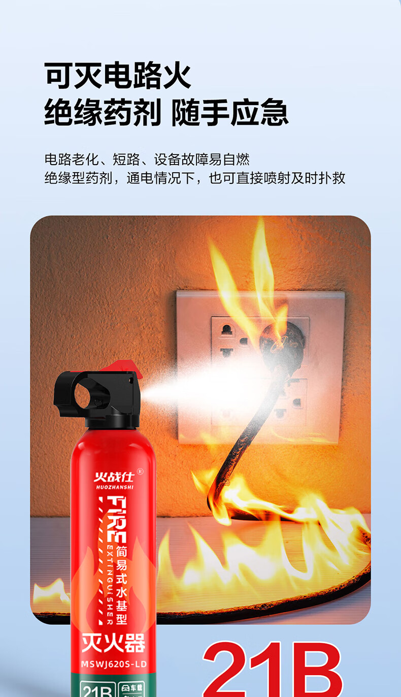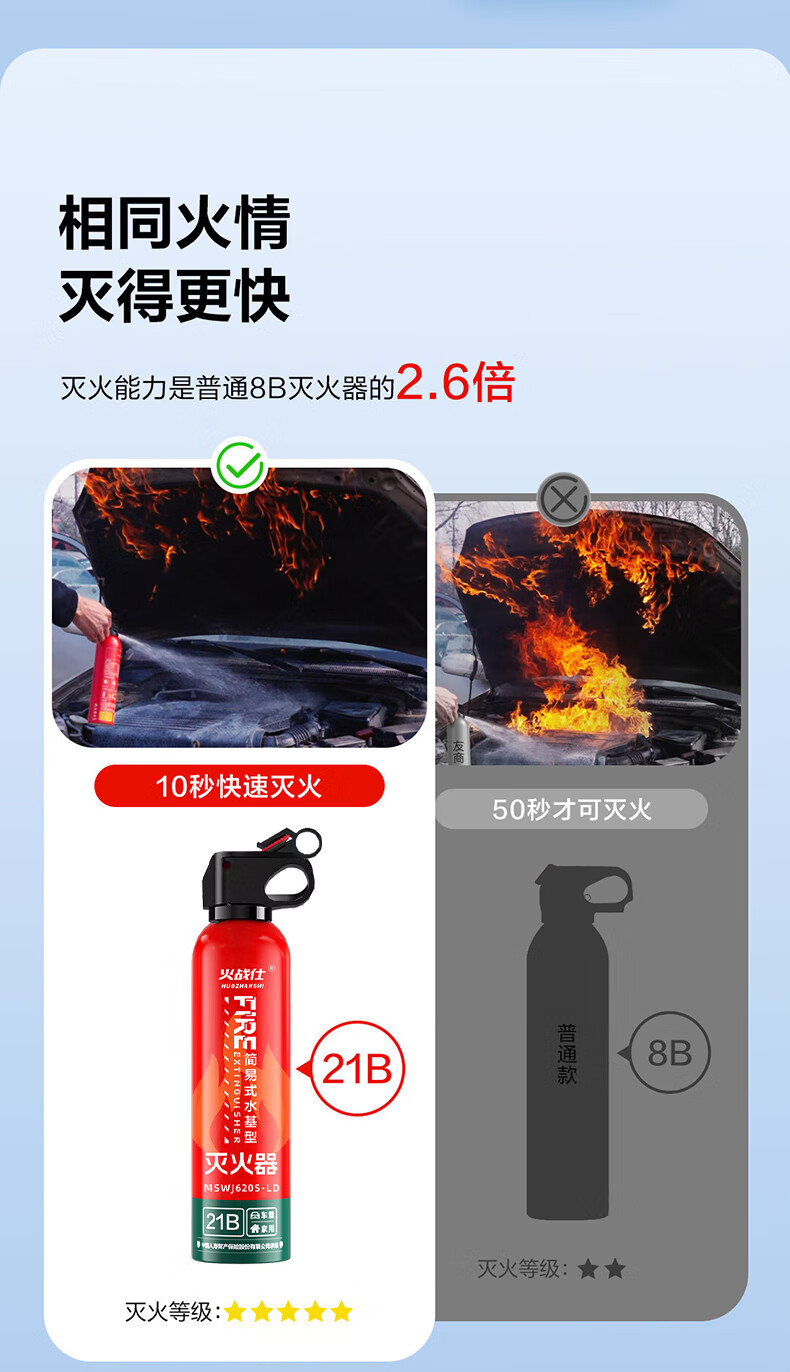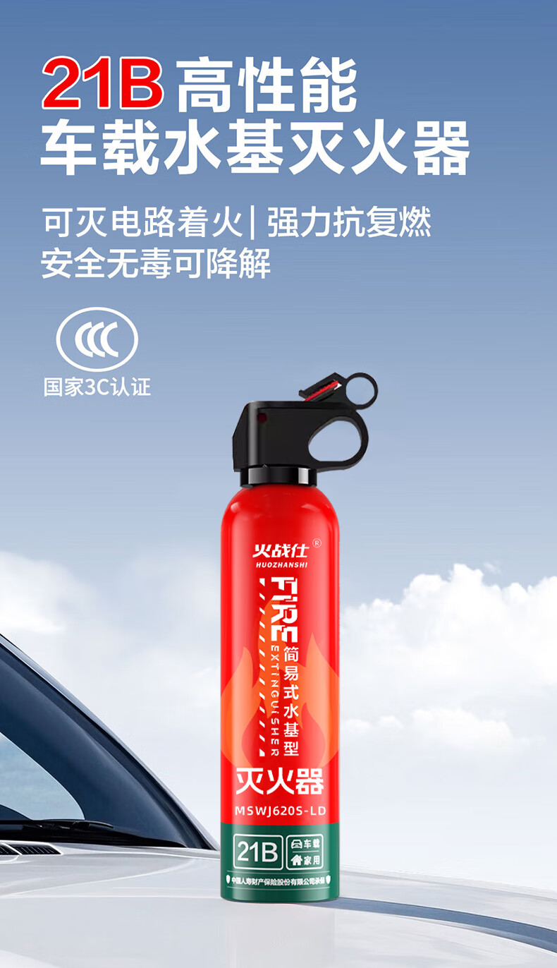 Fengxi car fire extinguisher 2025 new explosion-proof 21B water-based private car household 3c certified portable 620ml water-based upgraded version 620m new energy vehicle high temperature explosion-proof