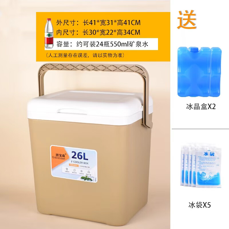 Warm sand color ice cream cold box storage bucket, special ice bucket for stall, ice cube insulated box, commercial refrigerator, 26 liters of warm sand color (insulation)