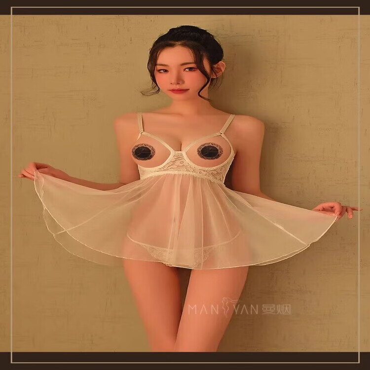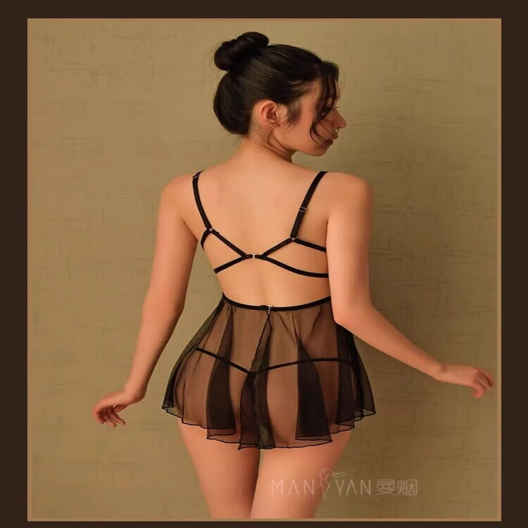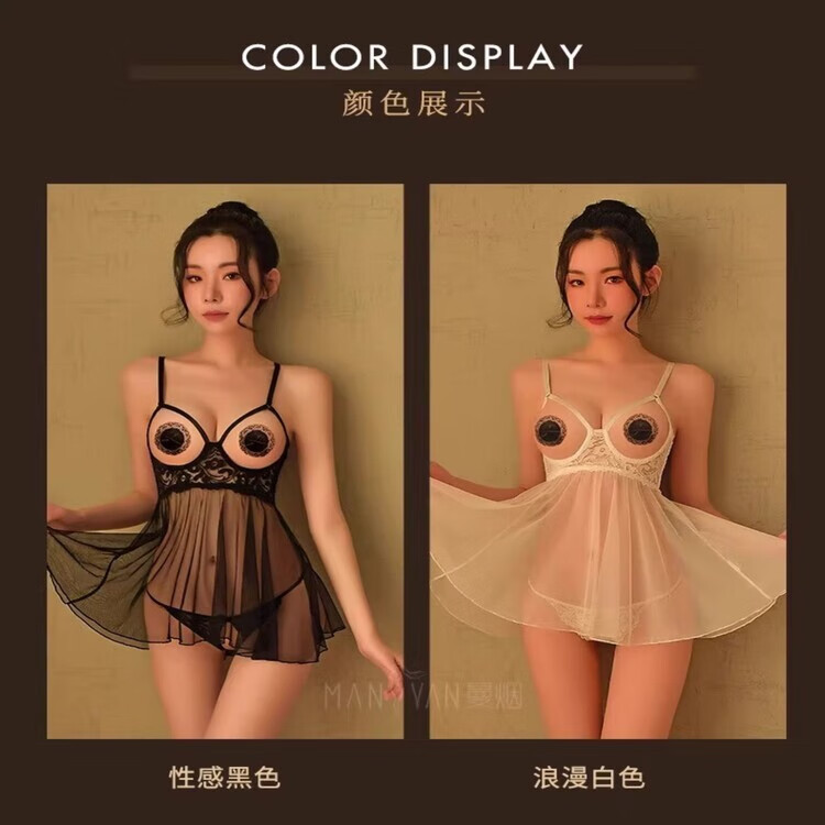 Kuangmo Couple's Sex Underwear Hollow Bra Sexy and Interesting Three-point Style Female Leaky Head Suspender Pajamas Couple Set Sexy Black Underwire Nightgown + Open Crotch T-Pants L 100-130 catties Confidential Shipping