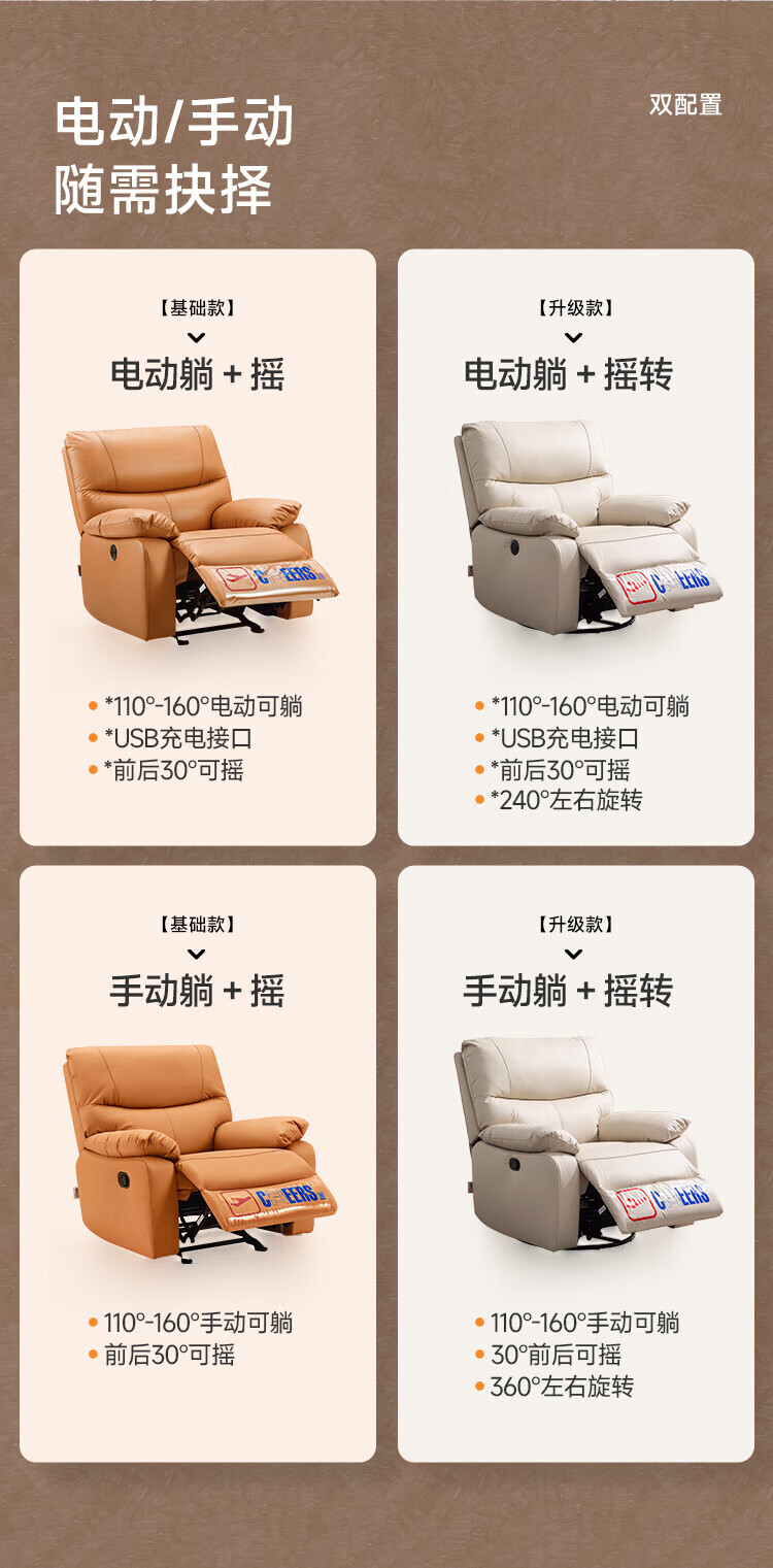 CHEERS Smart Chair Fabric Sofa Living Room Electric Function Chivas Comfort Representative K9780 Electric Emma Orange-Manual Reclining Priority Shipping (Contact Customer Service for Details)