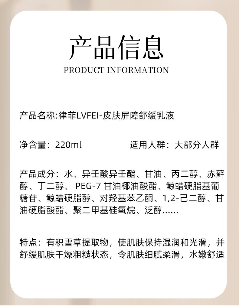 Skin barrier soothing lotion, moisturizing, repairing, moisturizing and hydrating primer, improving dry skin, skin barrier soothing lotion 220ml 1 bottle