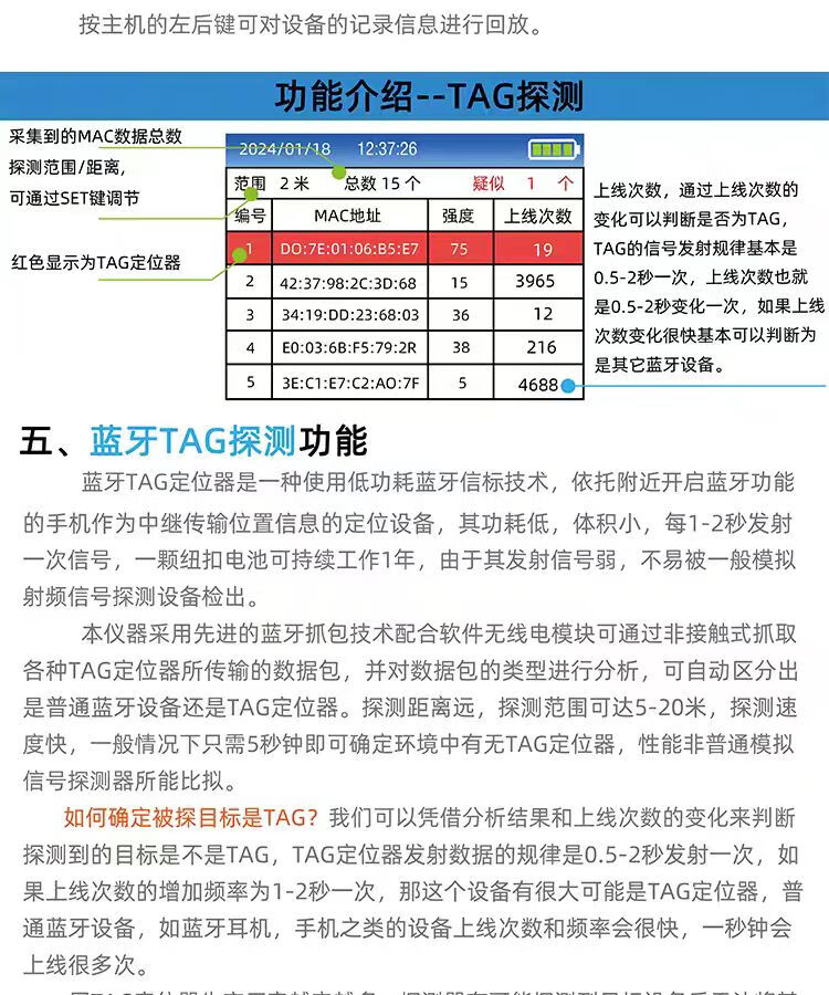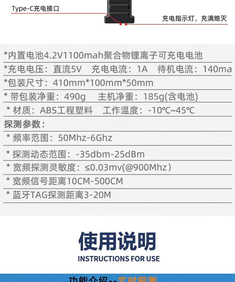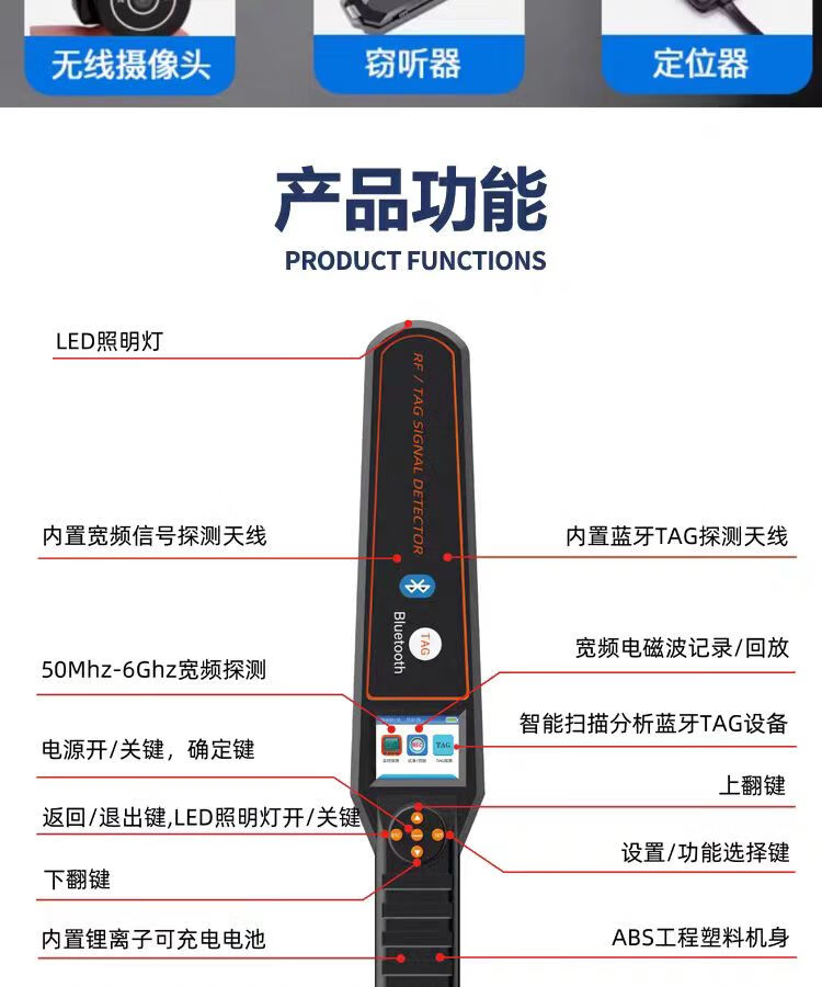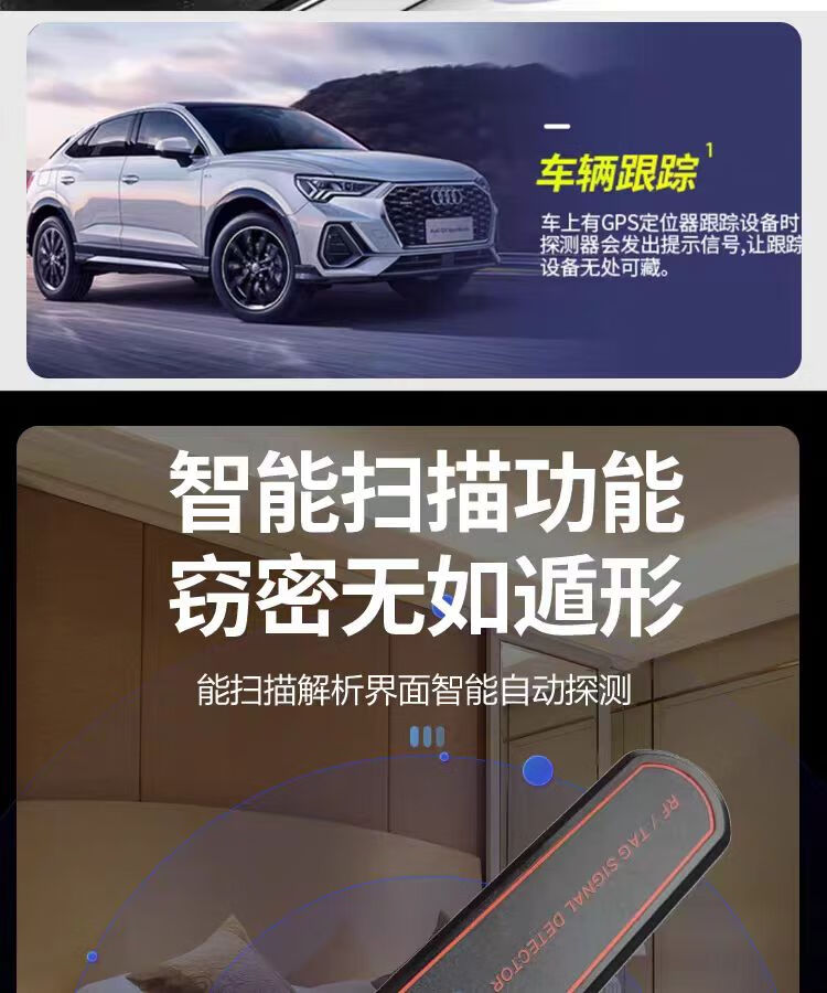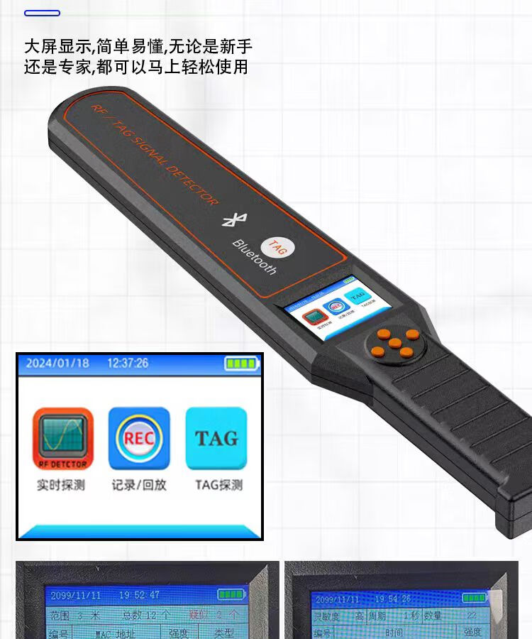 Jili GPS detector, anti-positioning recording, wireless signal detector, anti-monitoring and anti-candid photography, car-mounted TAG detector, handheld screen display TAG+GPS detection, ready to use after receipt