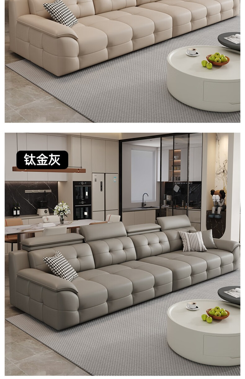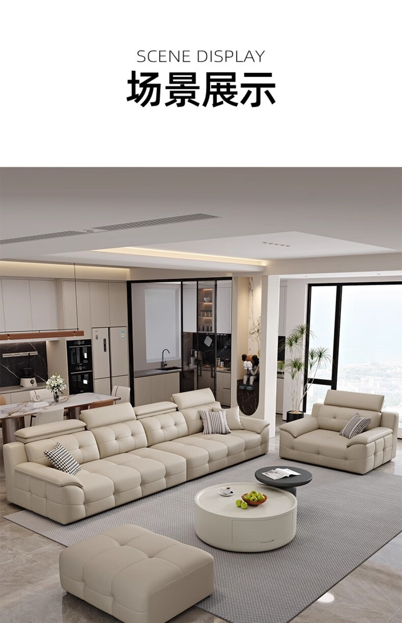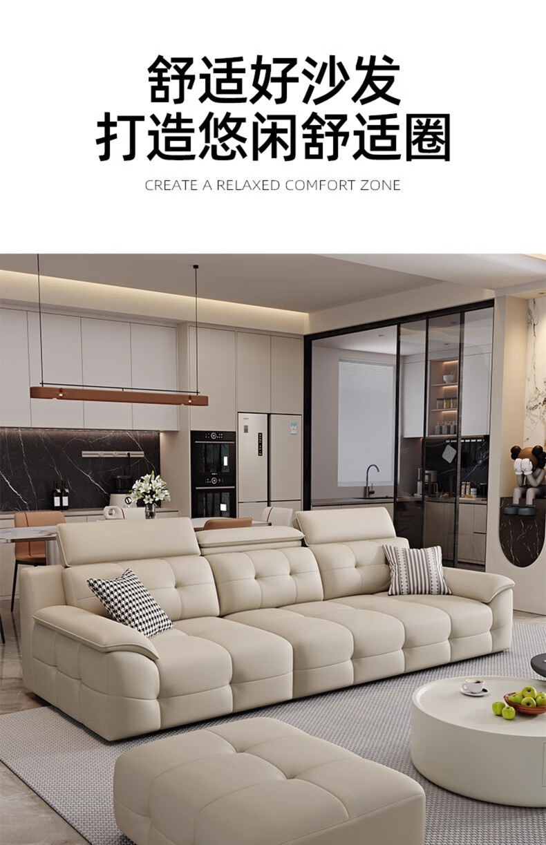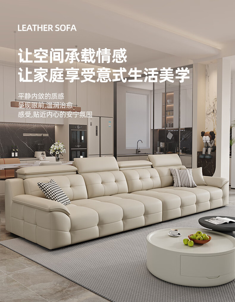 Suizhi leather sofa government subsidy Italian minimalist style straight home sofa living room 2025 new leather art sofa small four-seater 2.8m straight with same style footrest upgraded contact surface thickened leather + imported washed latex cushions