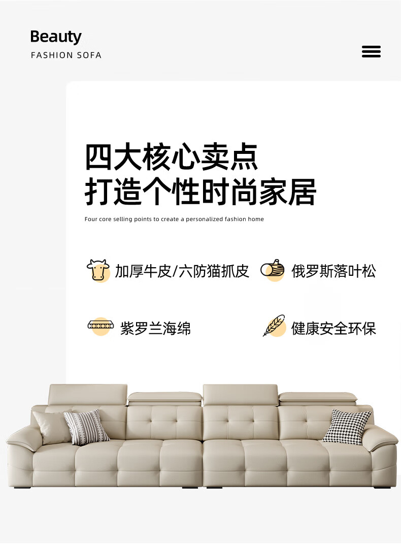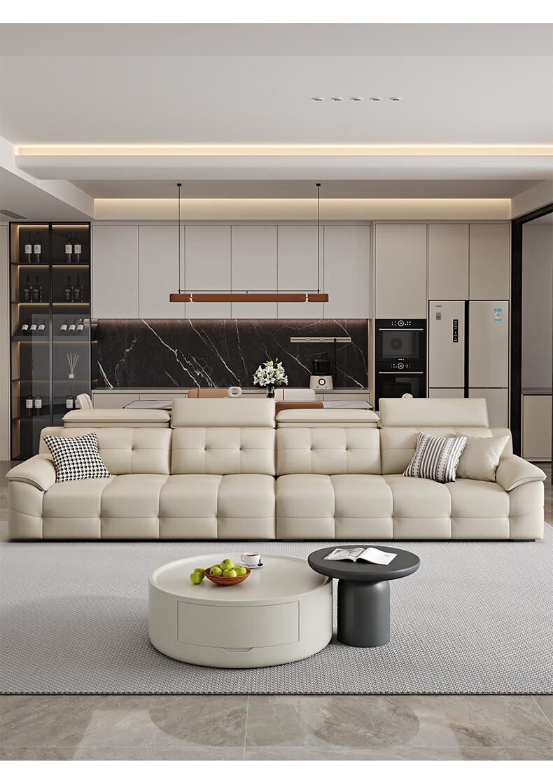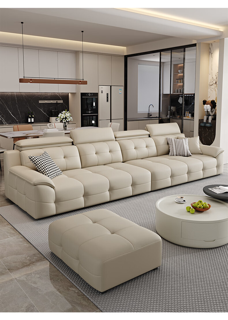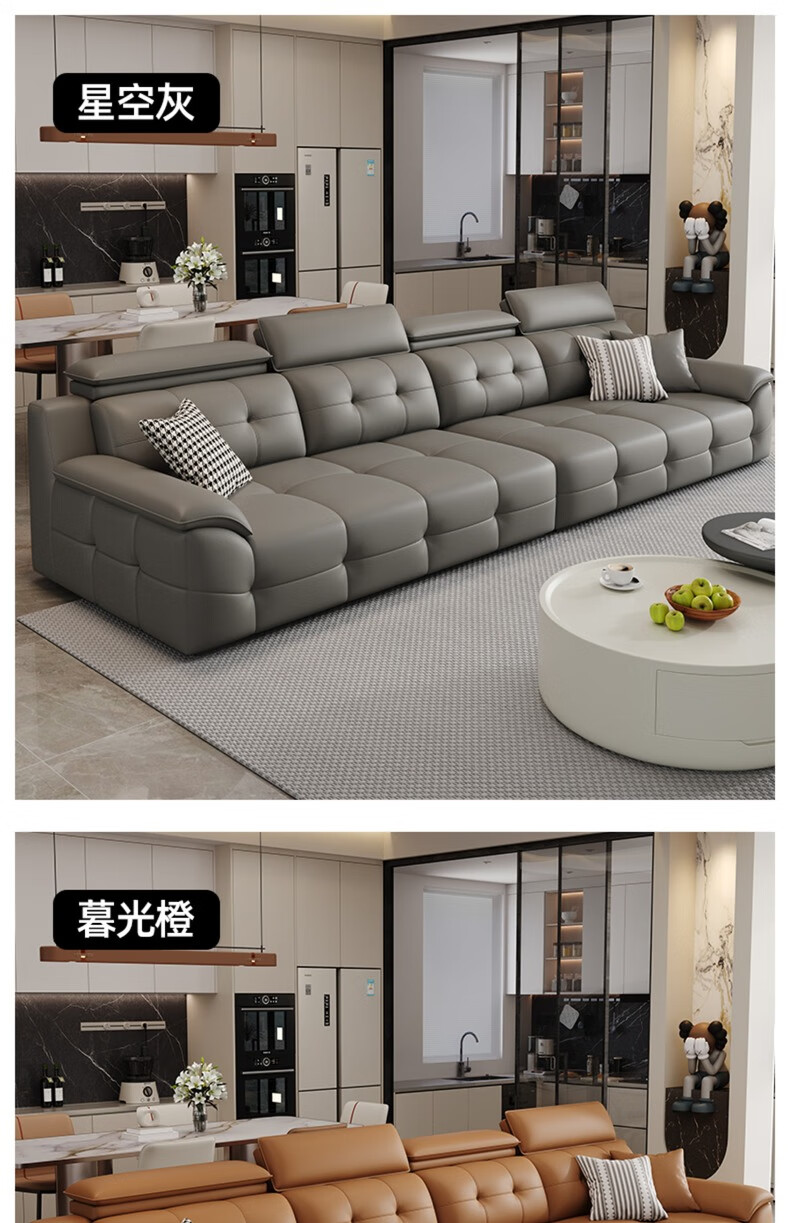 Suizhi leather sofa government subsidy Italian minimalist style straight home sofa living room 2025 new leather art sofa small four-seater 2.8m straight with same style footrest upgraded contact surface thickened leather + imported washed latex cushions
