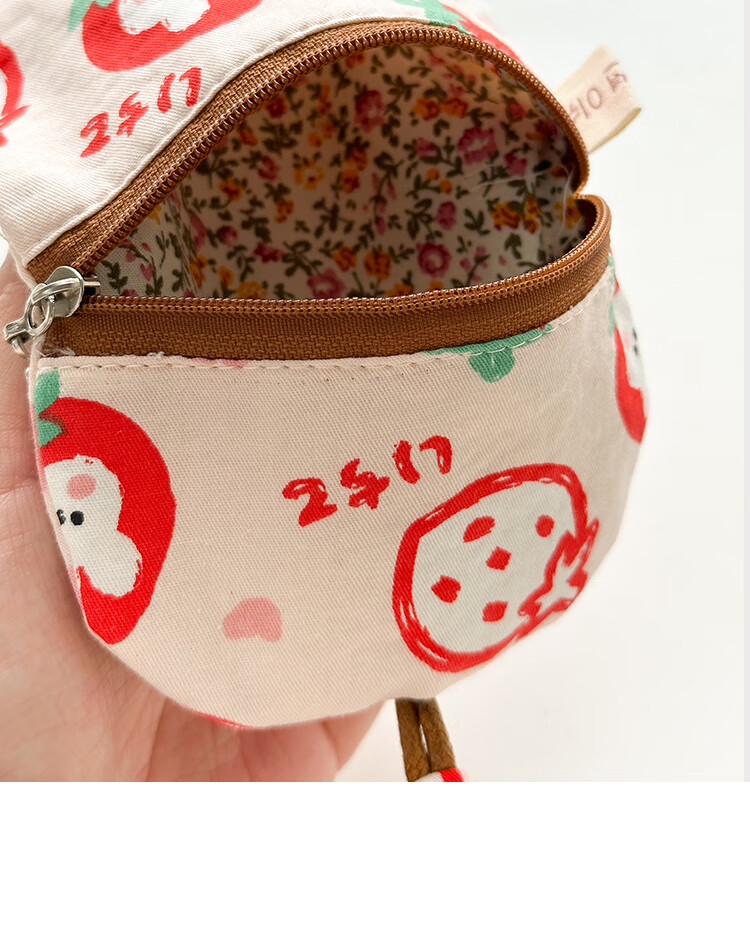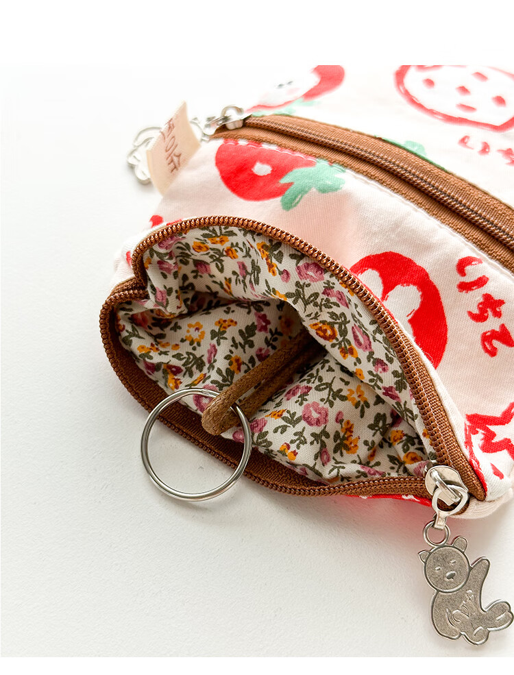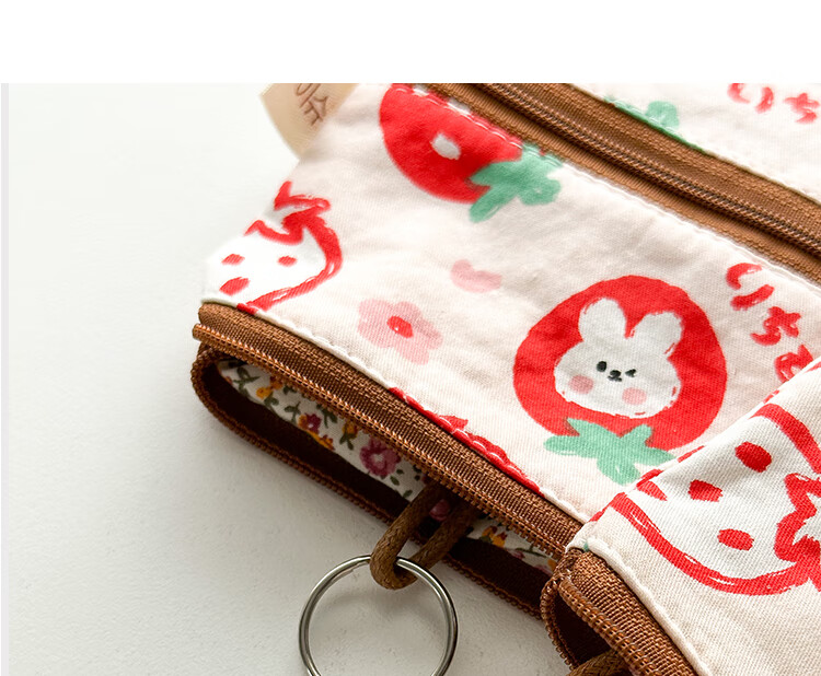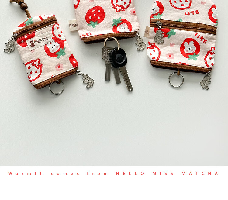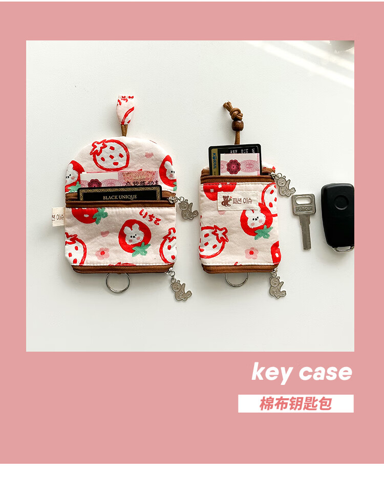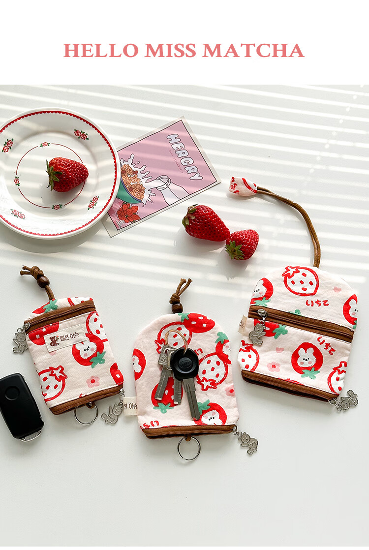 Shiganu zipper key bag for women, anti-scratch card slot, multi-functional storage, Meiji Strawberry Rabbit, small zipper model