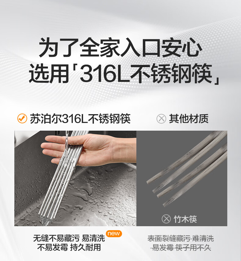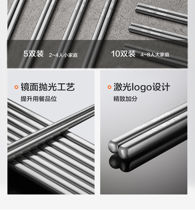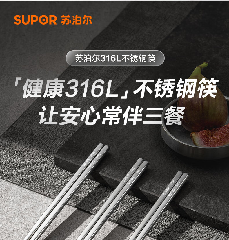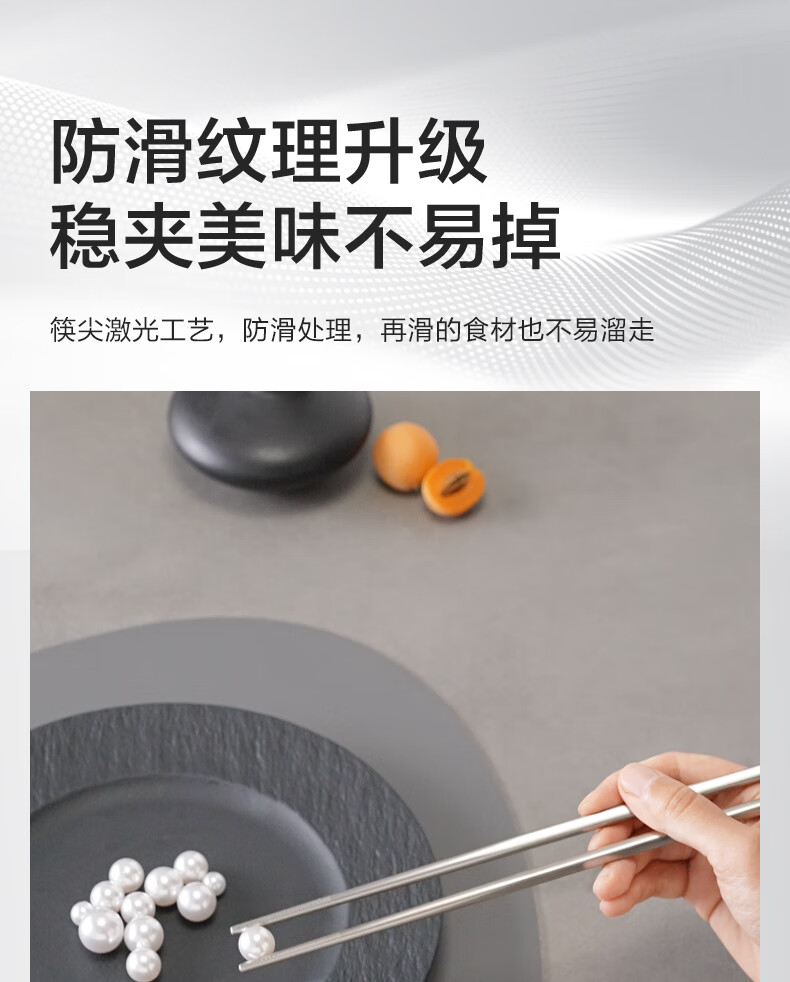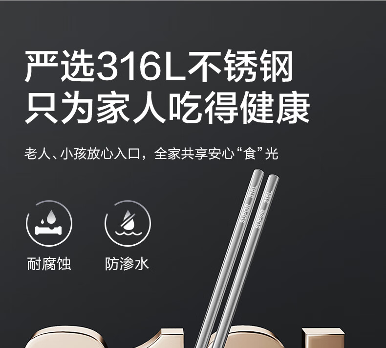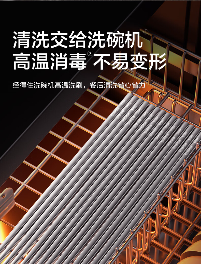 SUPOR 316L stainless steel chopsticks household high-end non-slip high temperature resistant metal chopsticks set portable tableware 316L stainless steel chopsticks 5 pairs