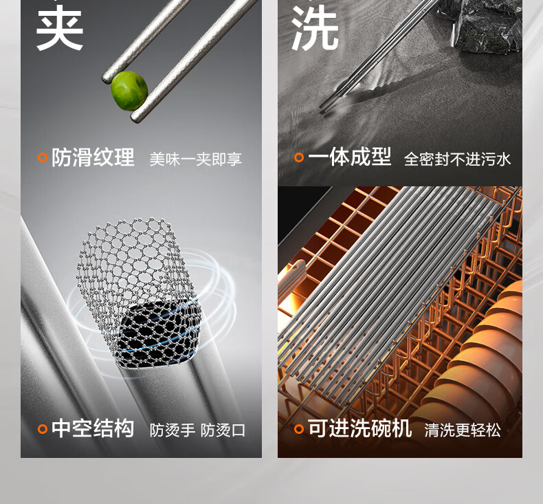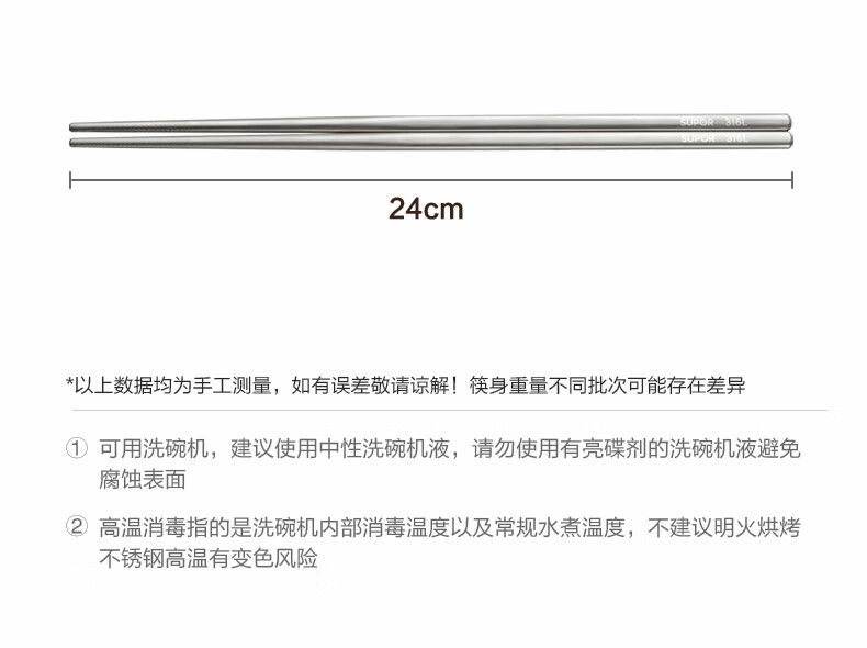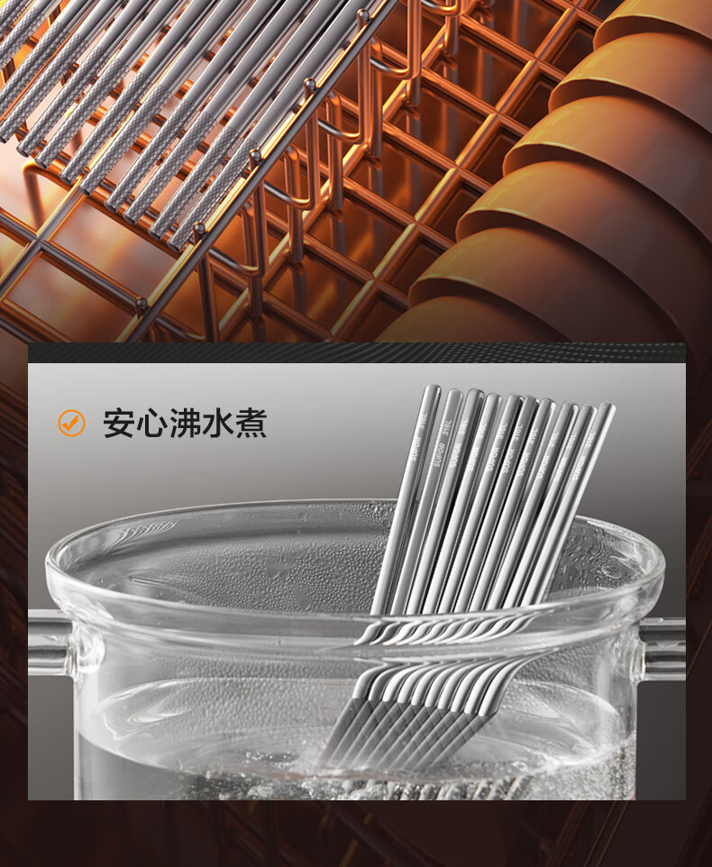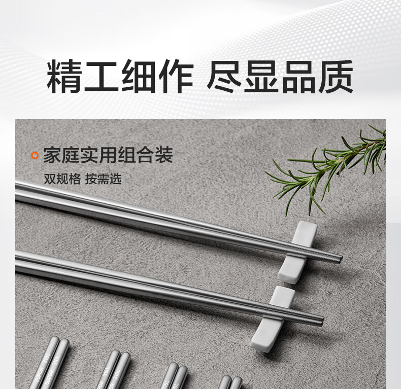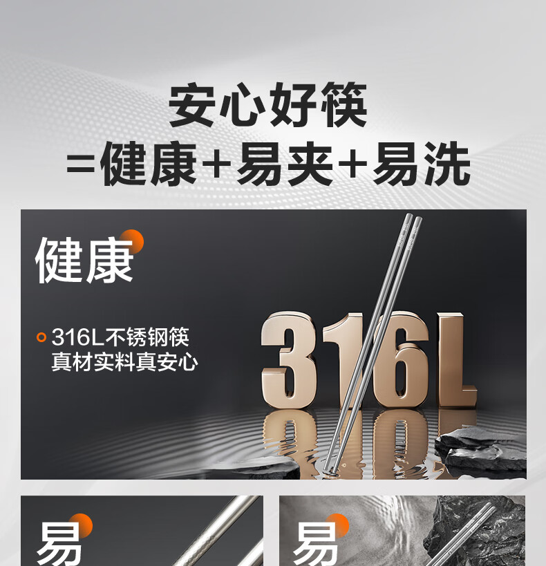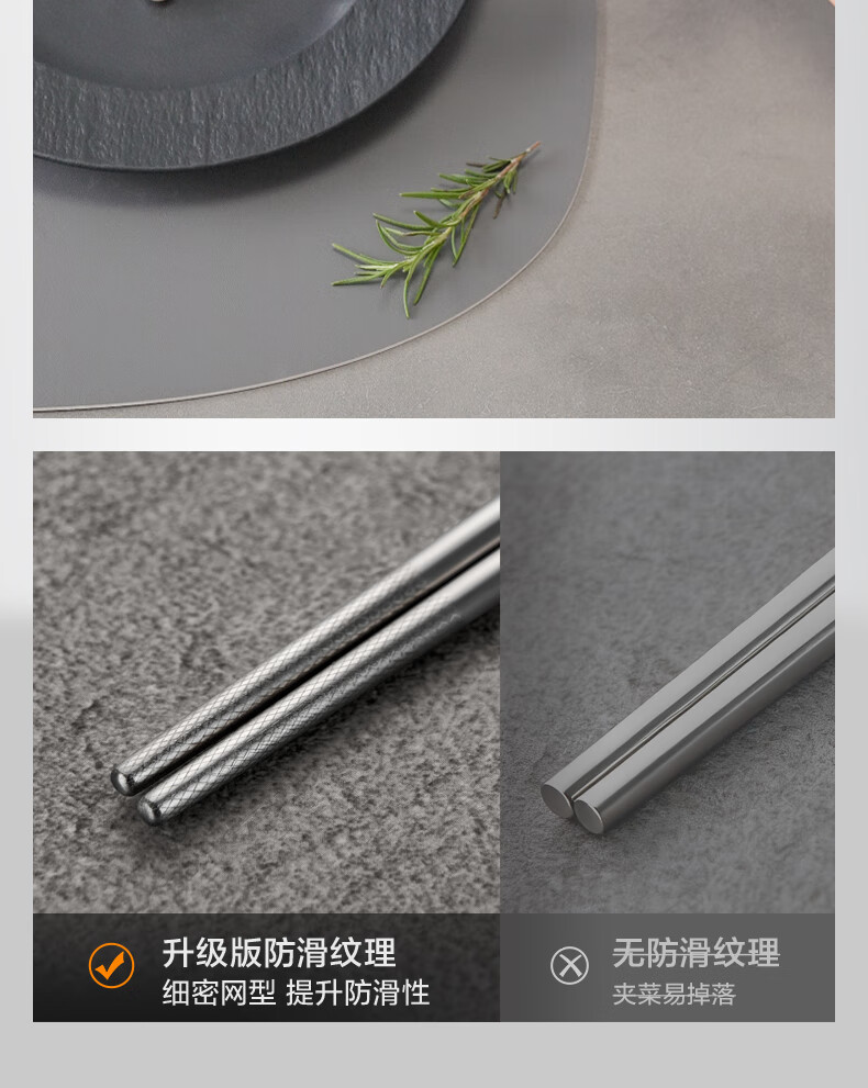 SUPOR 316L stainless steel chopsticks household high-end non-slip high temperature resistant metal chopsticks set portable tableware 316L stainless steel chopsticks 5 pairs