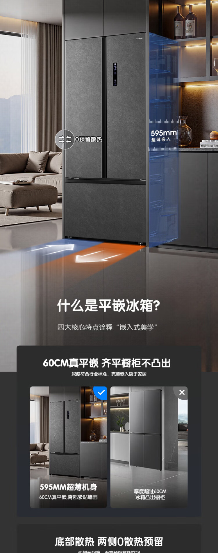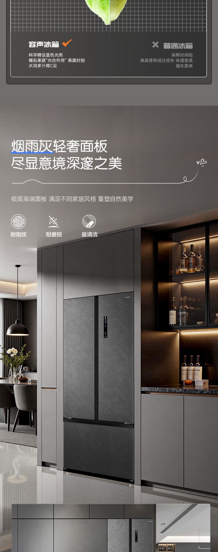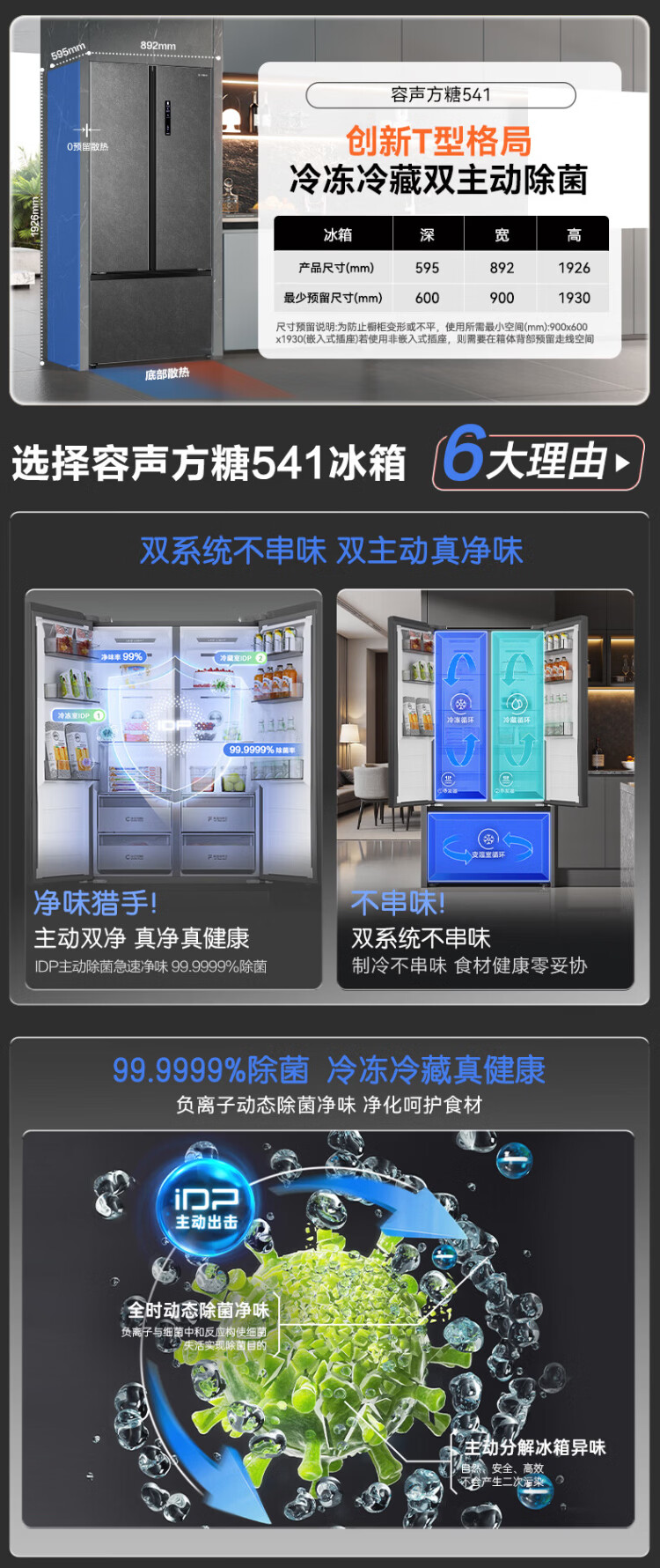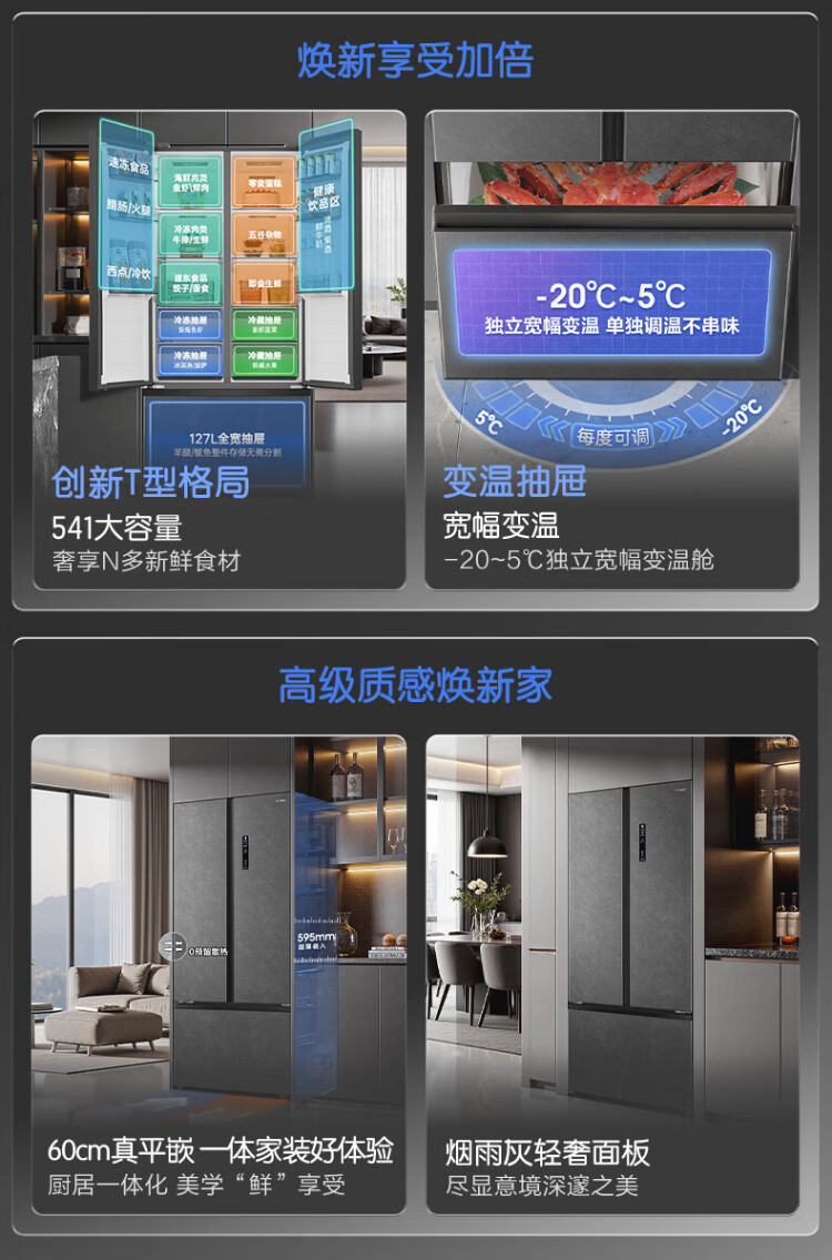 Rongsheng 541 active sterilization dual system French multi-door T-door embedded refrigerator first-class energy efficiency household refrigerator BCD-541P50FZLAK Yanyu Gray