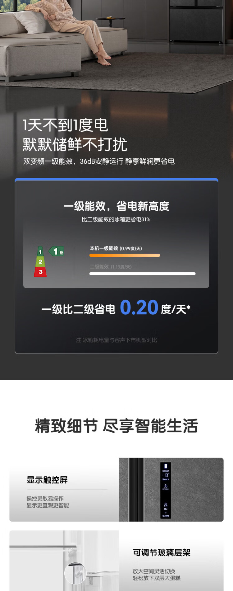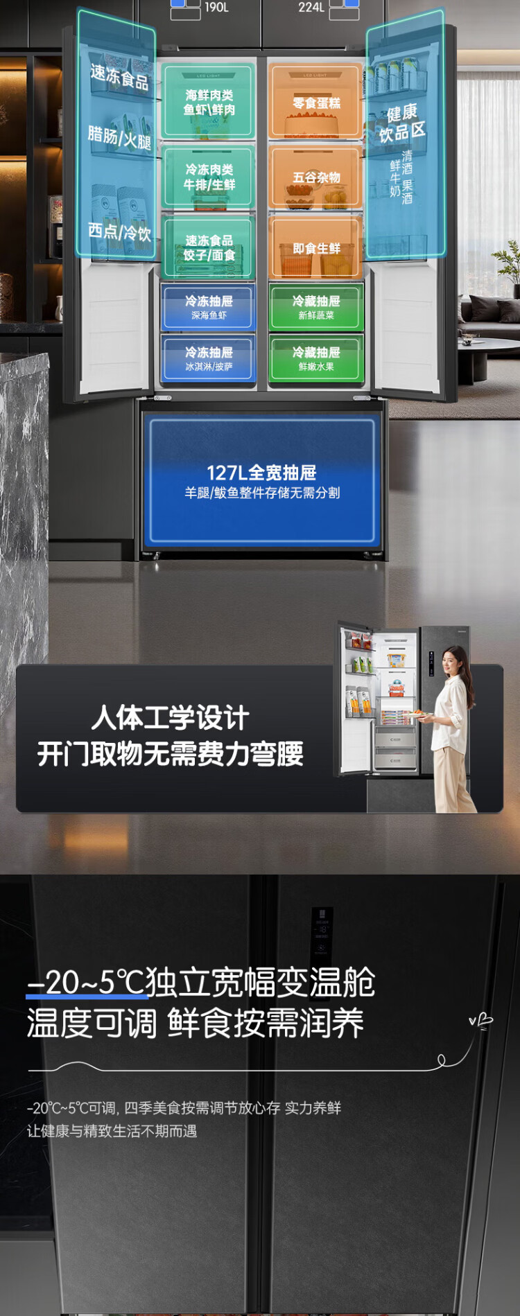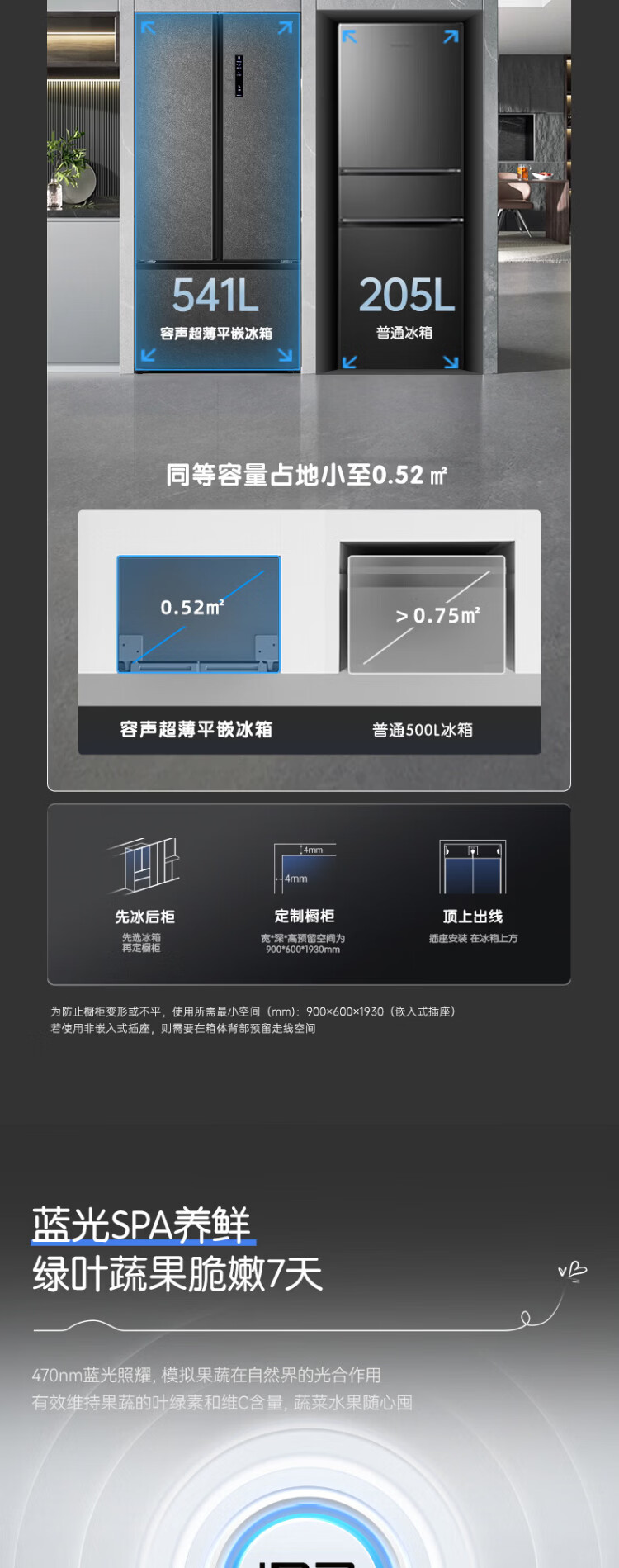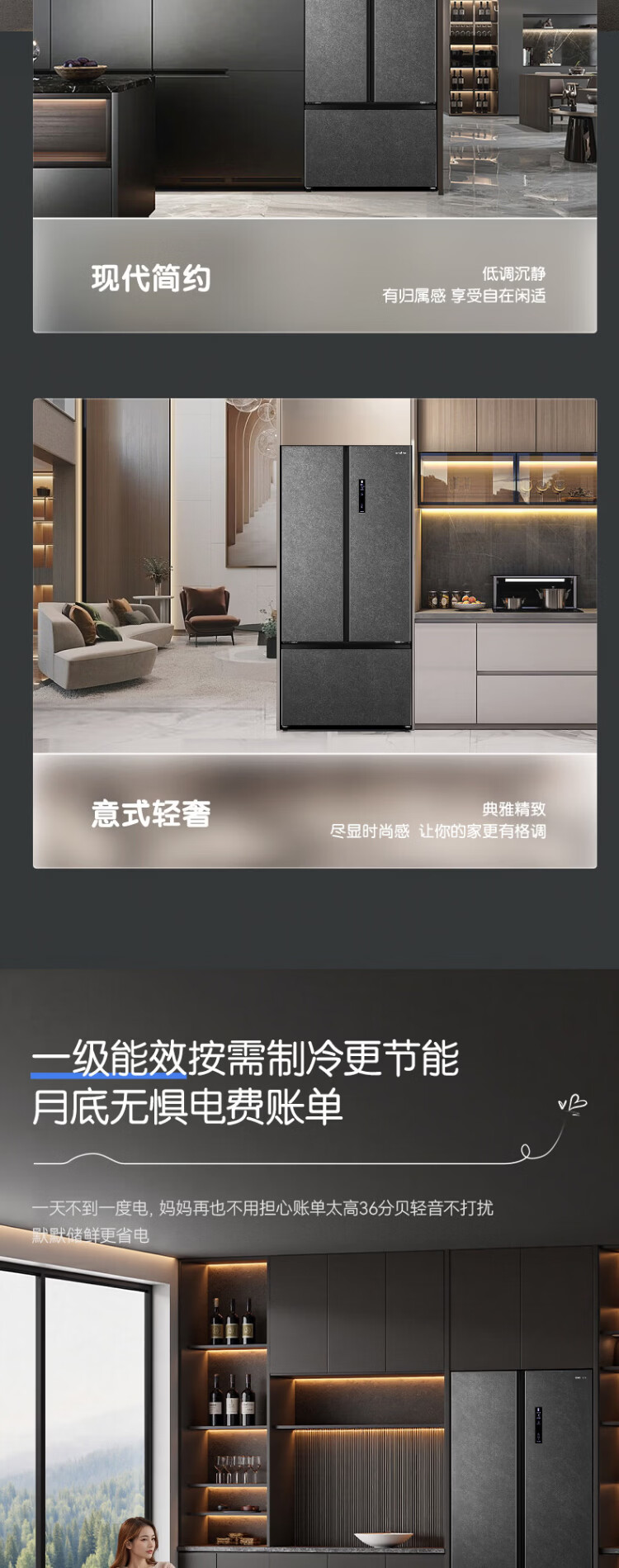 Rongsheng 541 active sterilization dual system French multi-door T-door embedded refrigerator first-class energy efficiency household refrigerator BCD-541P50FZLAK Yanyu Gray