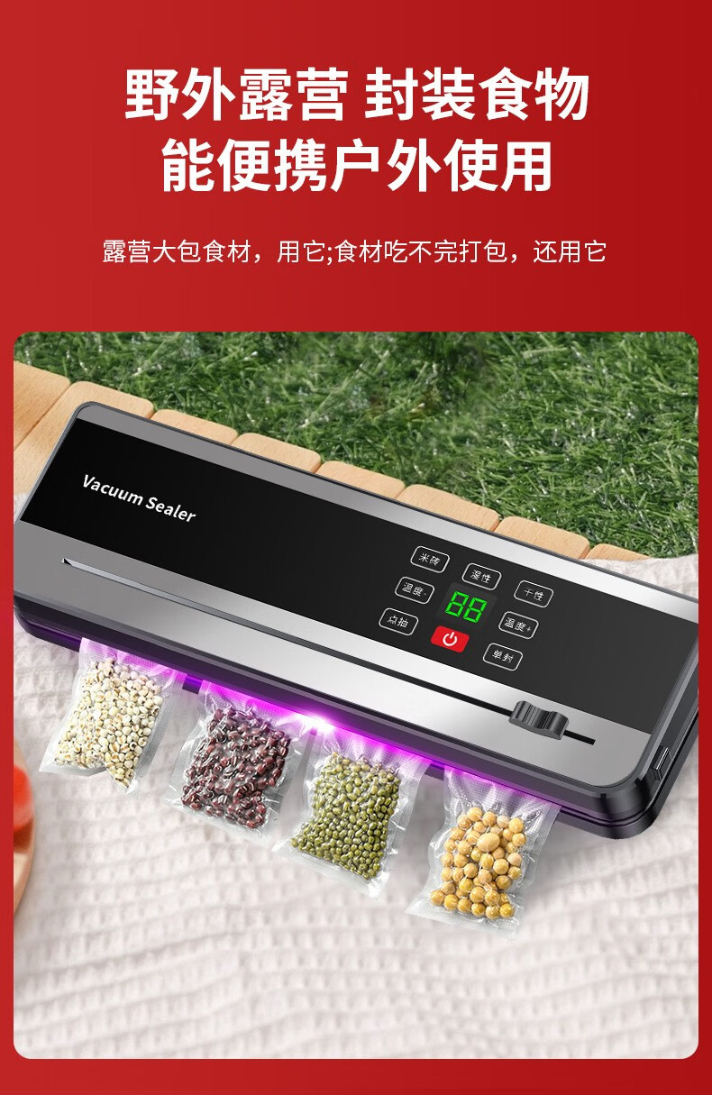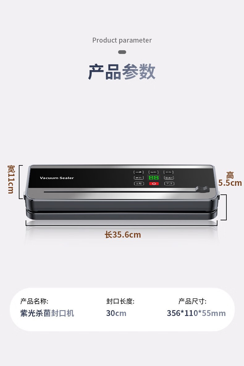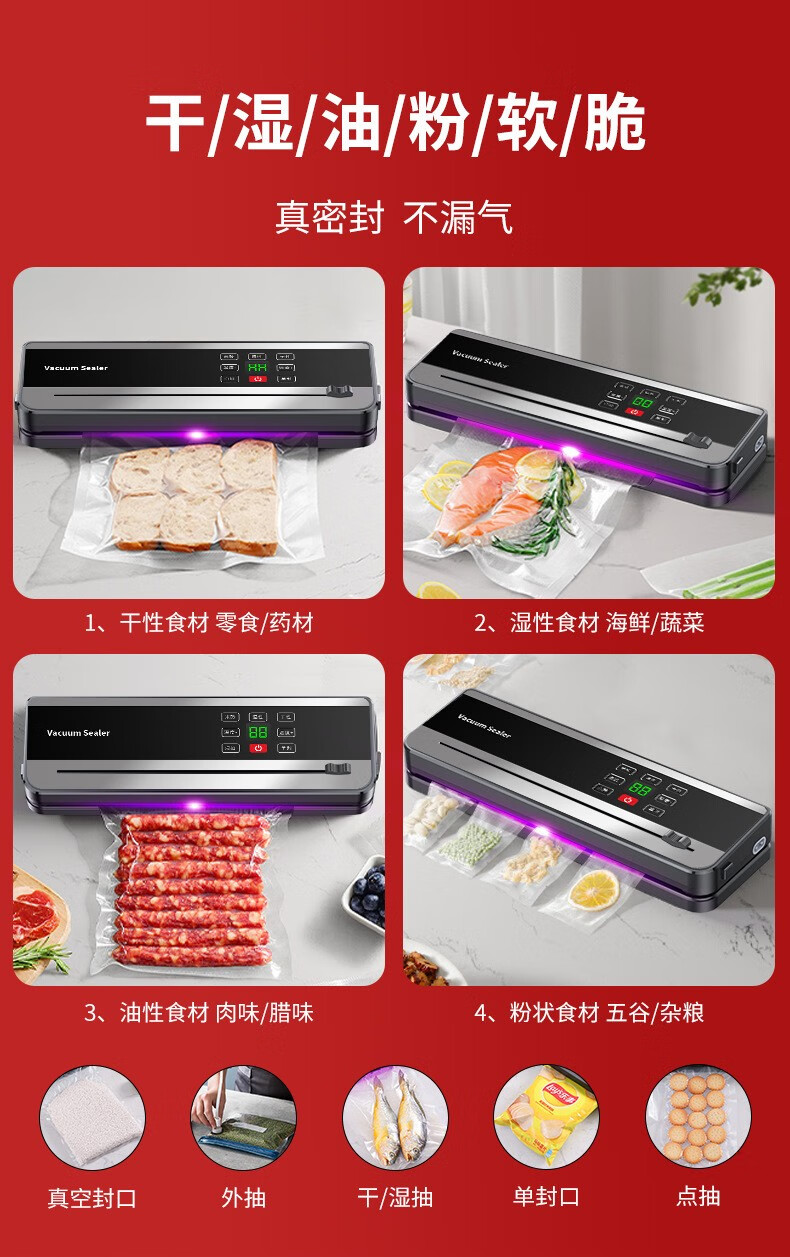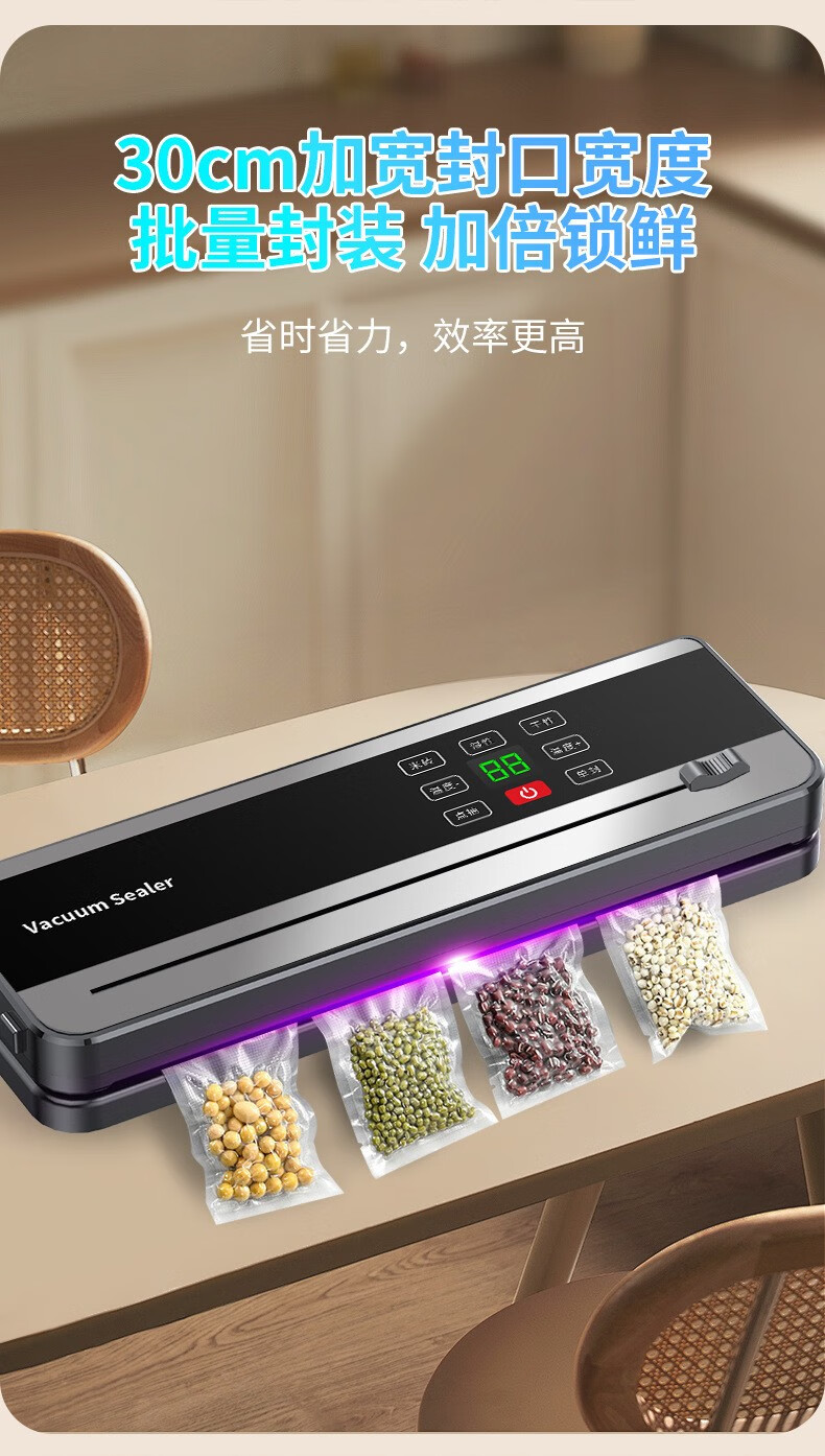 Sawang German vacuum sealing machine for household and commercial use, wet and dry, fully automatic vacuum packaging machine without picking bags, bacon and sausage high-power food antibacterial fresh-keeping machine, plastic sealing machine, silver gray - ultraviolet sterilization, 100 bags