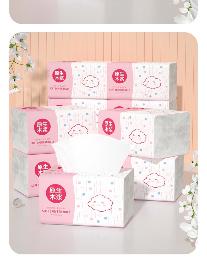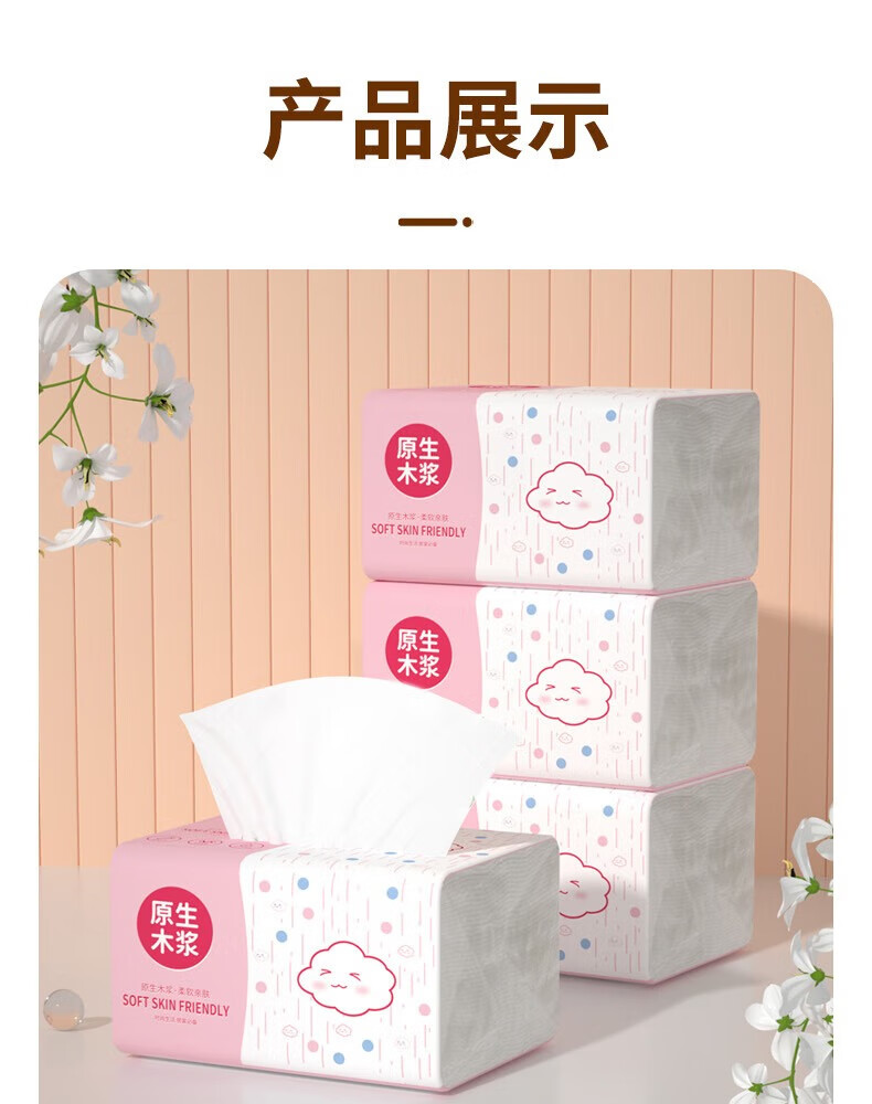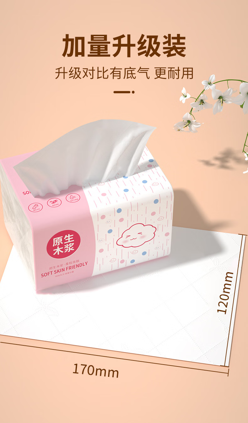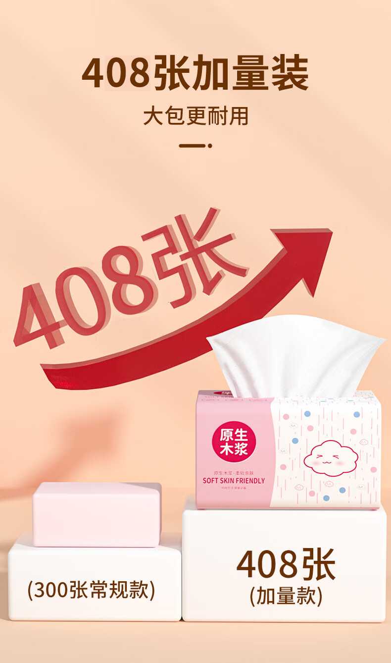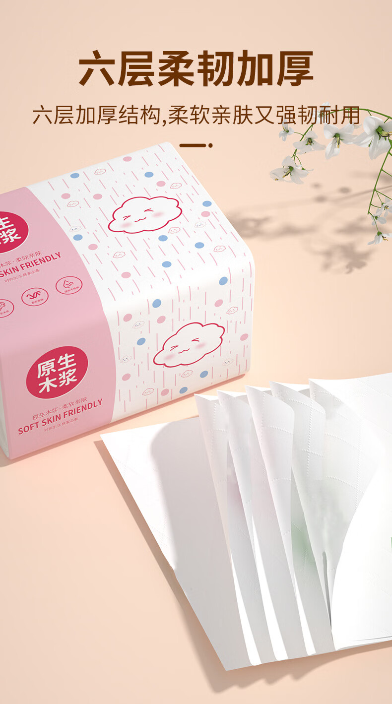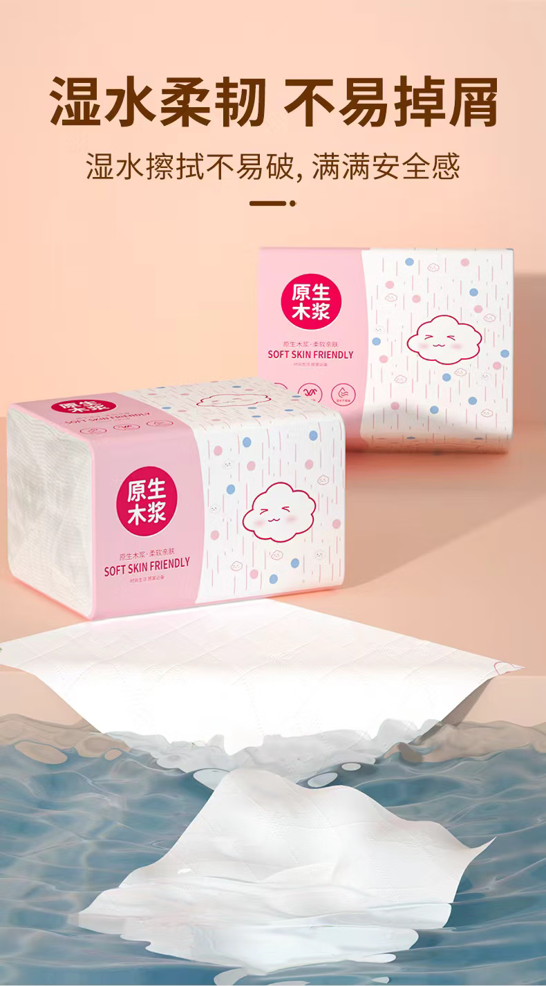 Bailerou log paper full box household wholesale affordable packaging durable thickened napkins toilet paper wet water not easy to break 6 layers 408 sheets * 1 pack