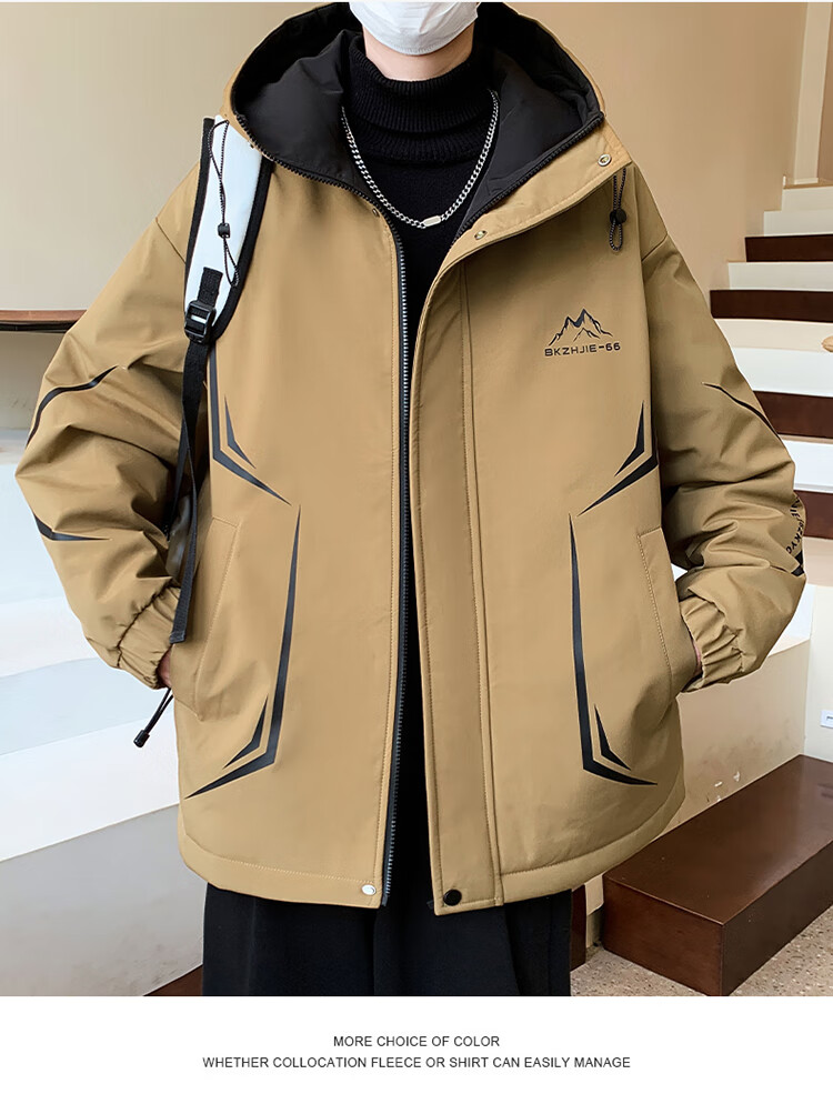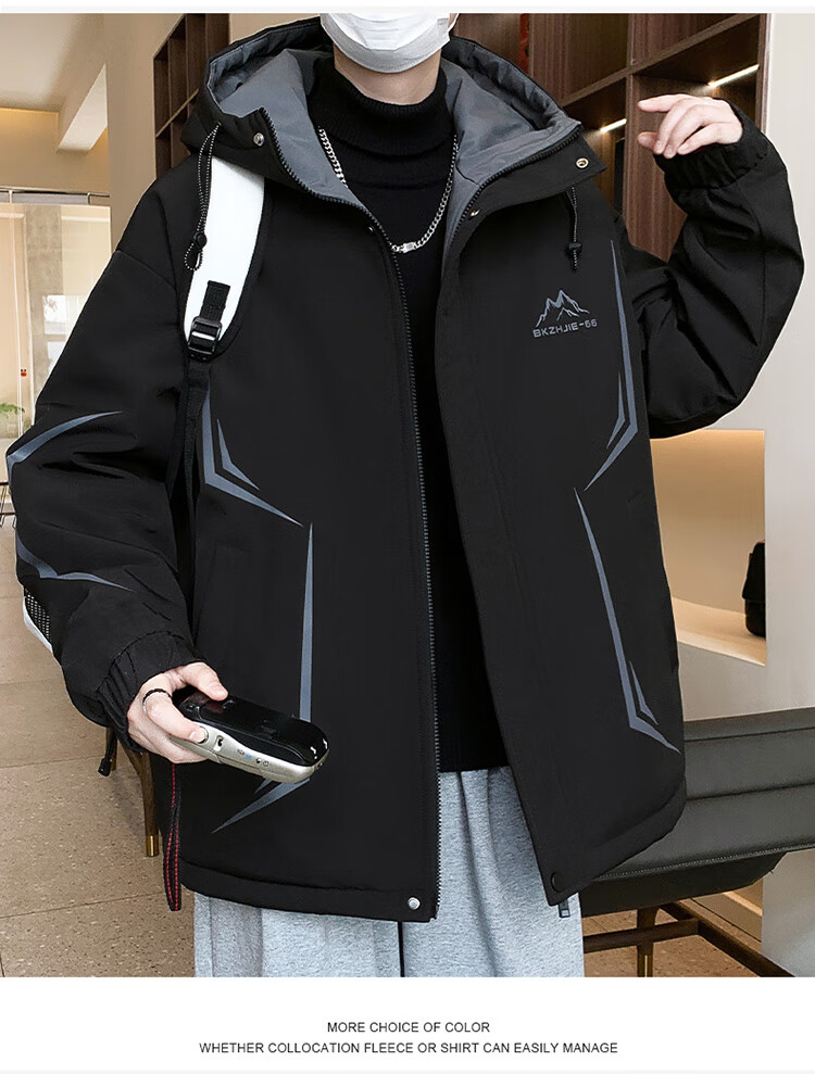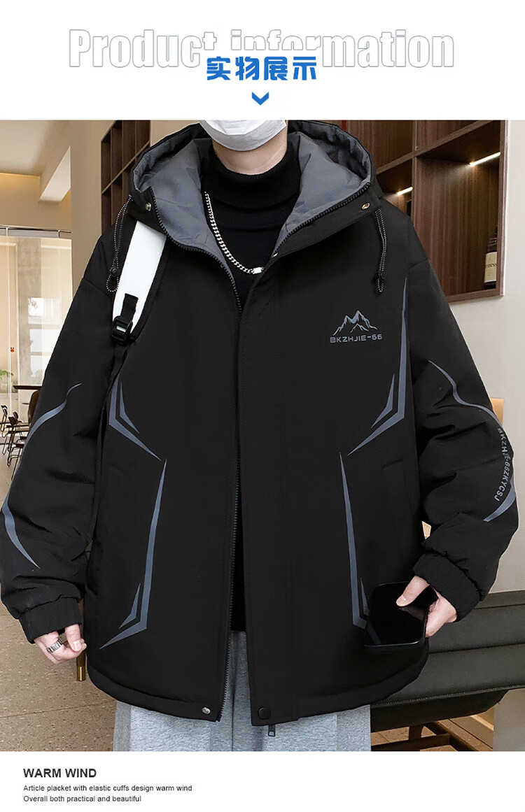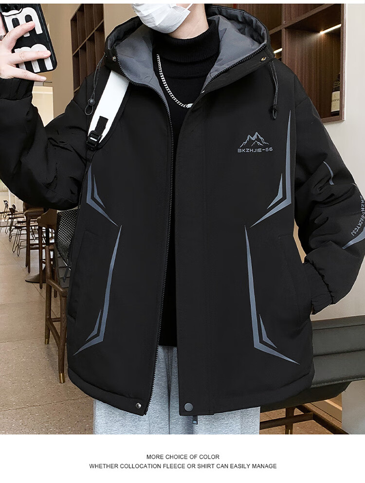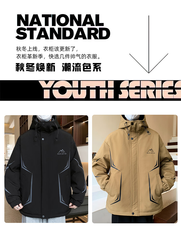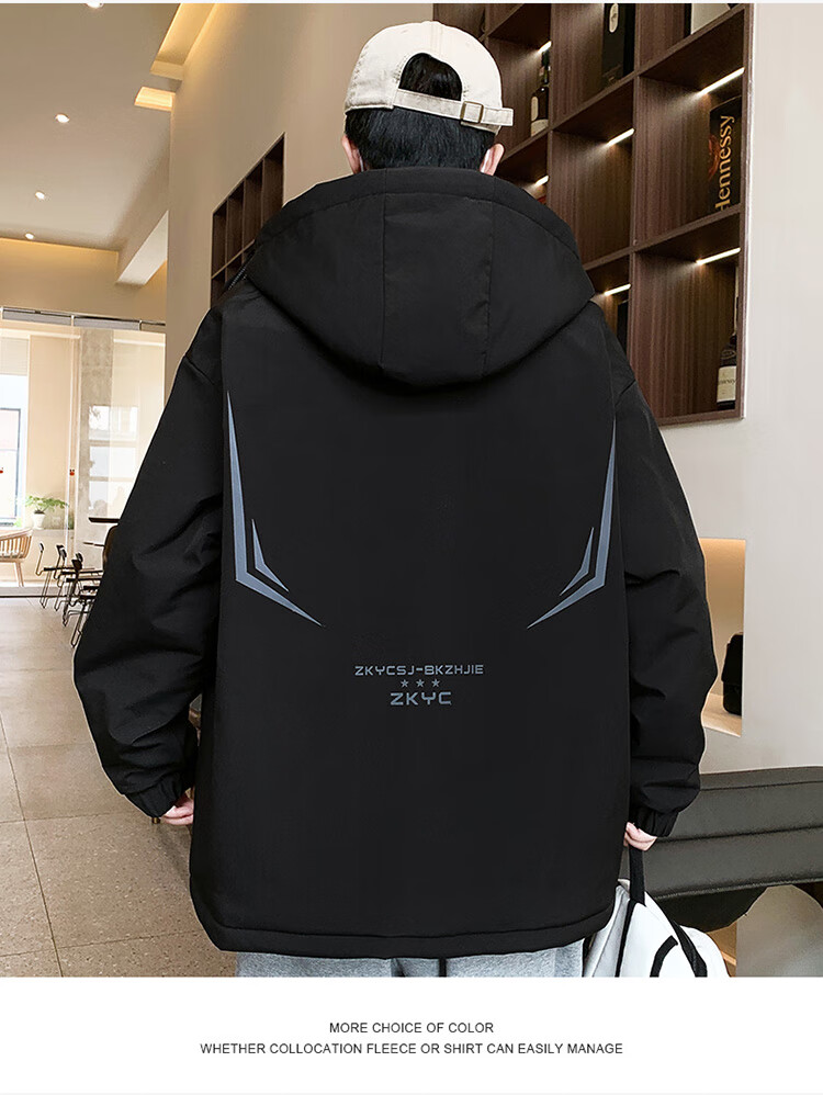 Woodpecker 2025 new youth autumn and winter velvet thickened jacket junior high school and high school students loose trendy sports jacket 10637-717 black (velvet coat) thickened 2XL 135-150 catties or so