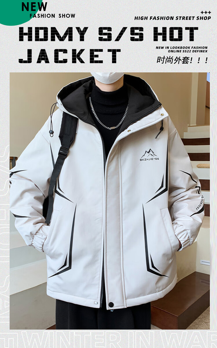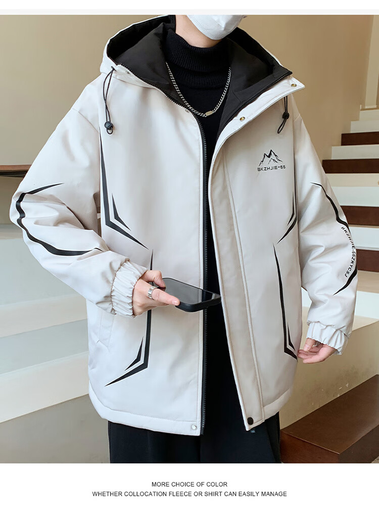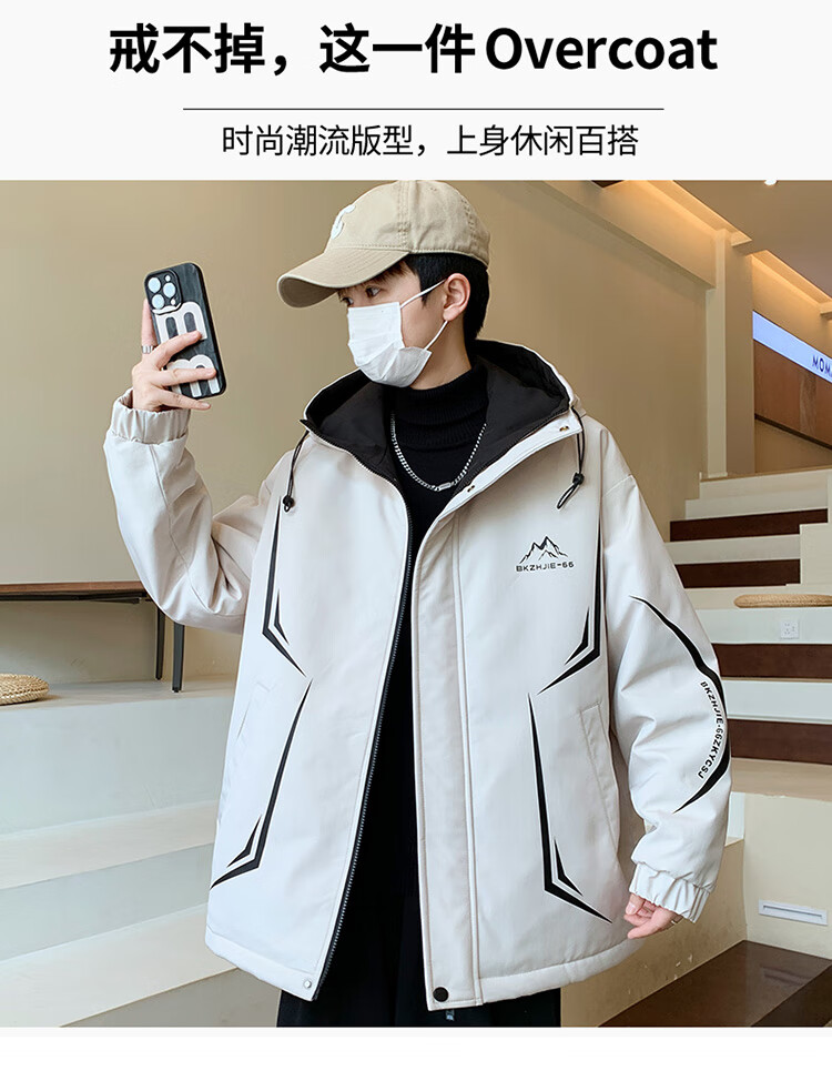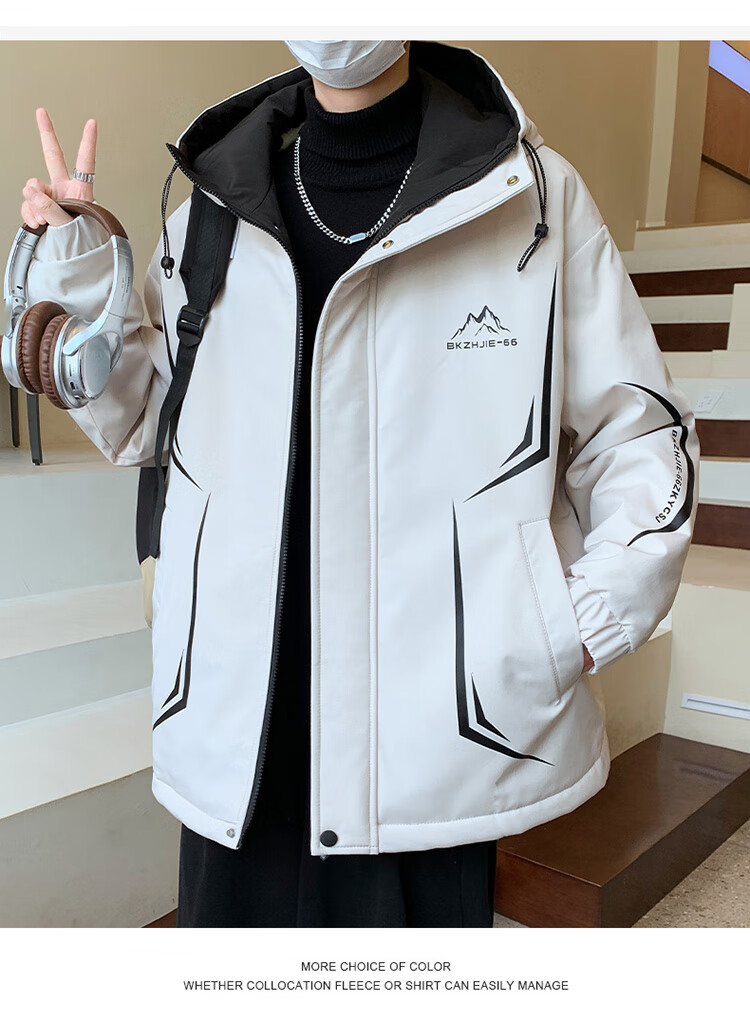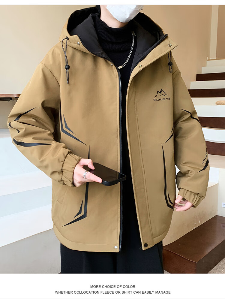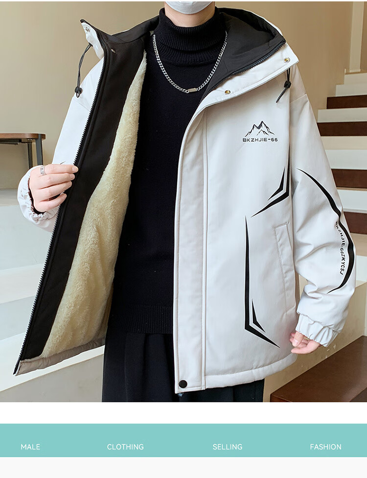 Woodpecker 2025 new youth autumn and winter velvet thickened jacket junior high school and high school students loose trendy sports jacket 10637-717 black (velvet coat) thickened 2XL 135-150 catties or so