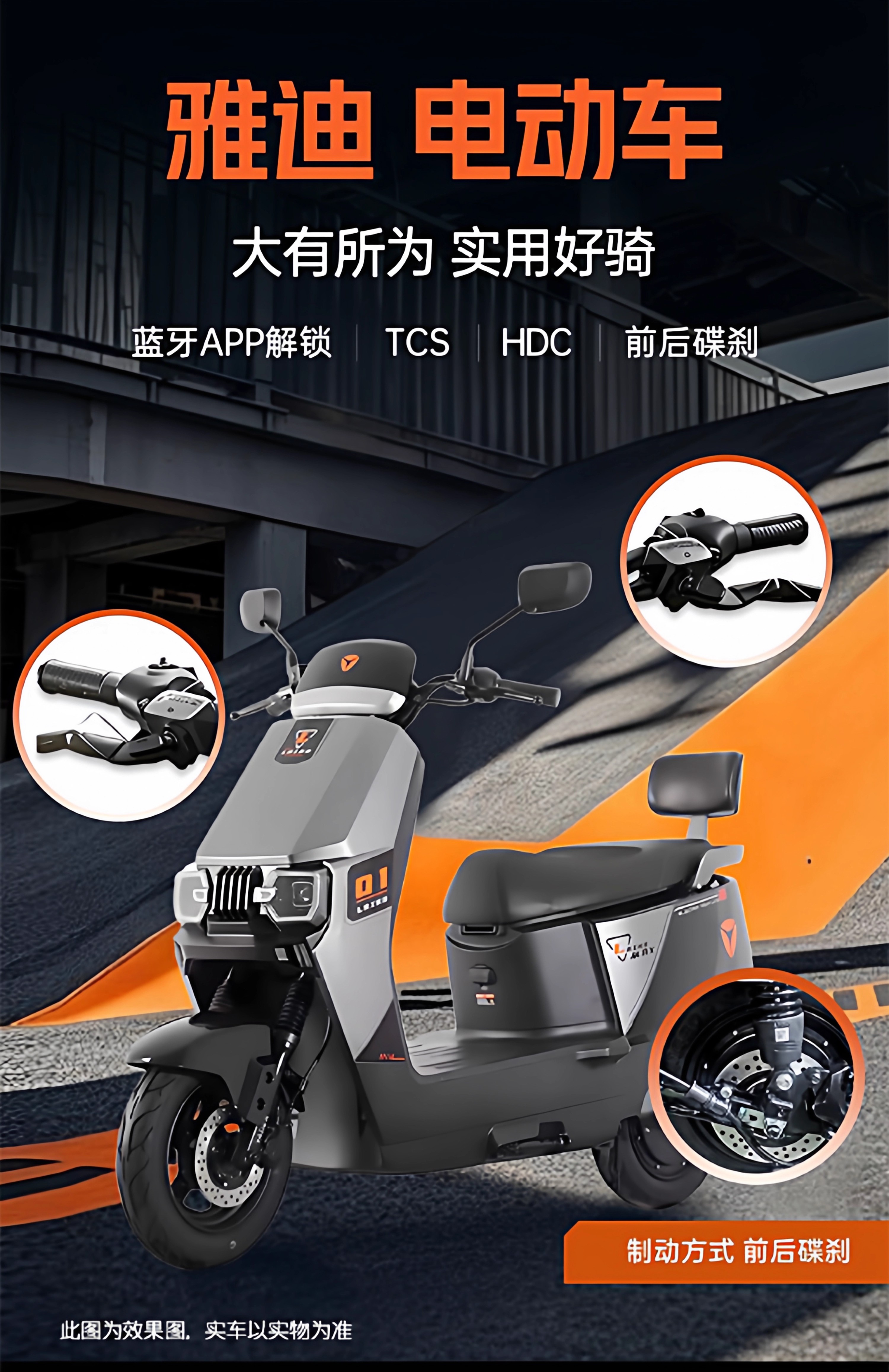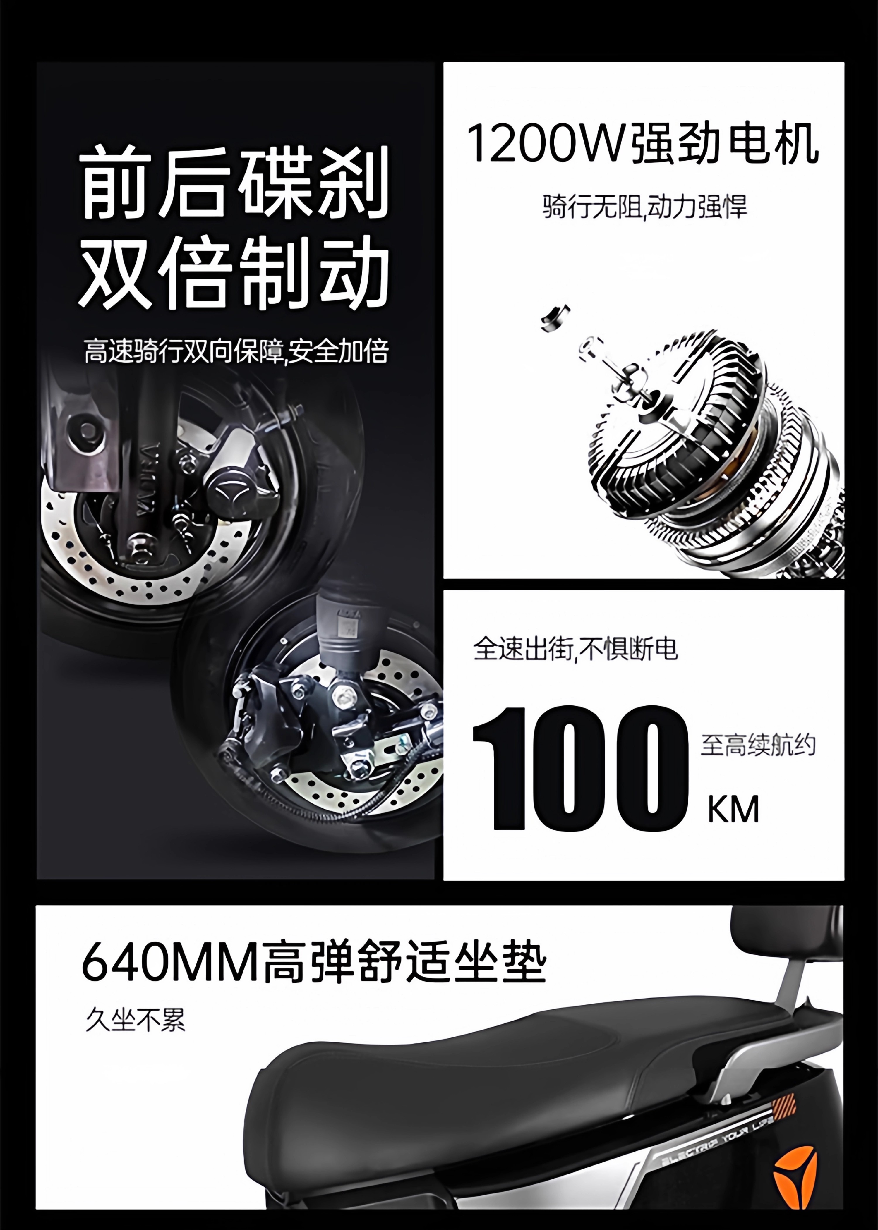 Yadilaika Yuexiang Edition Double Disc Brake Electric Motorcycle 72V Ultra-Long Range Battery Electric Vehicle Smart Takeaway Battery Car Pu Canglan (Double Disc Brake + Smart APP) 72V22A Lead-Acid Battery