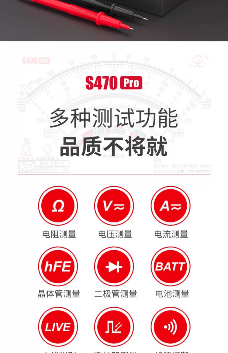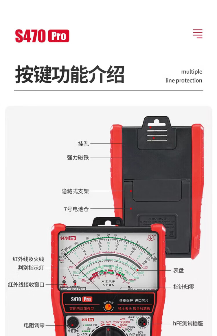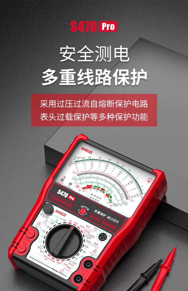 Sichuanyu (TY) s470pro intelligent anti-burn enhanced pointer multimeter high-precision mechanical Chengyang Electrician's same model Tianyu multimeter + test pen power supply pen + watch bag