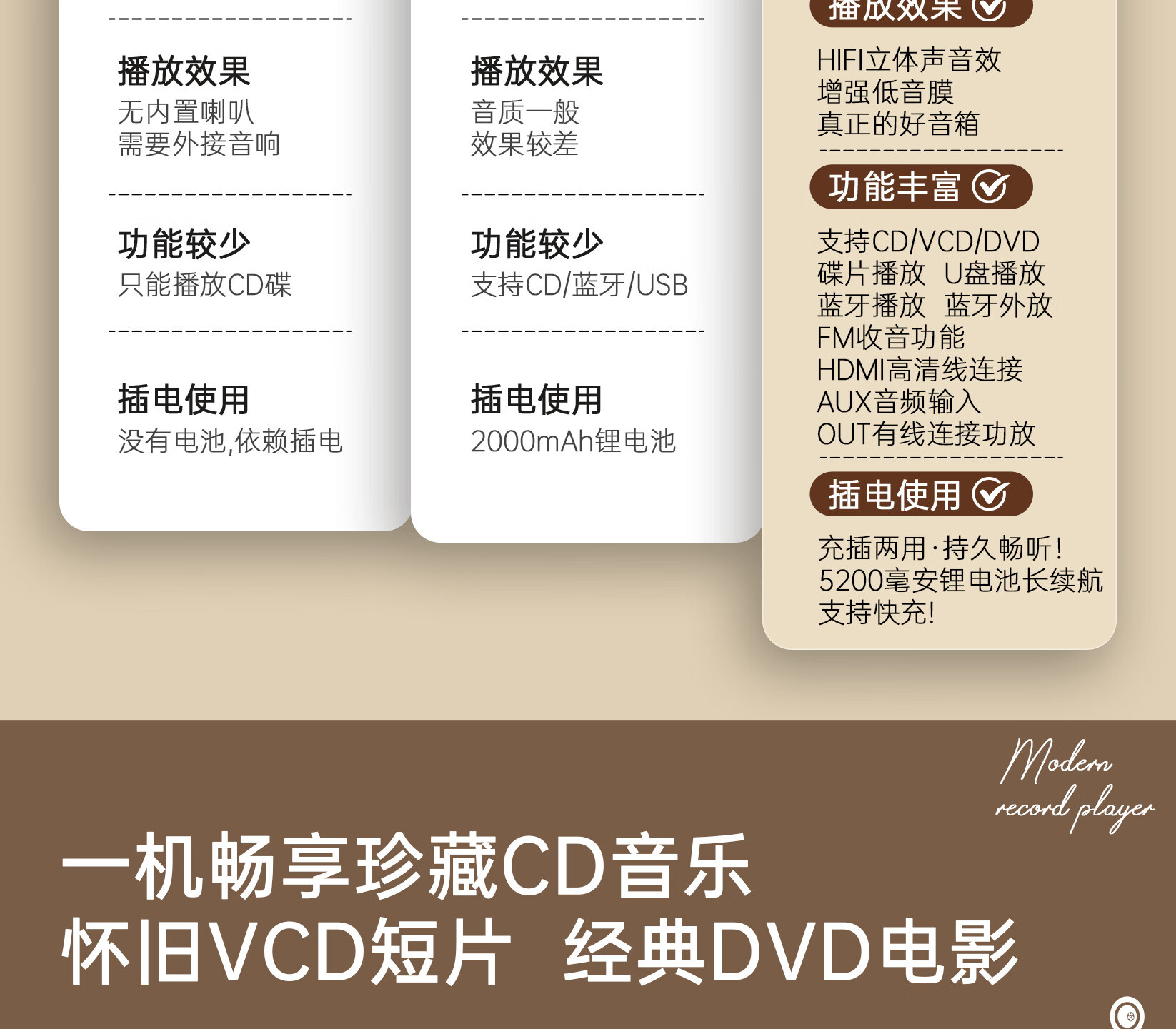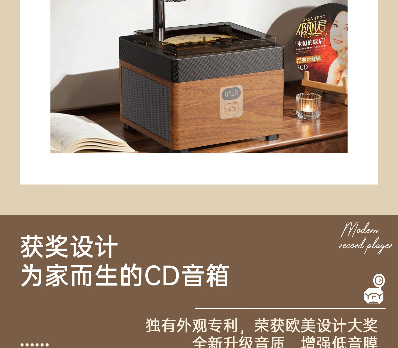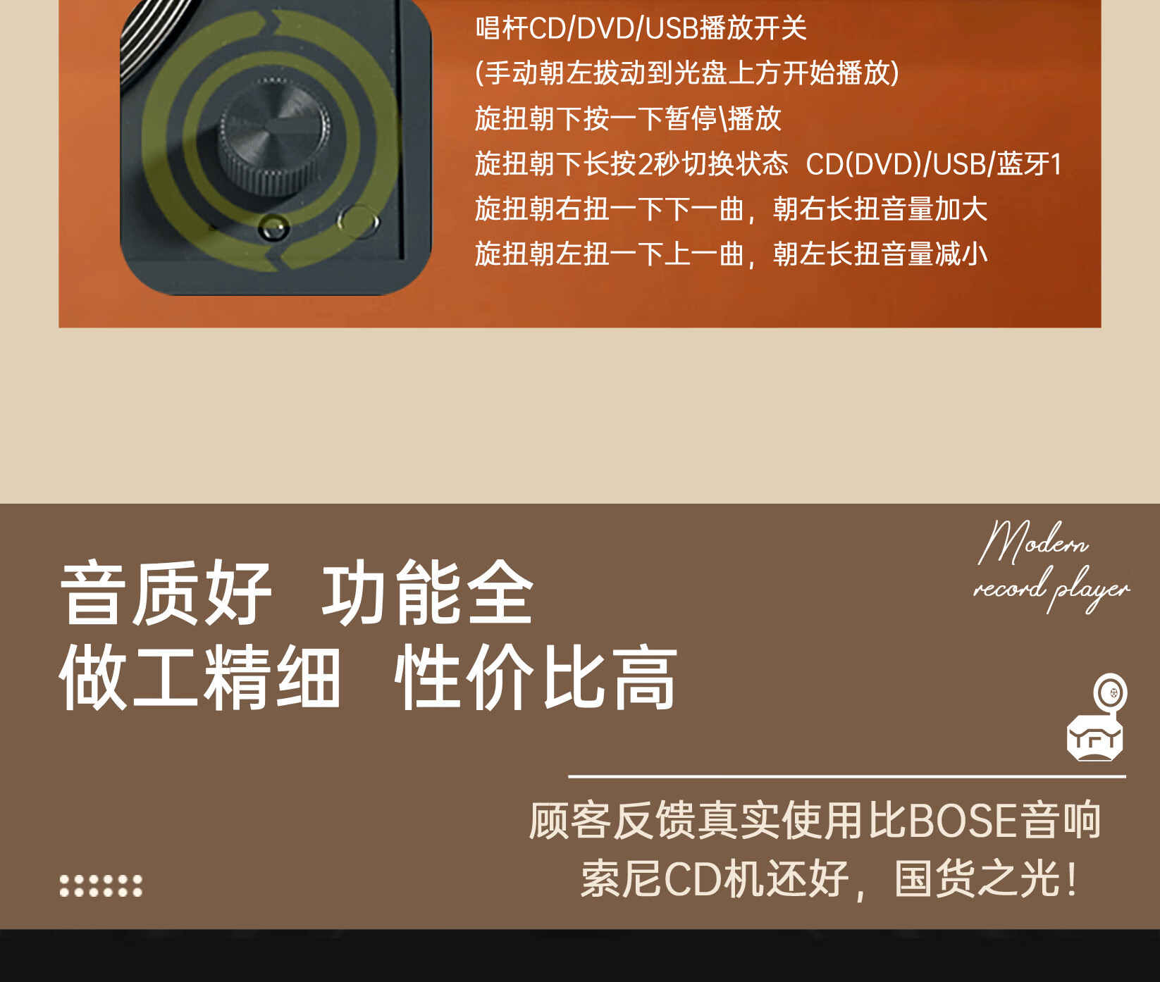 Yun Feiyang CD player fever-grade CD player DVD player VCD player retro Bluetooth audio U disk speaker FM radio CD record player home all-in-one birthday gift walnut with official green