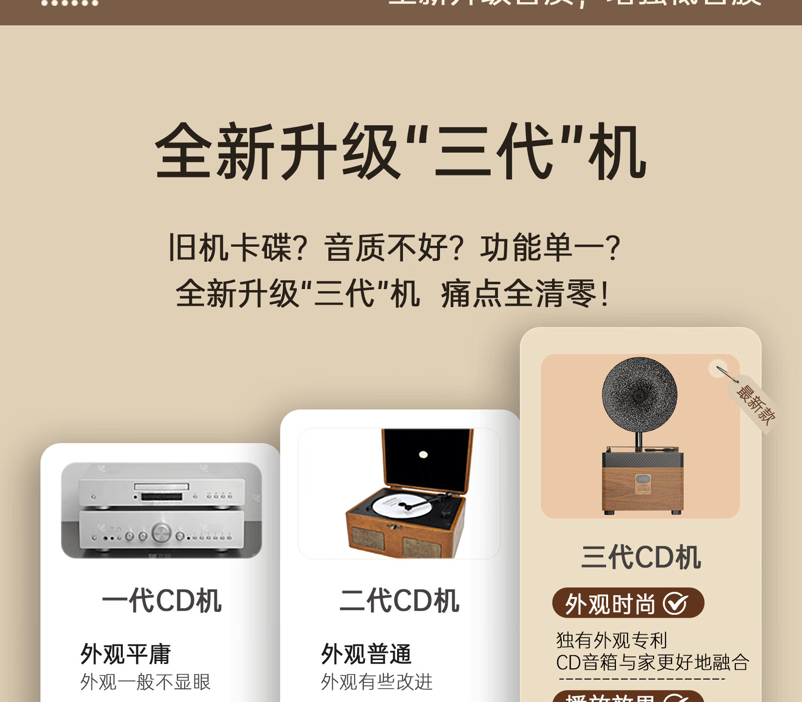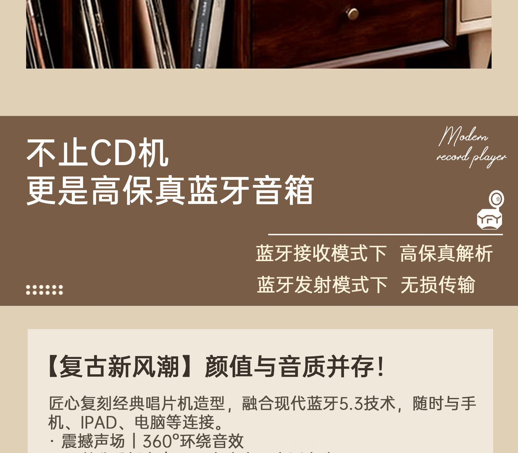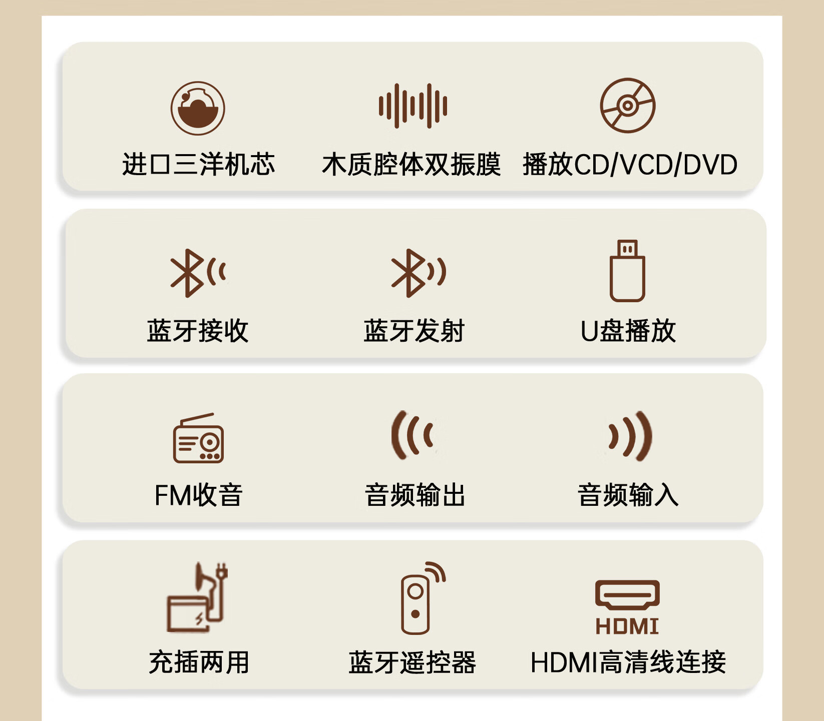 Yun Feiyang CD player fever-grade CD player DVD player VCD player retro Bluetooth audio U disk speaker FM radio CD record player home all-in-one birthday gift walnut with official green