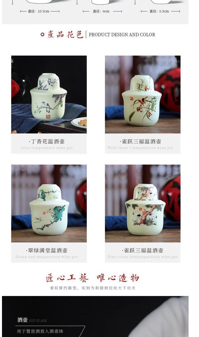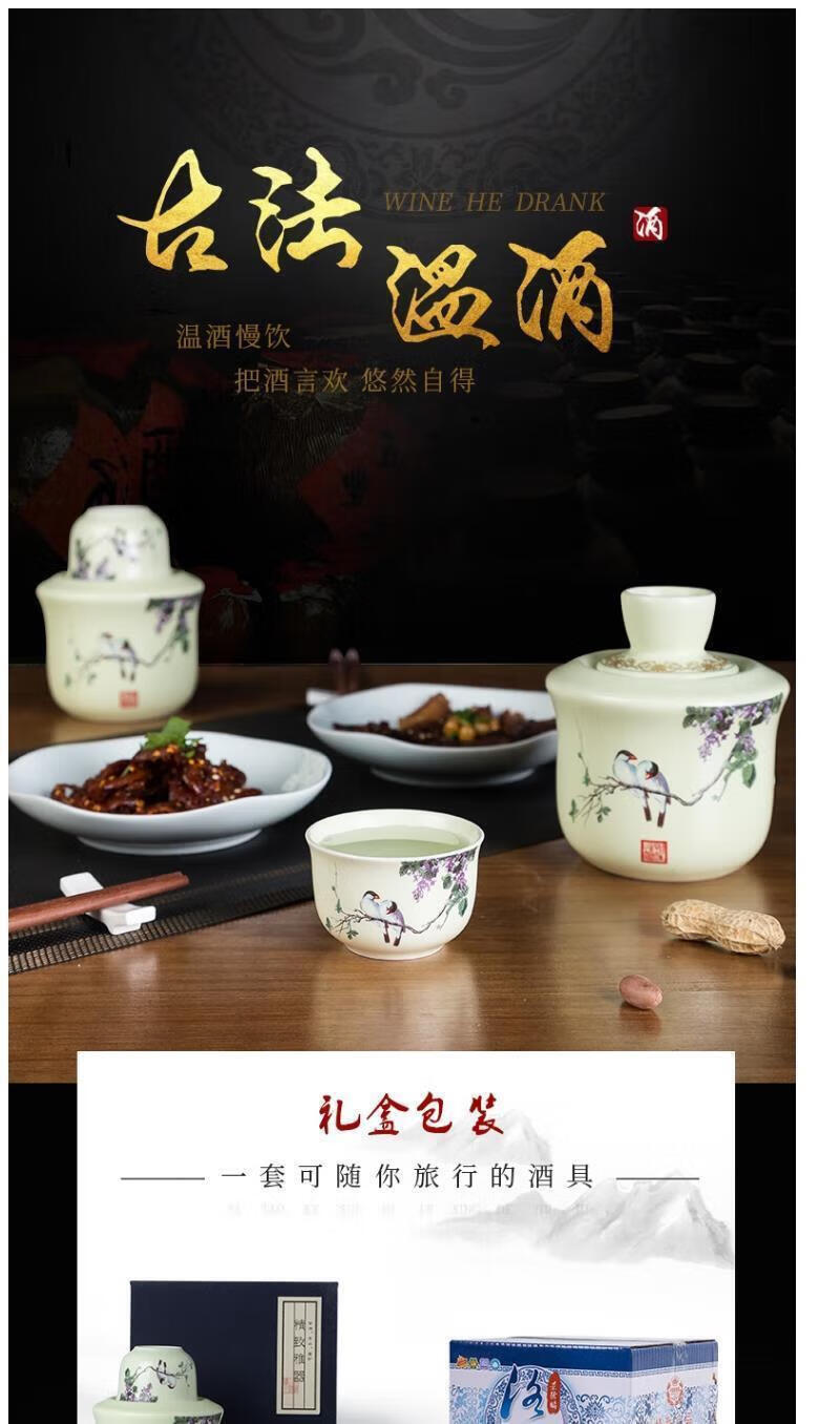 Ye Yu ceramic wine warmer, household antique Chinese wine set, shochu rice wine white wine cup, warm wine jug, Jingdezhen slightly flawed old porcelain landscape (about 2 taels)