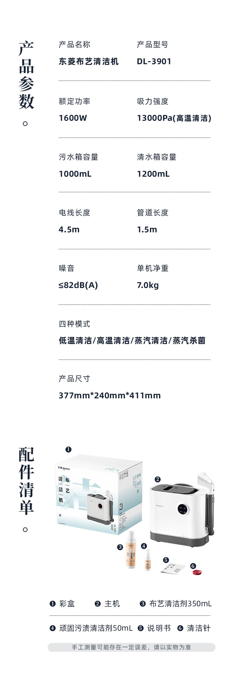 Dongling fabric sofa cleaning machine high temperature steam carpet mattress curtain cleaning machine DL-3901 cotton cloud white-standard configuration
