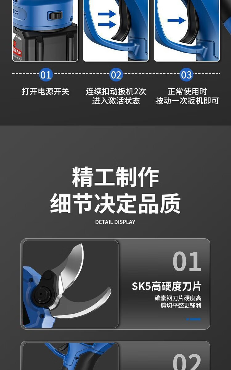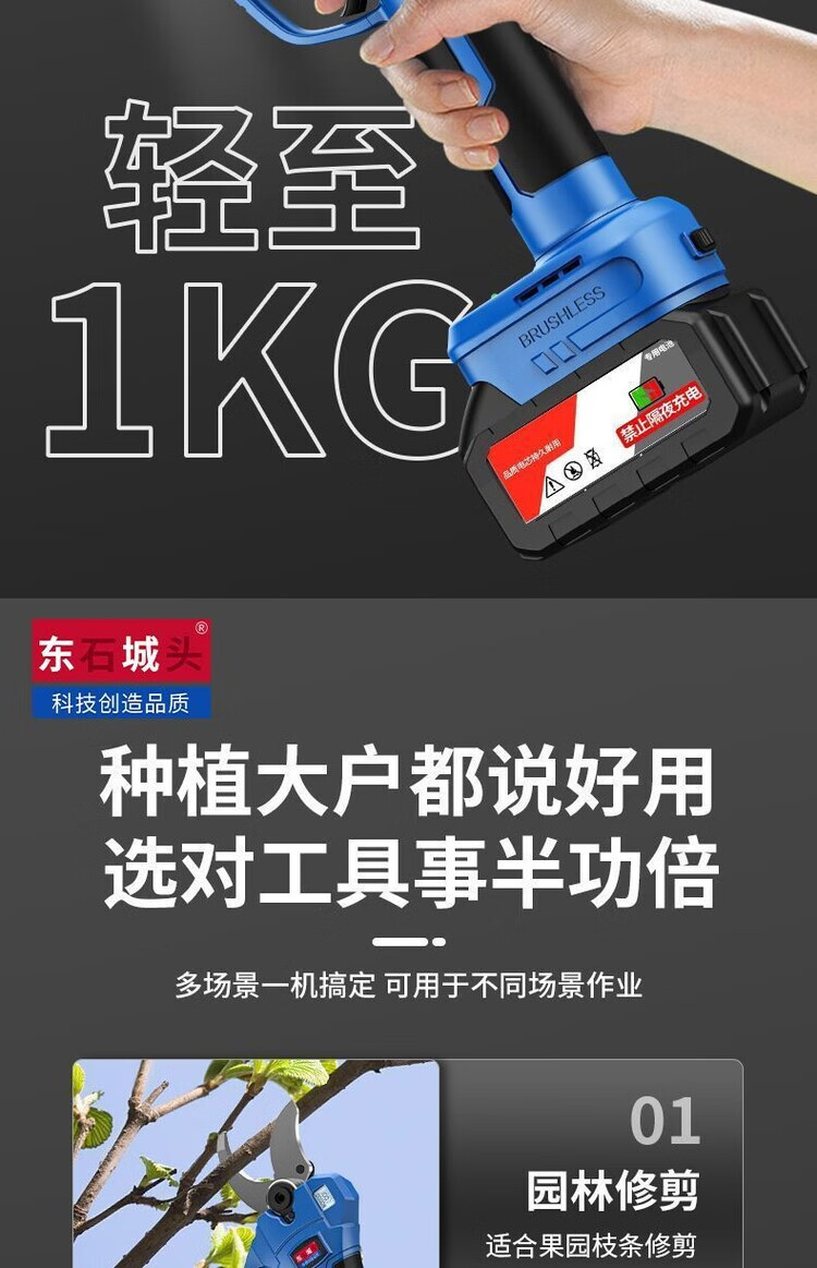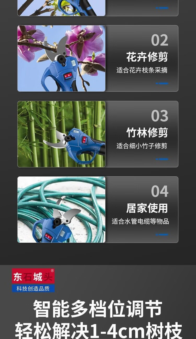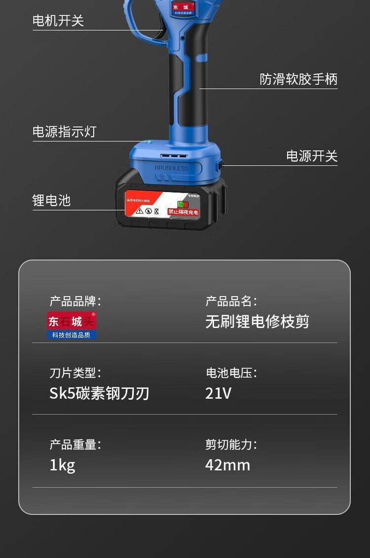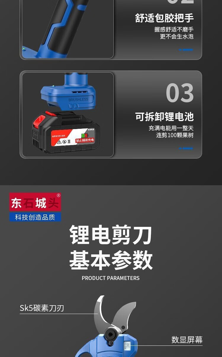 Dongcheng Dongcheng electric scissors, fruit tree pruning shears, rechargeable branch cutting lithium electric scissors, gardening branch pruning, 5:0 orchard pruning model, 5 batteries, one battery +