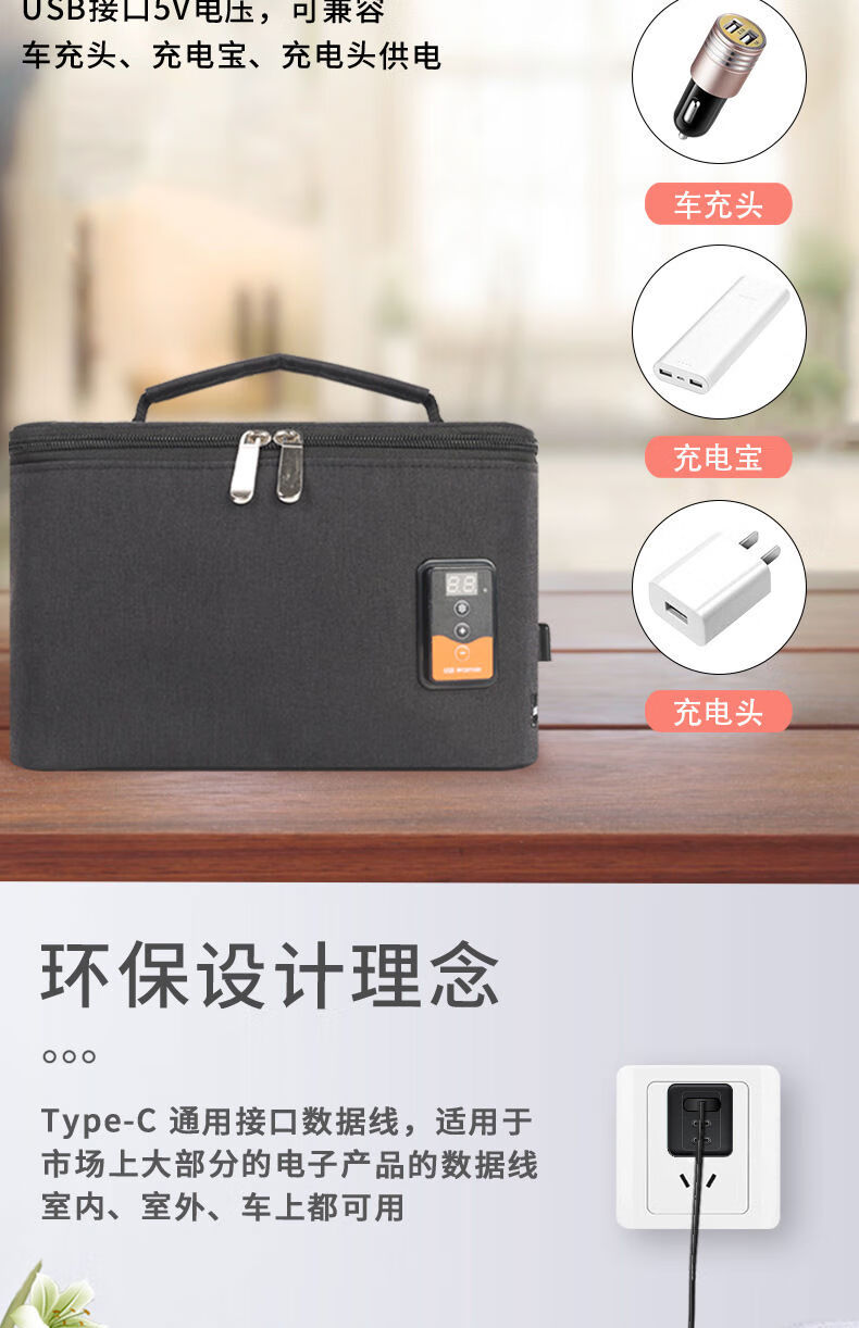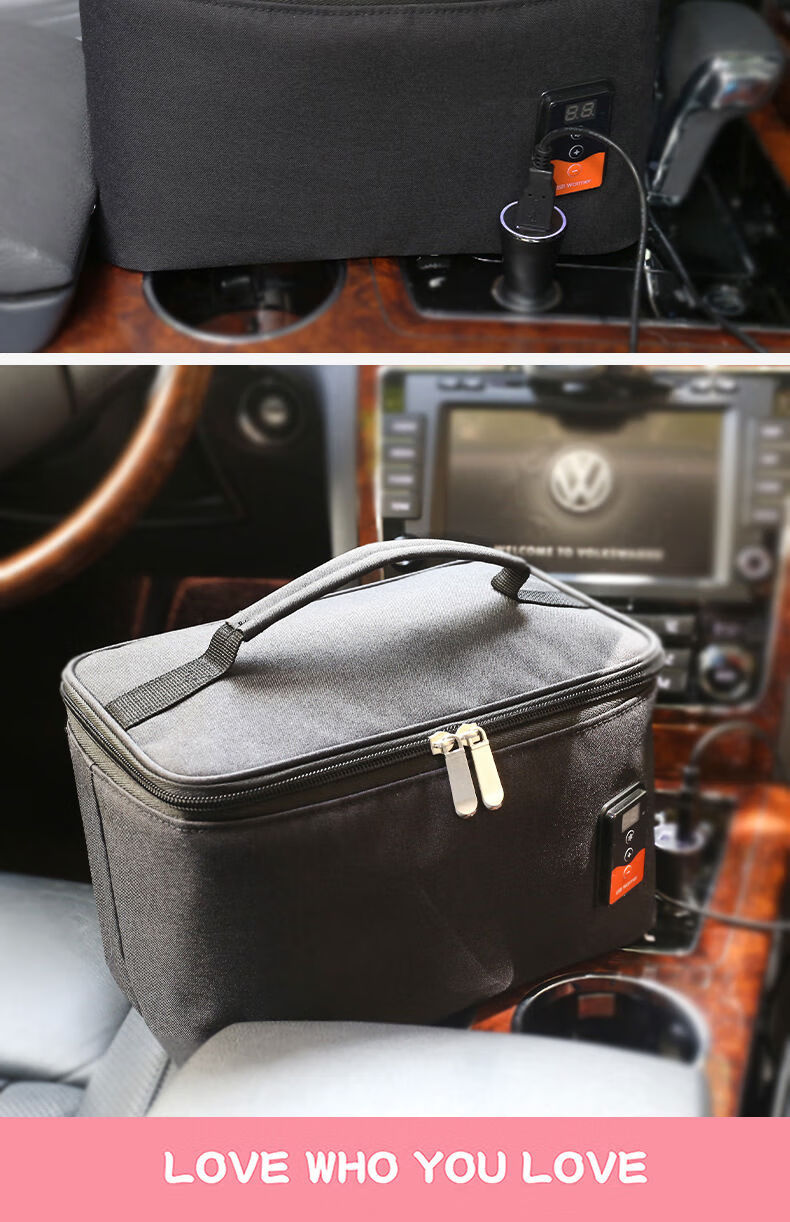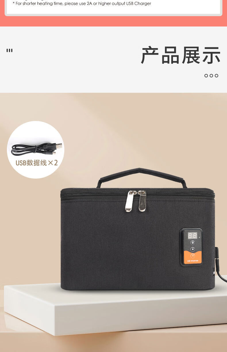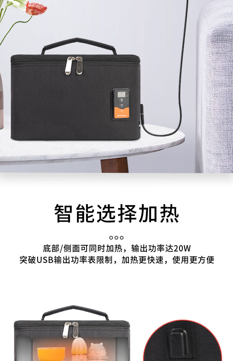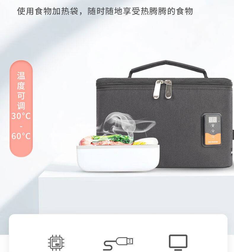 Car Insulation Box USB Heating Insulation Bag Cover Intelligent Temperature Adjustment Portable Rechargeable Hot Lunch Box USB26*16*17-Black Insulation Heating