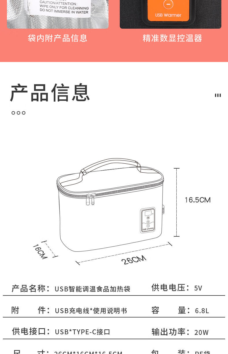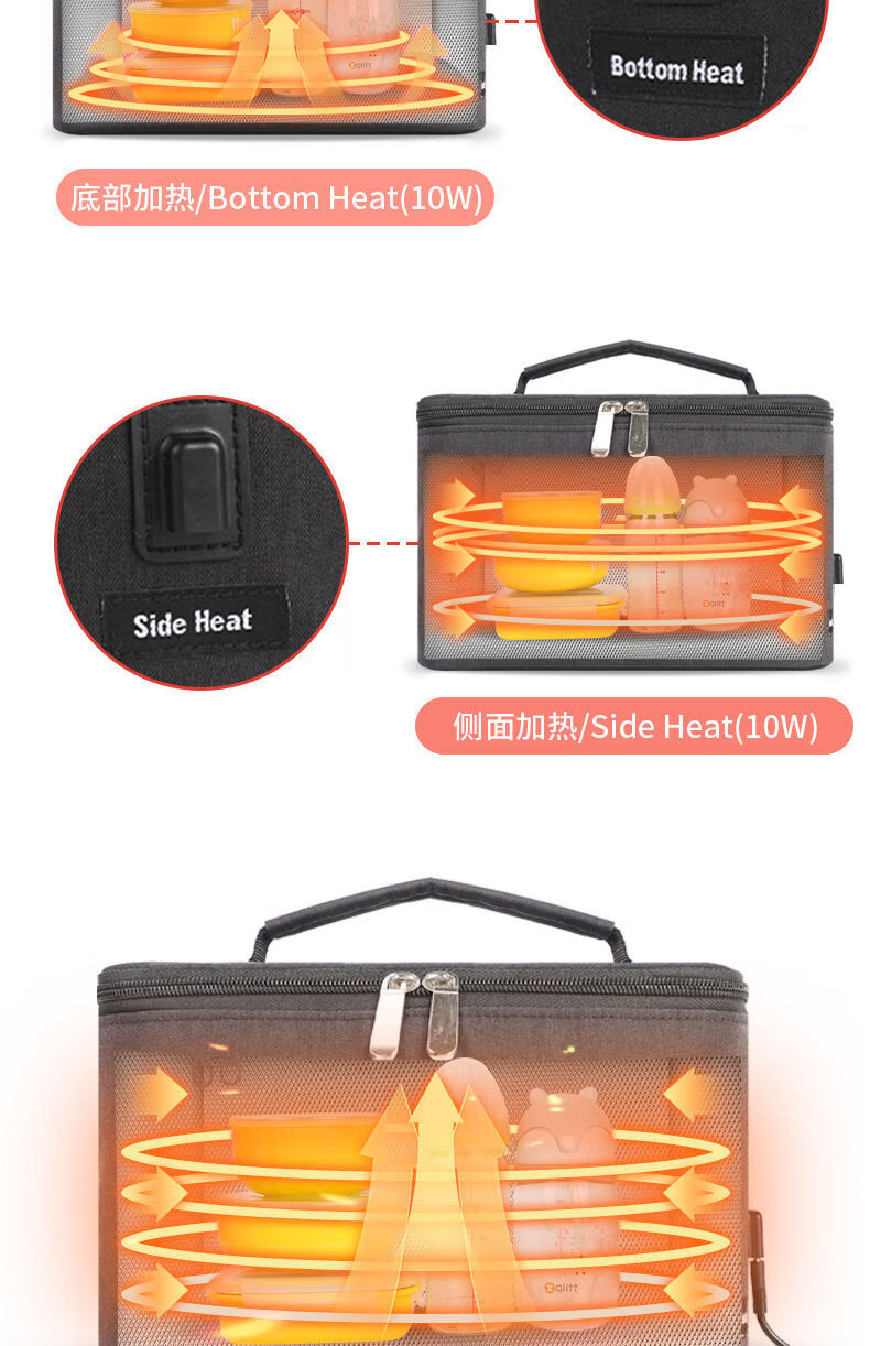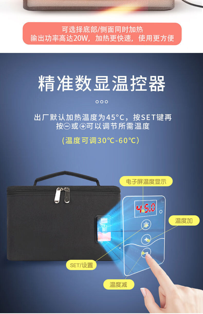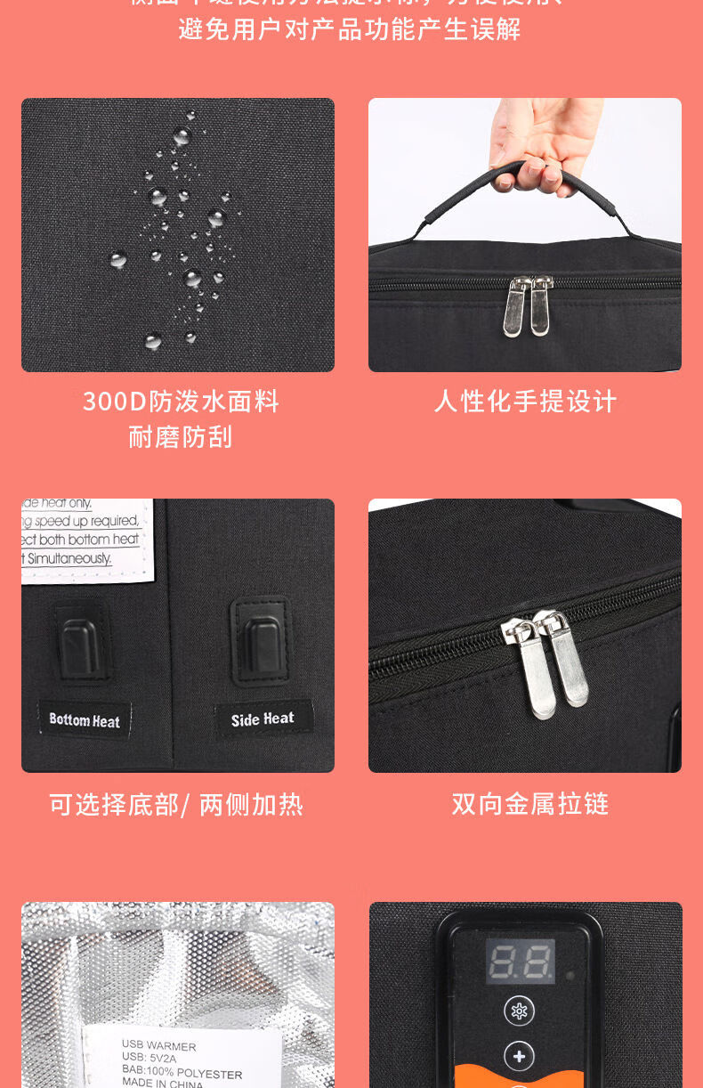 Car Insulation Box USB Heating Insulation Bag Cover Intelligent Temperature Adjustment Portable Rechargeable Hot Lunch Box USB26*16*17-Black Insulation Heating